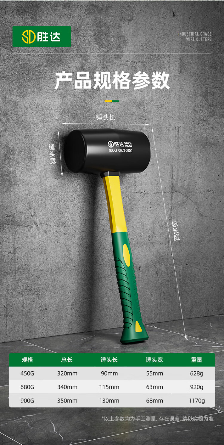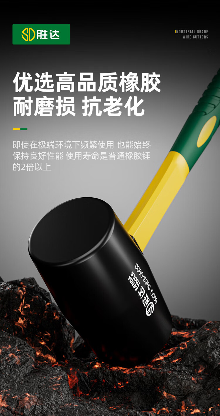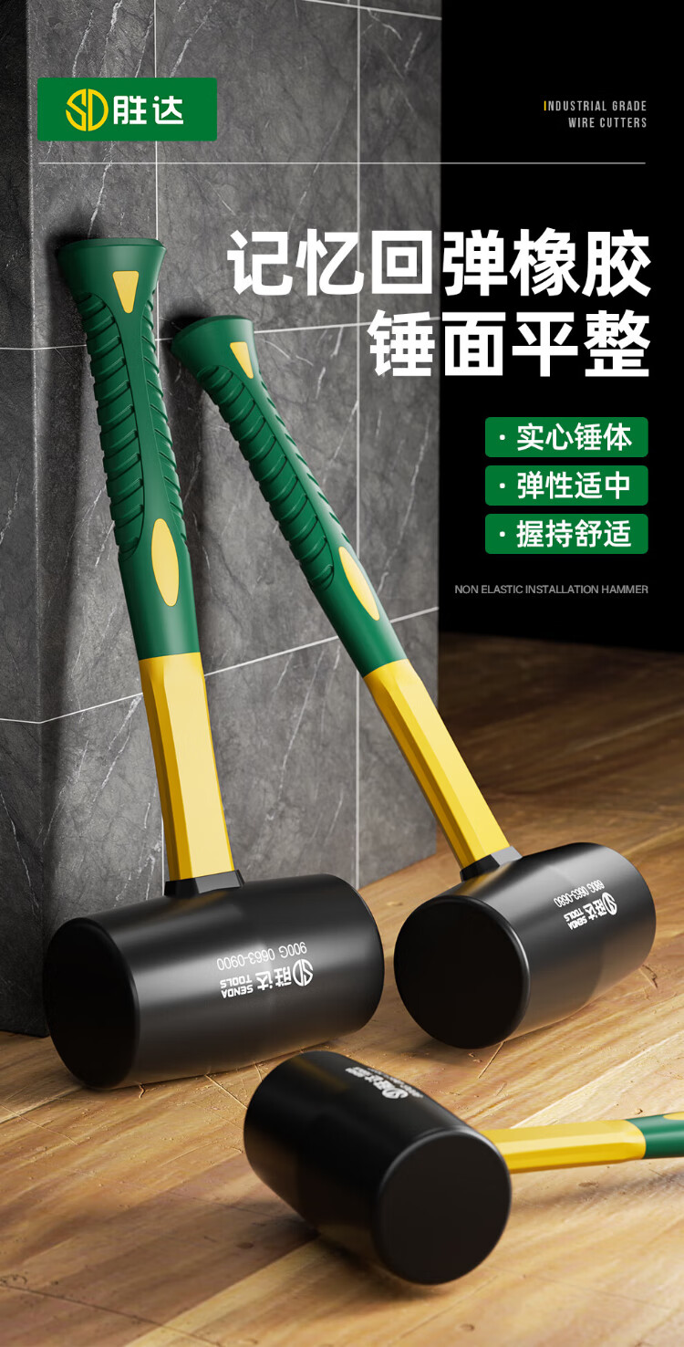 Shengda rubber hammer solid installation hammer high strength plastic handle floor tile decoration furniture installation special rubber hammer 450G
