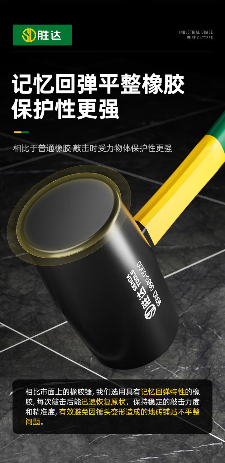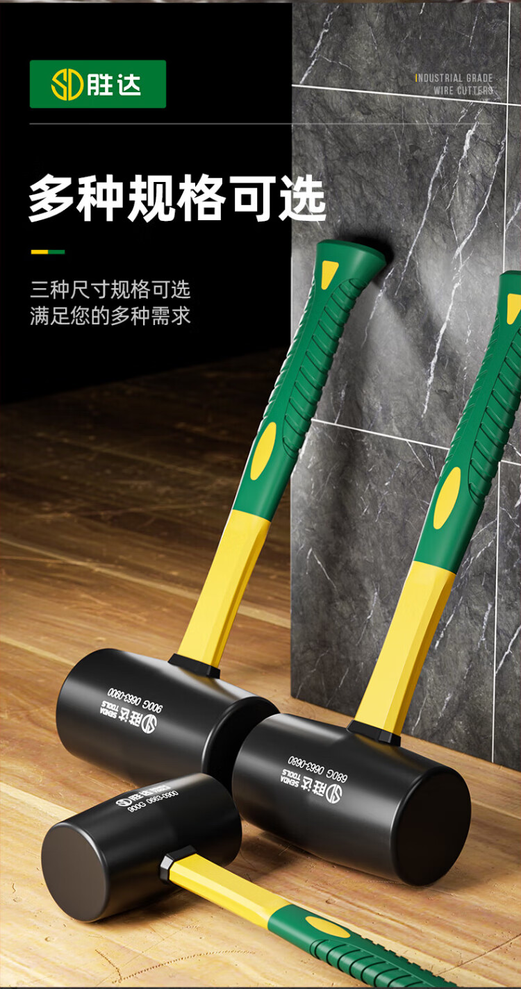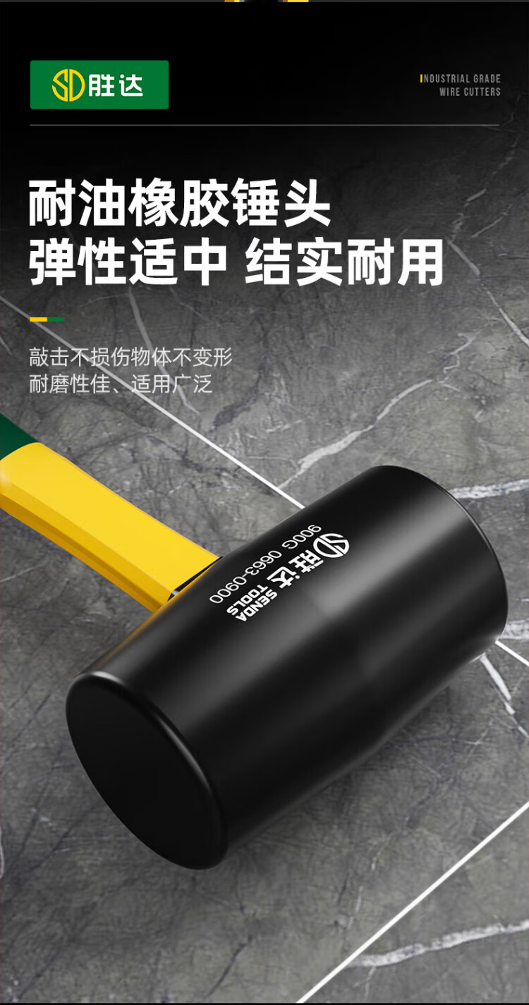 Shengda rubber hammer solid installation hammer high strength plastic handle floor tile decoration furniture installation special rubber hammer 450G