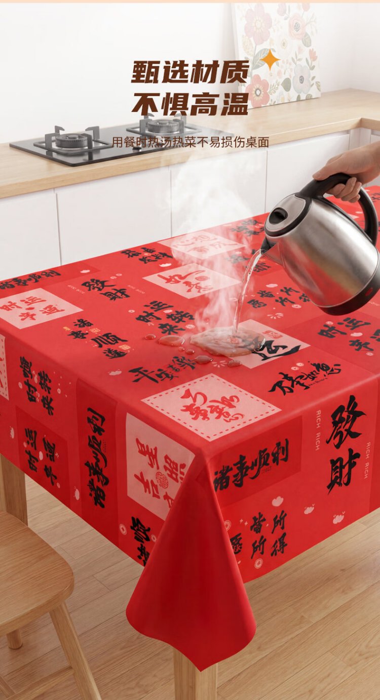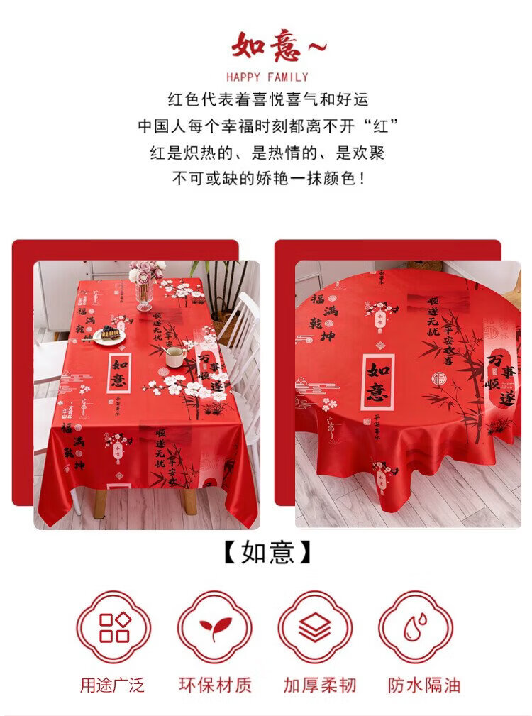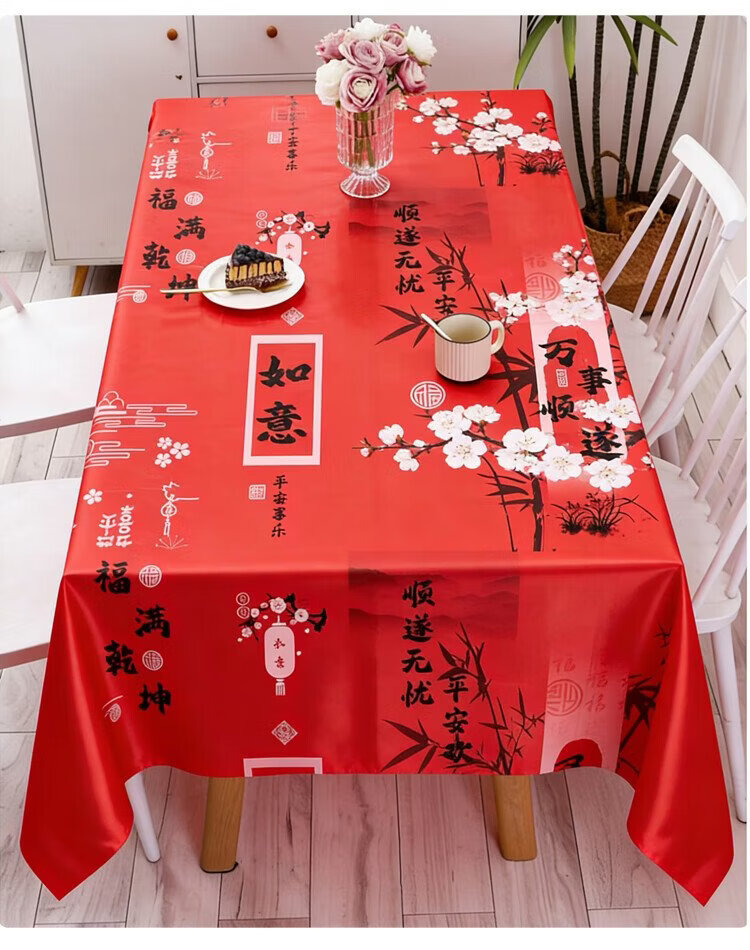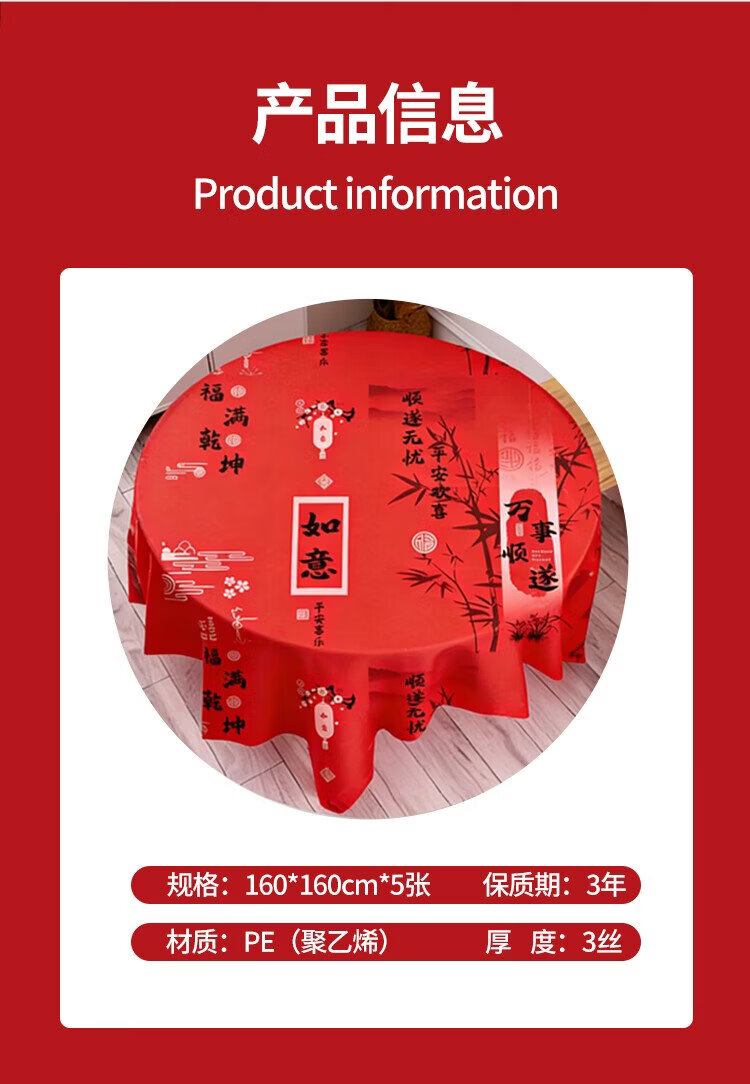 SHUANG YU disposable tablecloth New Year red tablecloth 5 thick waterproof tablecloths wedding banquet rectangular round tablecloth 160cm