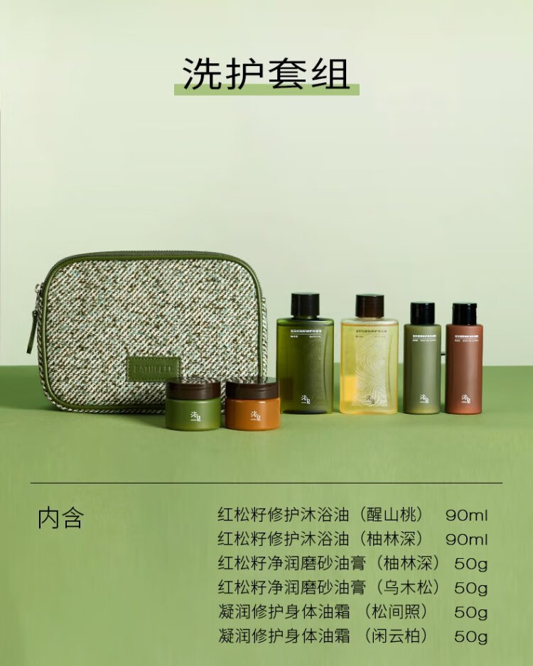 Yumi travel set, travel business trip, body care set, shower oil, body lotion, scrub, cosmetic bag, travel portable gift