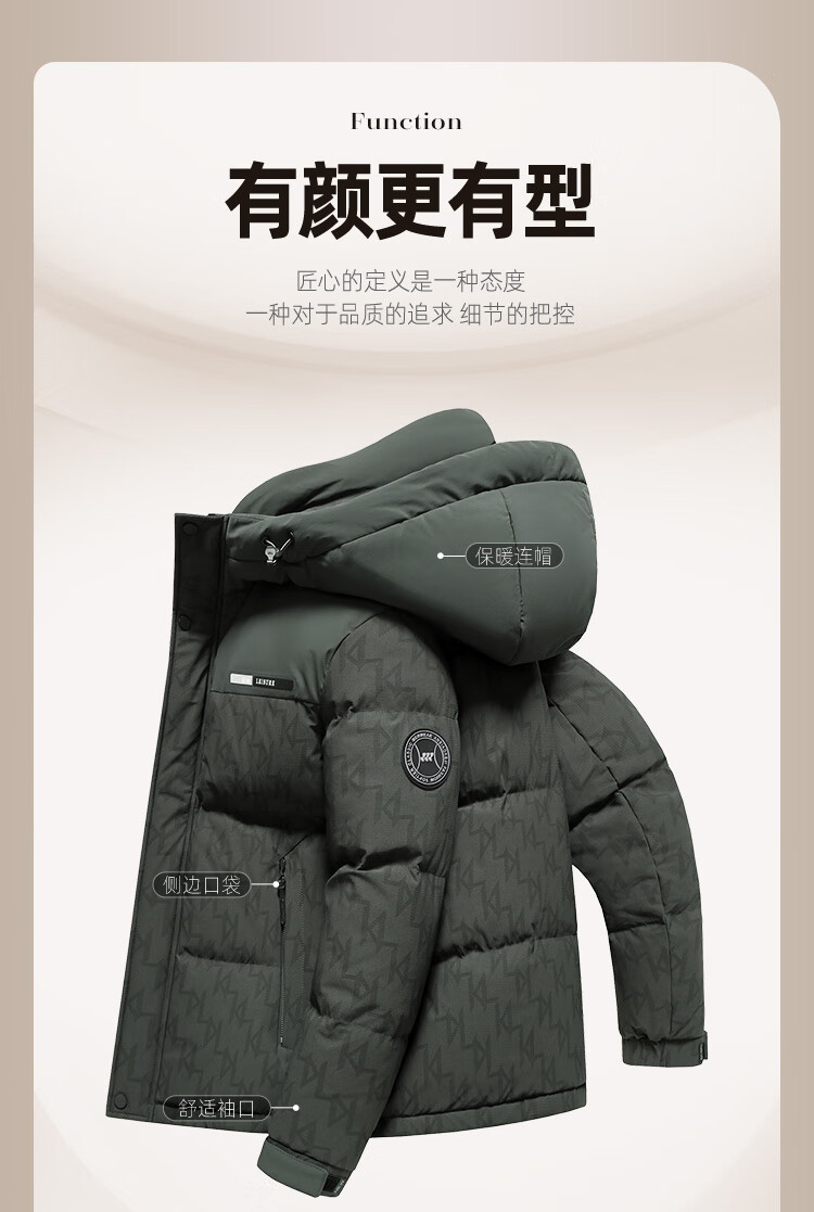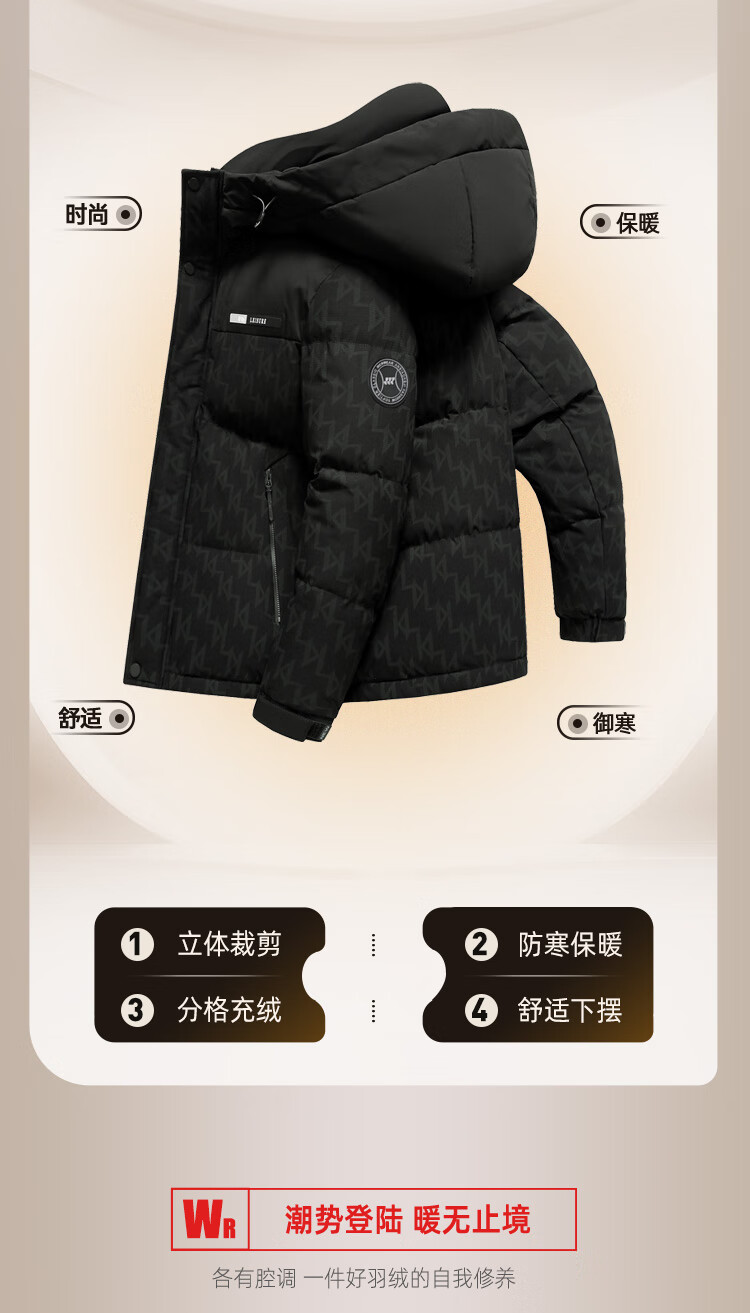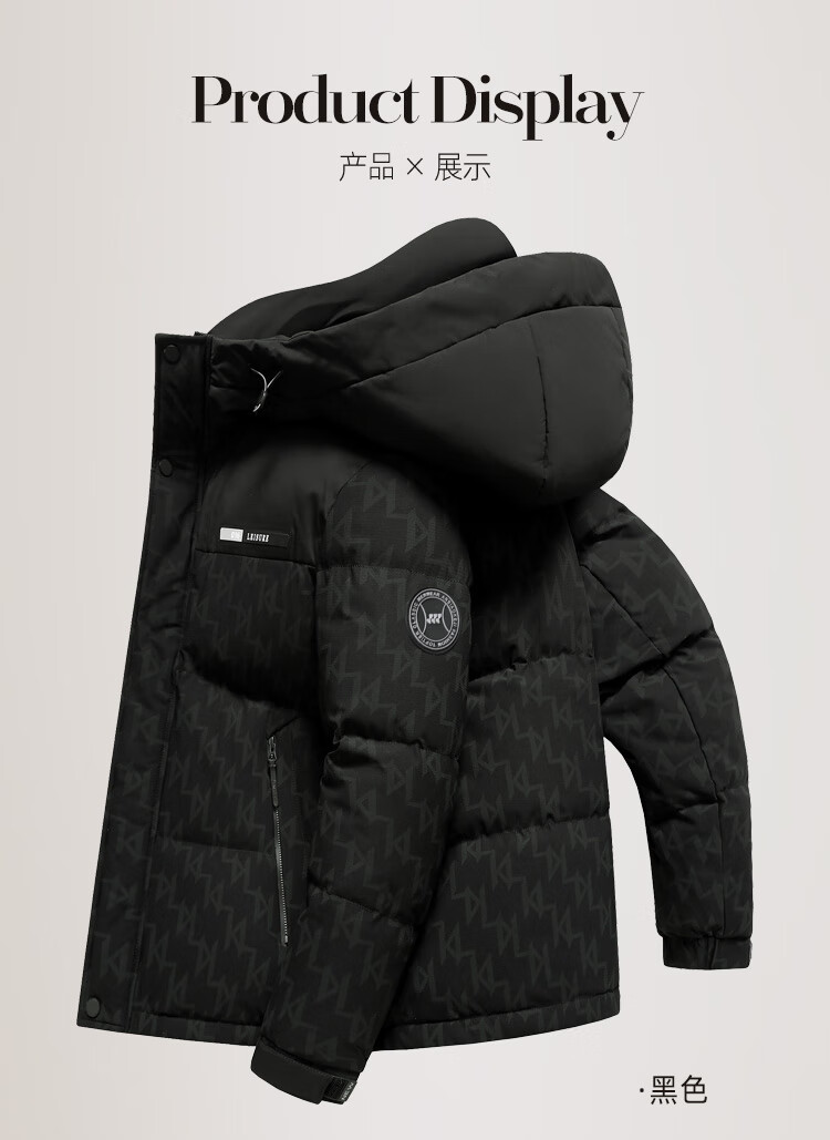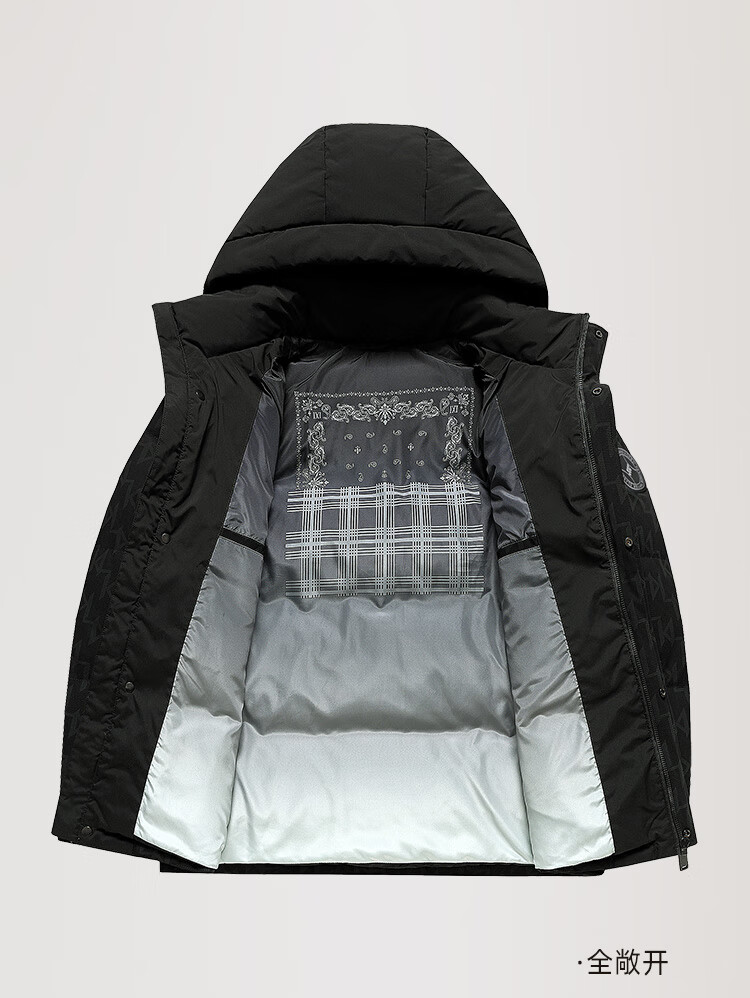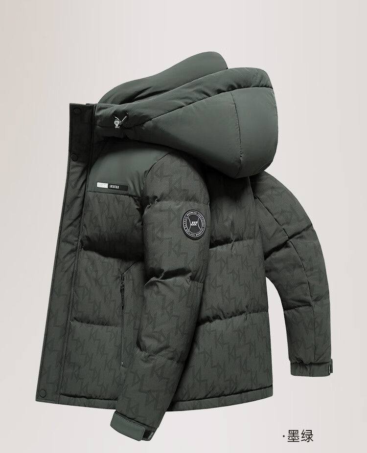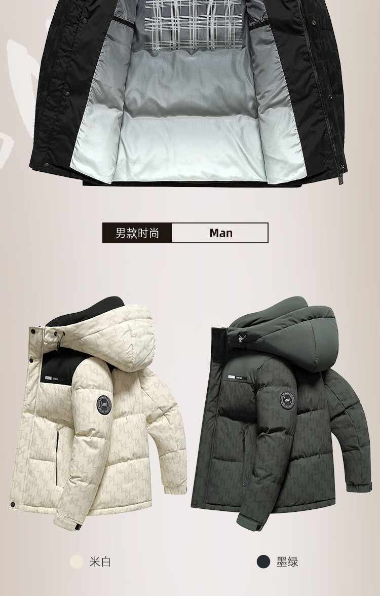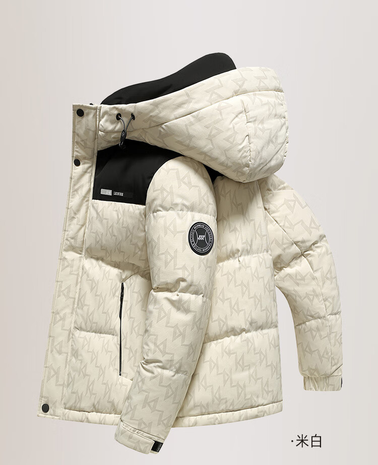 Flying in the Snow Down Jacket Men's Short Hooded Fashionable Color Block Printed 90 Fleece Thickened Warm Commuting Down Jacket