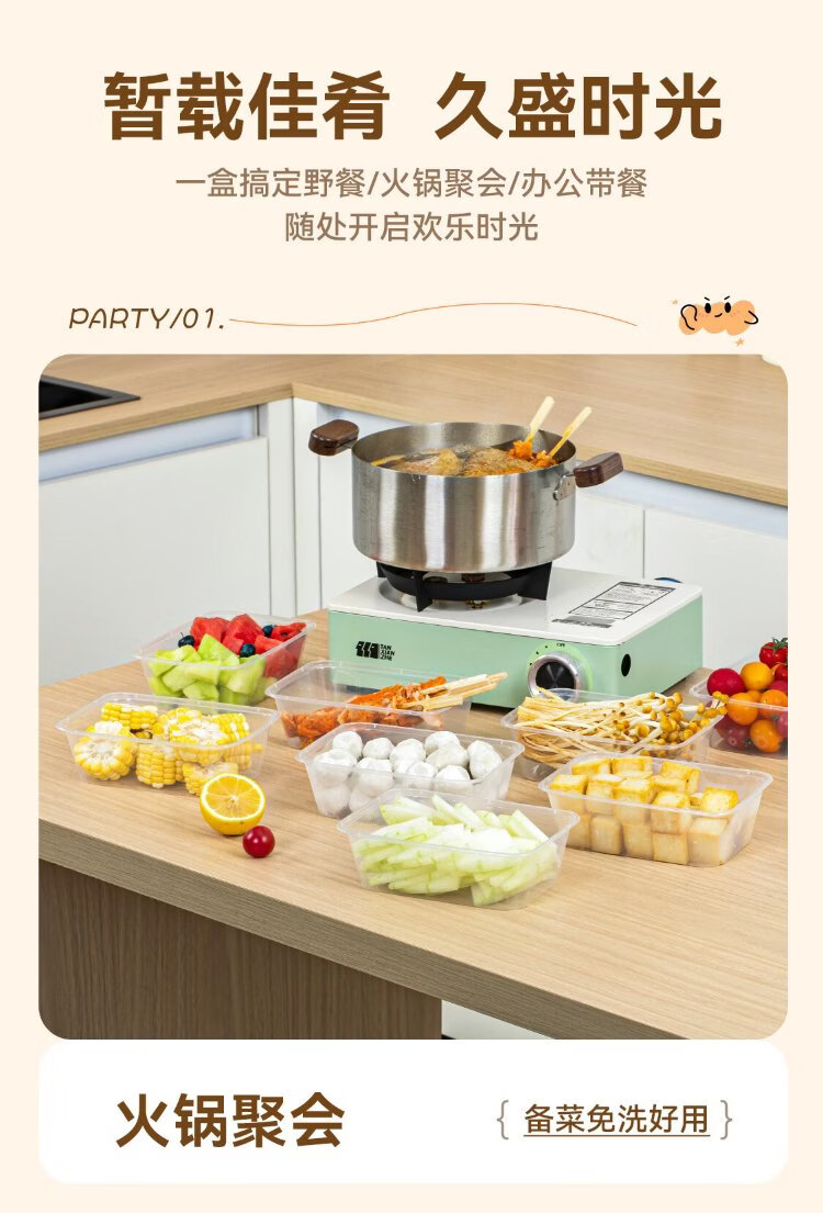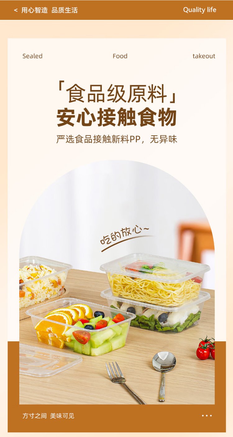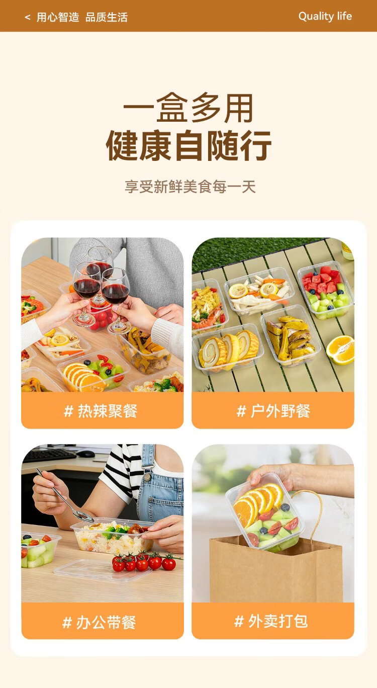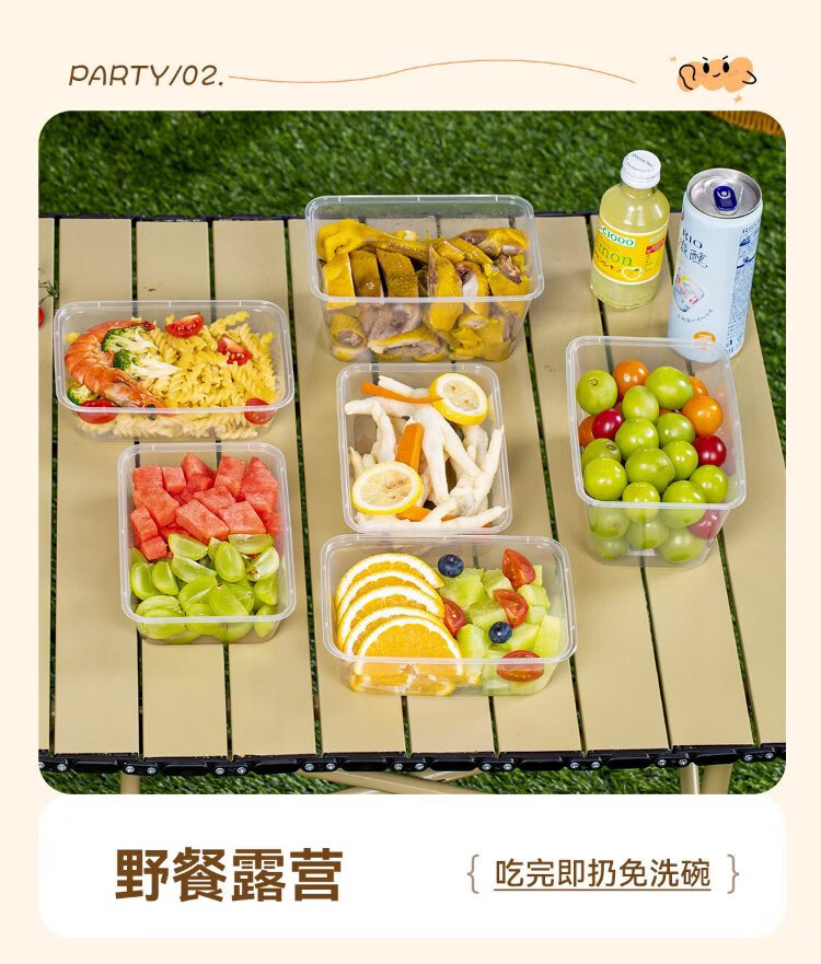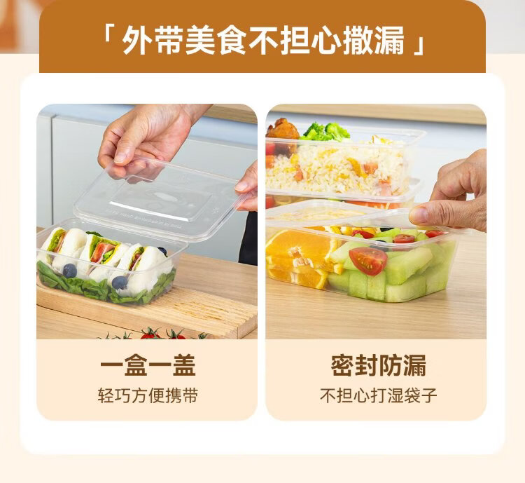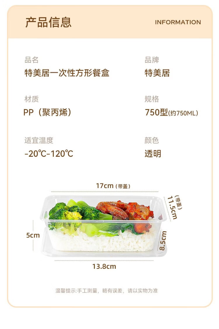 Temeiju disposable lunch box square 750 type * 10 sets for food fast food packed picnic box with lid bowl microwaveable