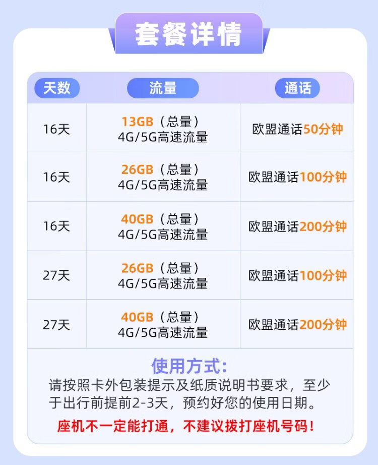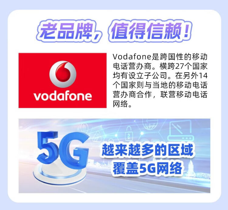 European Vodafone phone card 4G/5G high-speed traffic Internet card European multi-country travel card 16 days 40GB