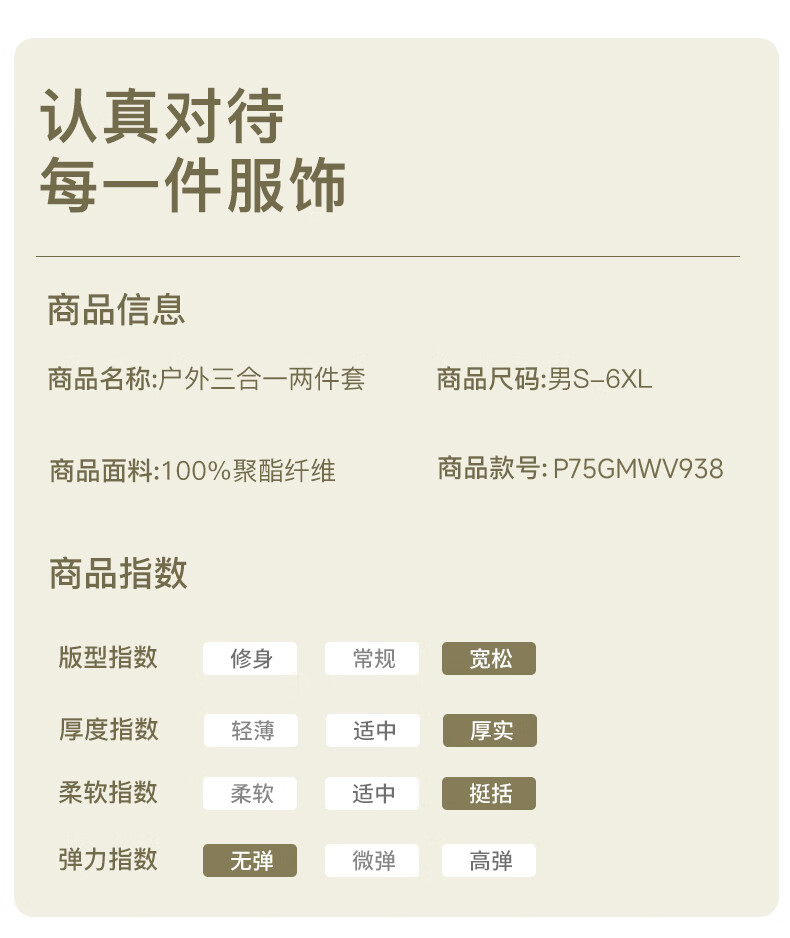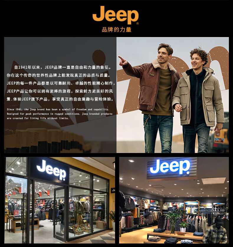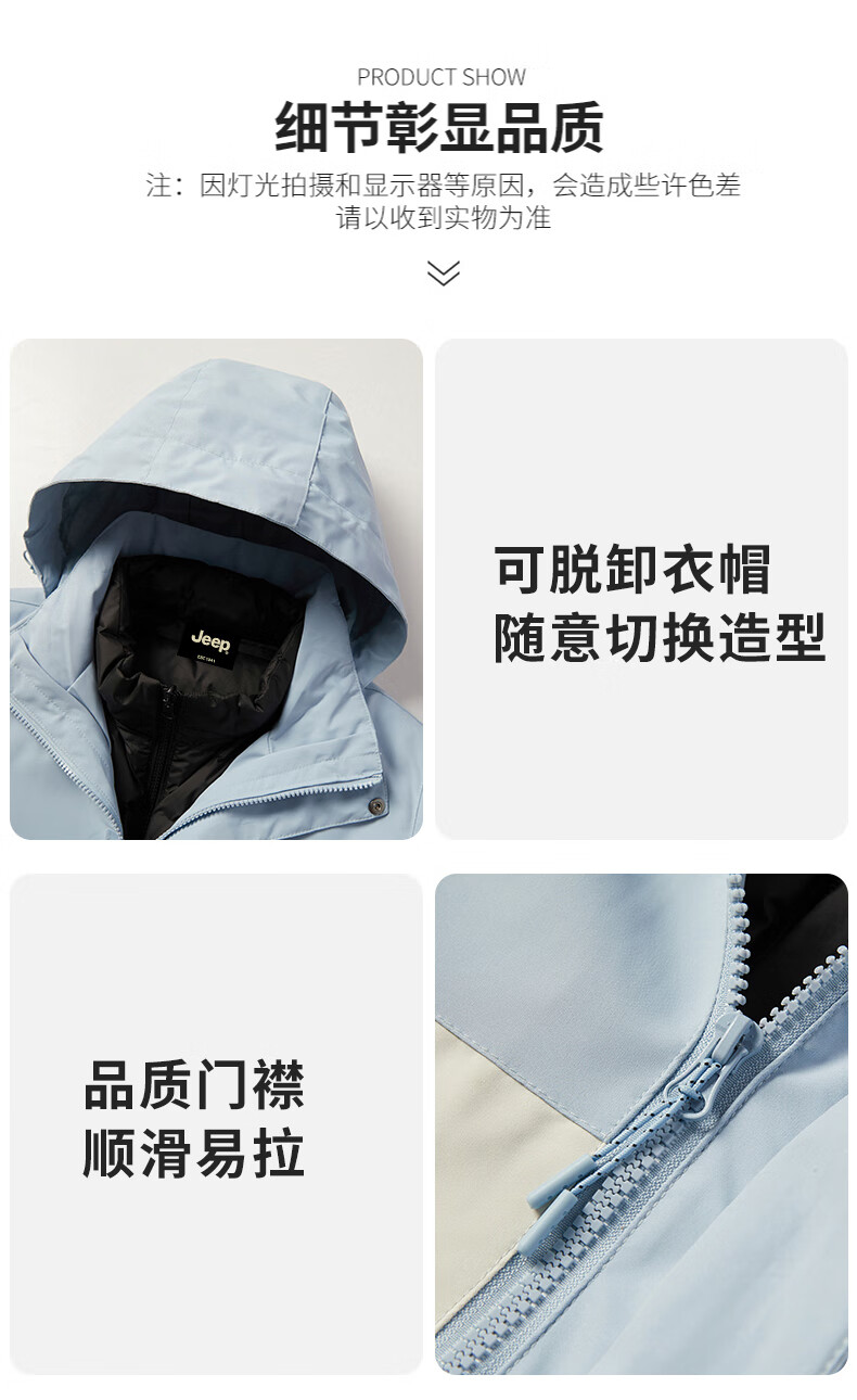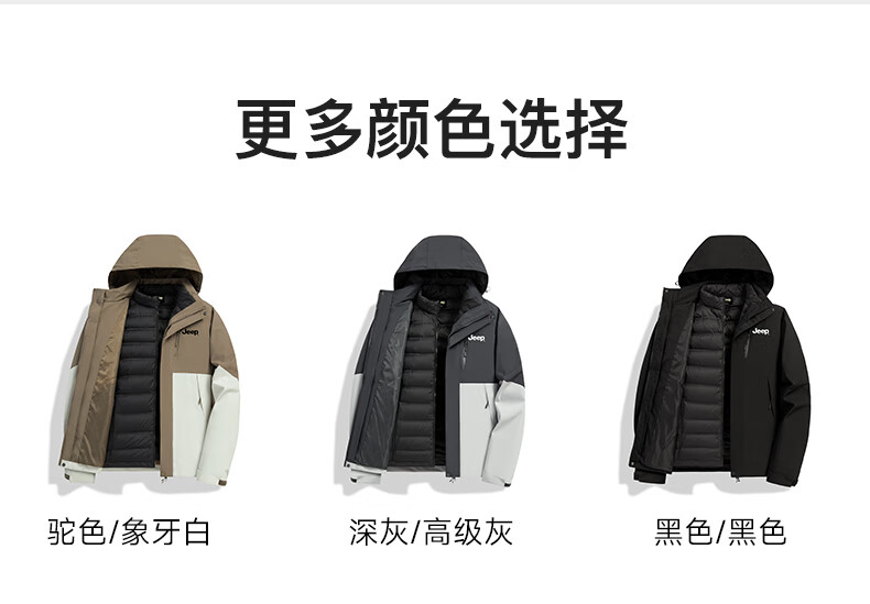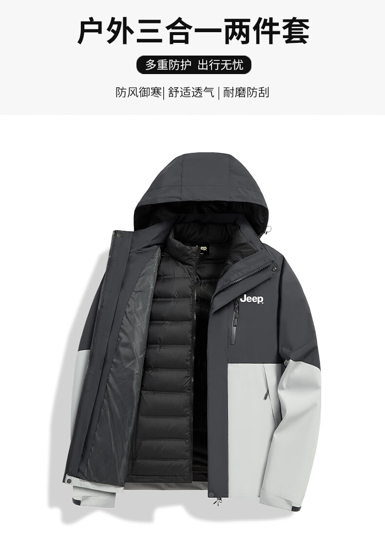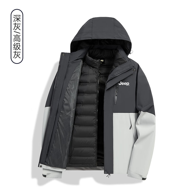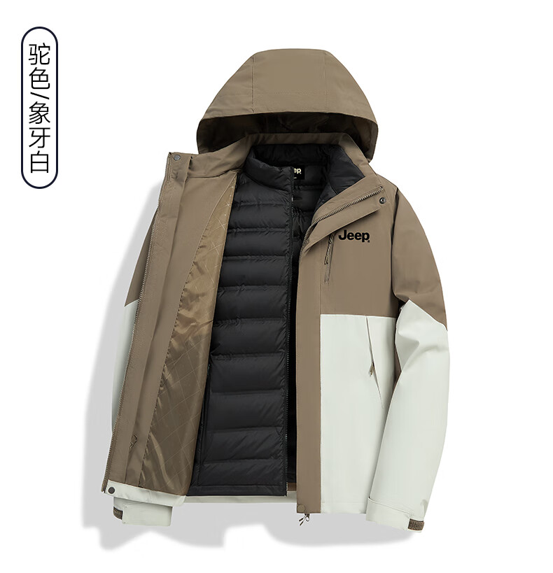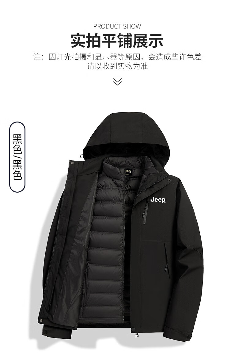 JEEP three-in-one assault jacket winter new windproof detachable hooded down liner warm men's jacket top