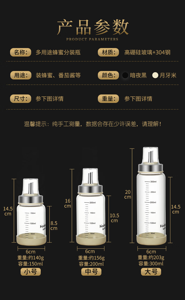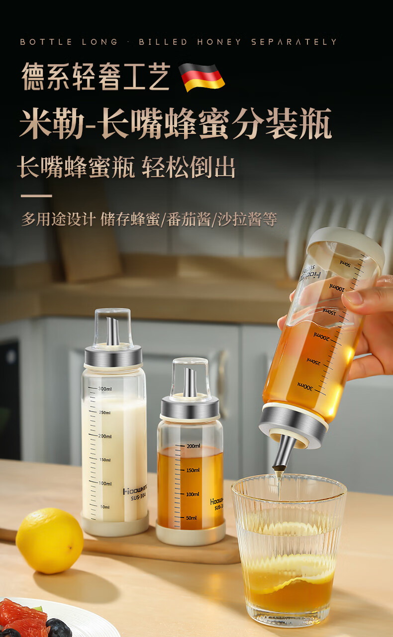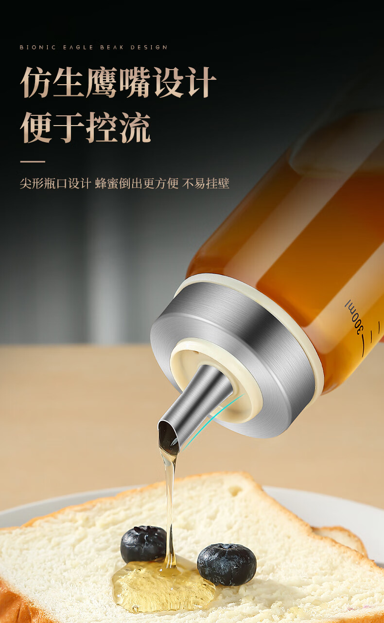 Heqing glass honey bottle honey jar jam bottle salad tomato sauce bottle sealed bottle household sauce pot 450ml