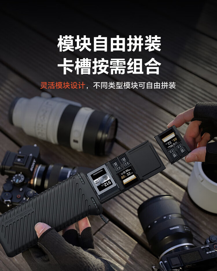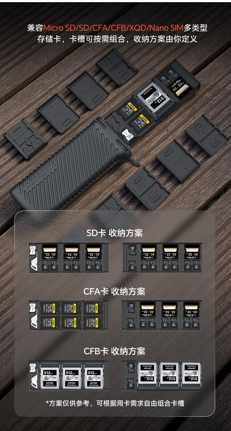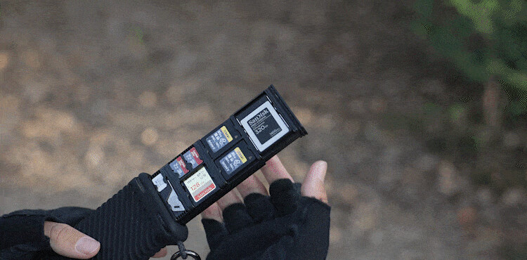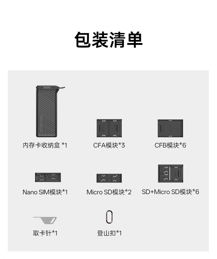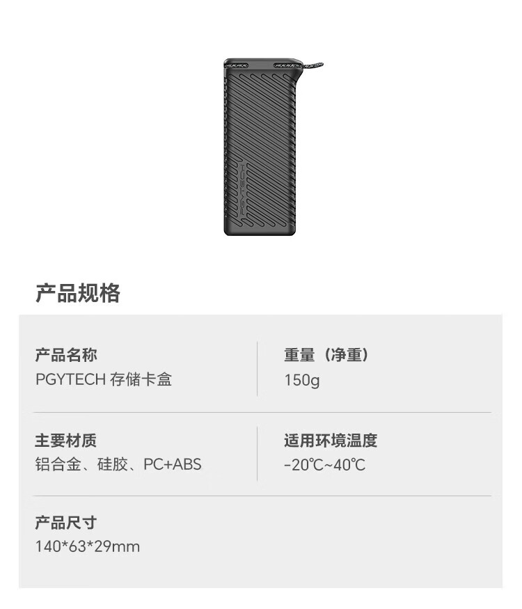 PGYTECH professional photography memory card box with multiple card slots to store SD/XQD/CF card memory card box aluminum alloy IP54 dustproof and waterproof carabiner portable
