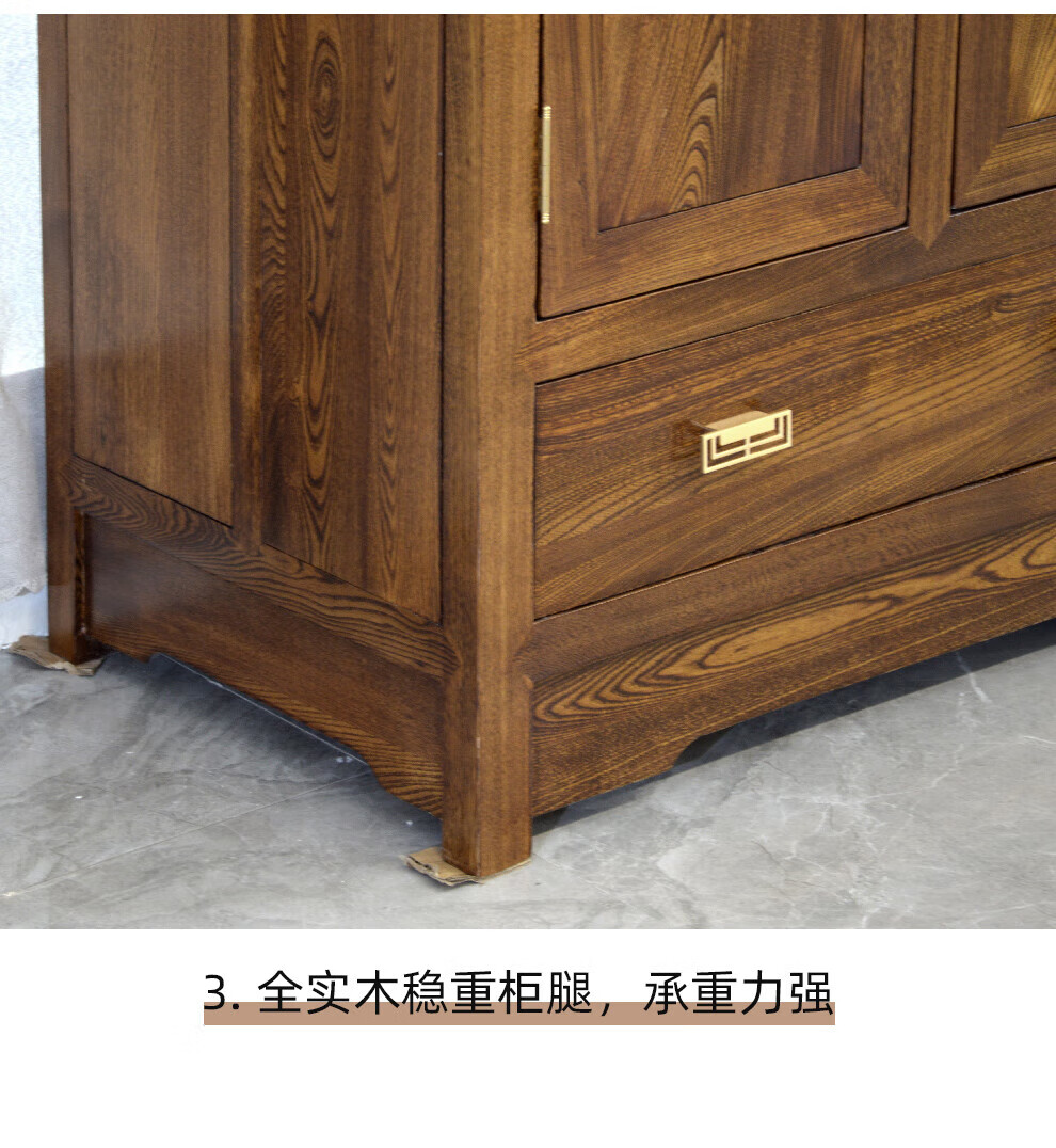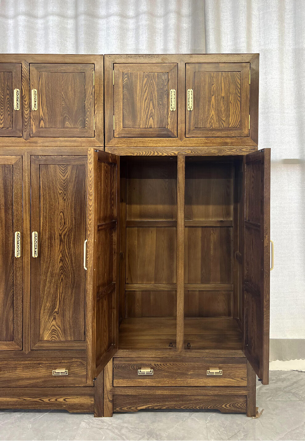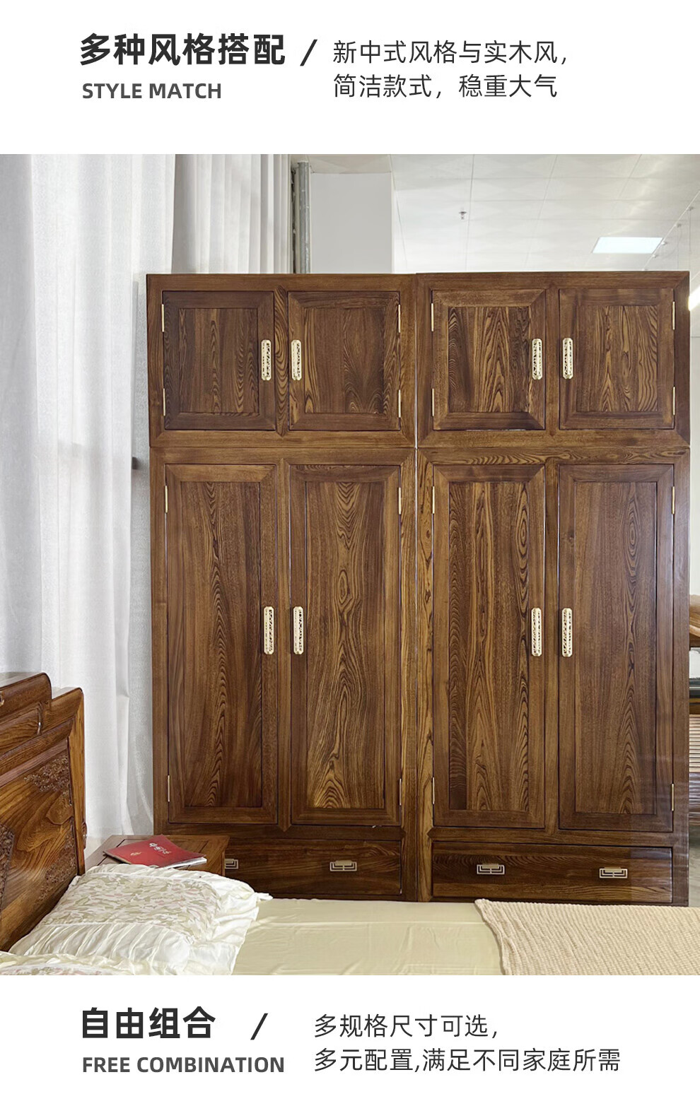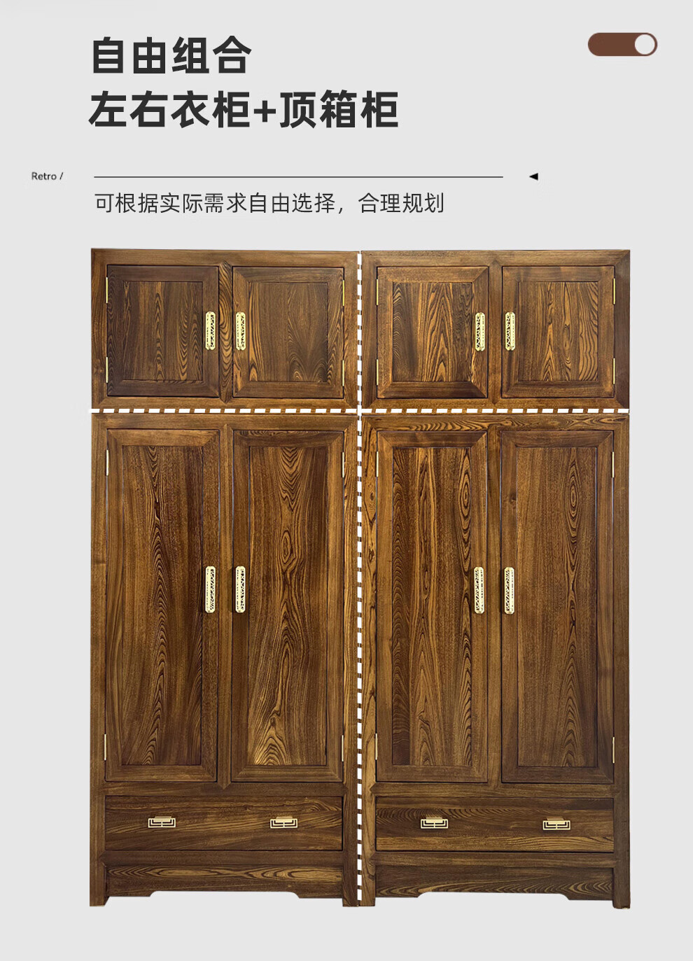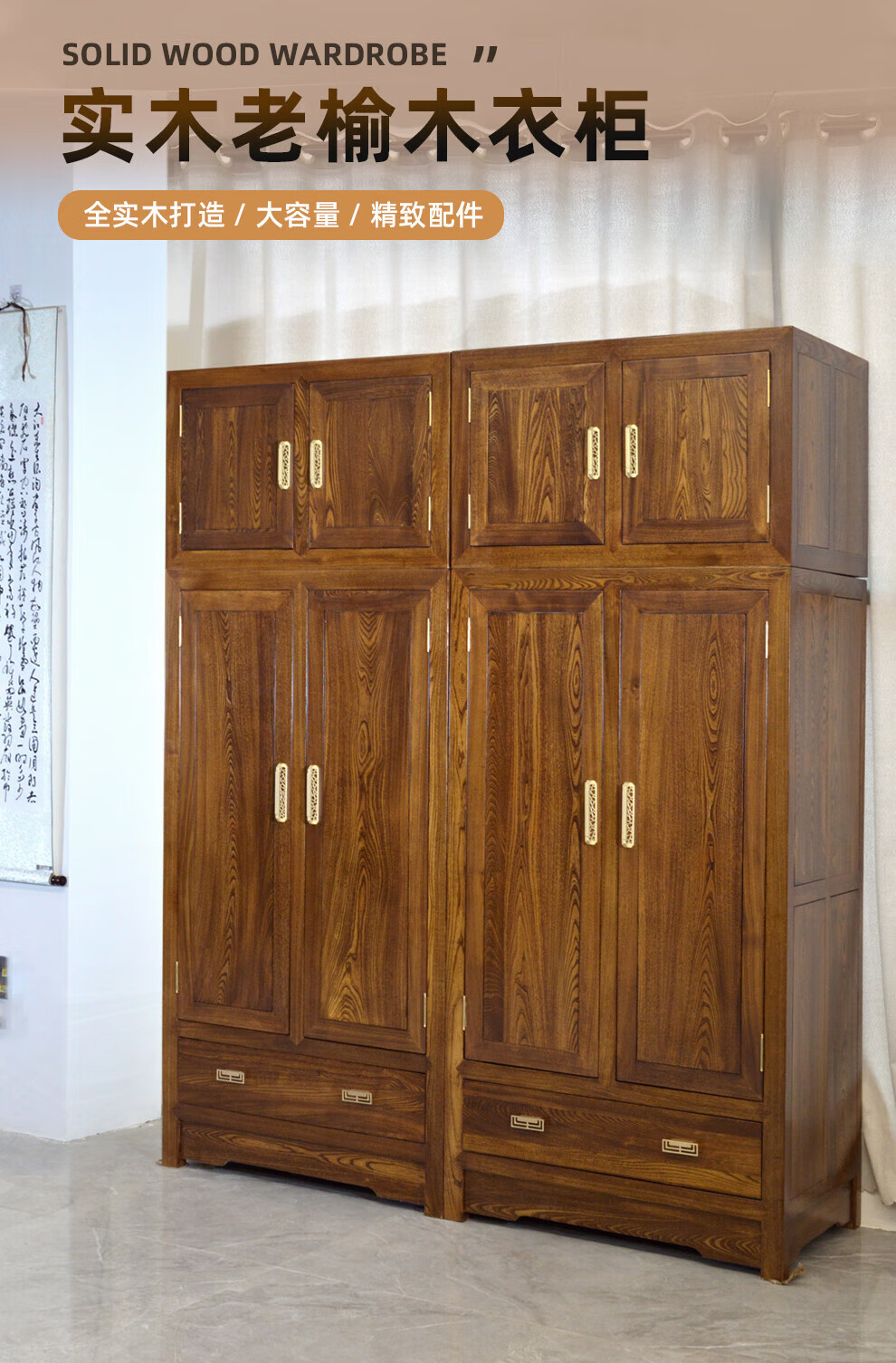 Master Yu old elm solid wood wardrobe flat door new Chinese style log bedroom wardrobe top box cabinet home combination storage cabinet