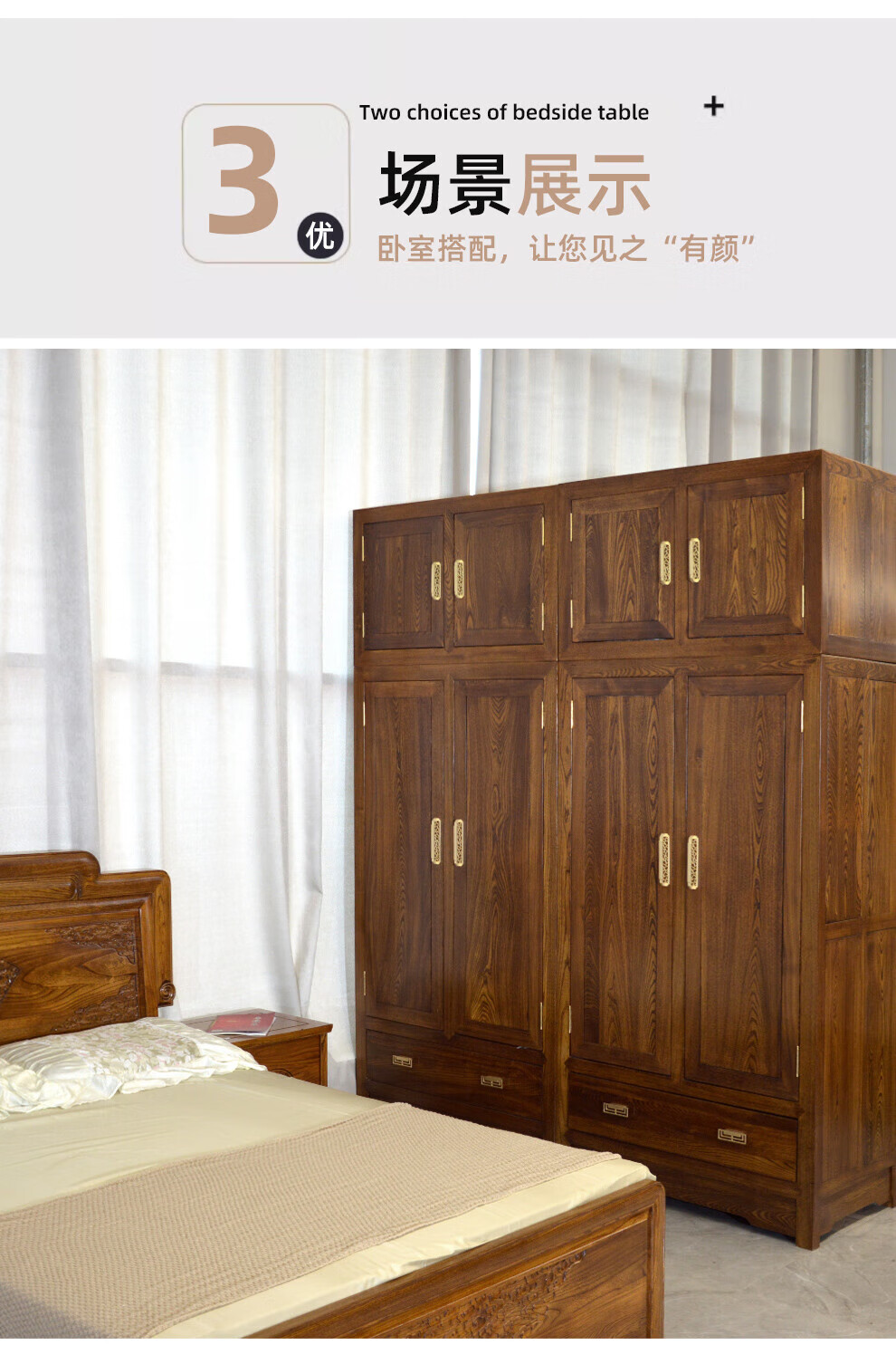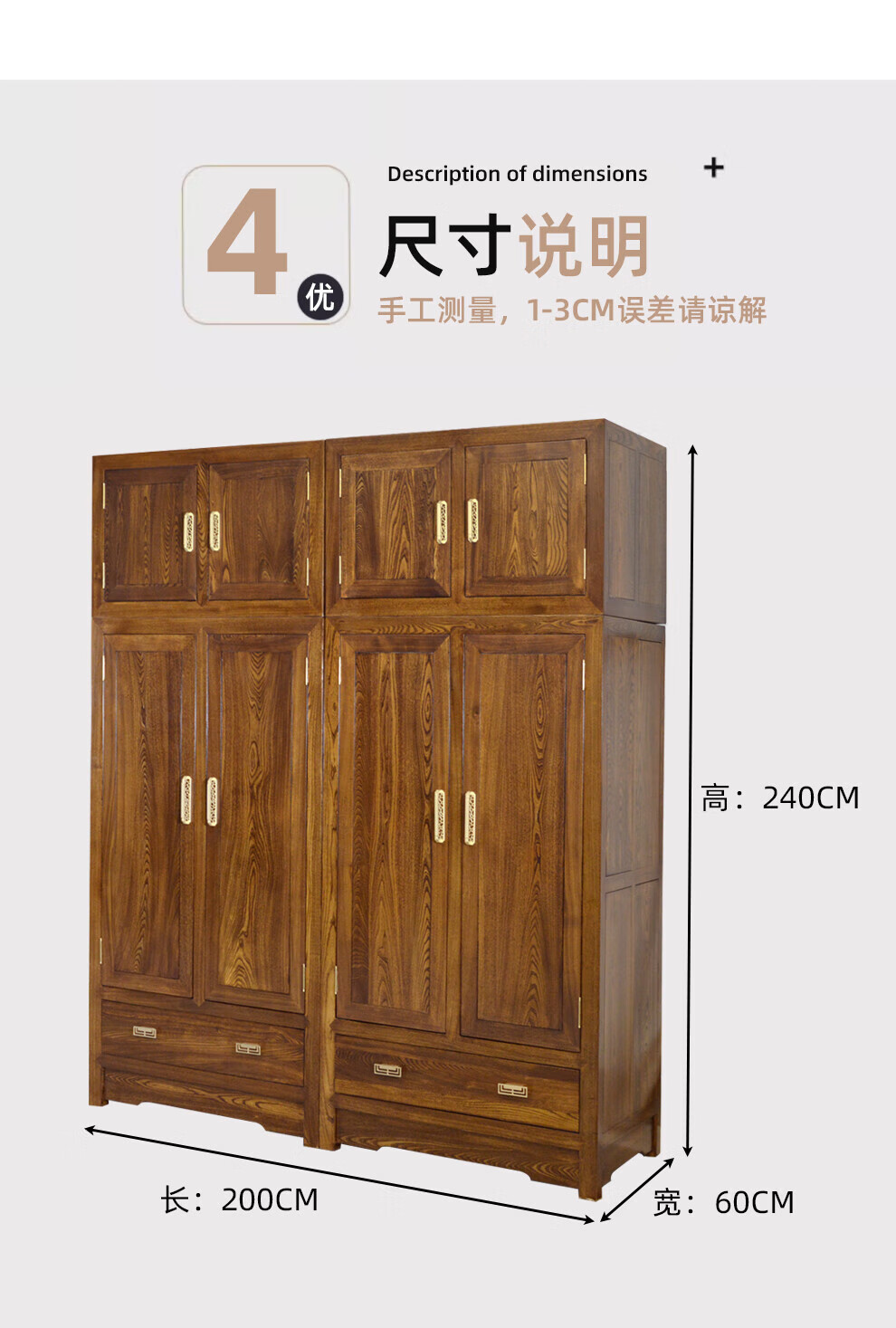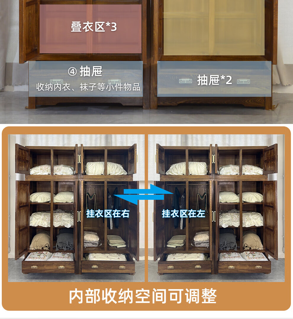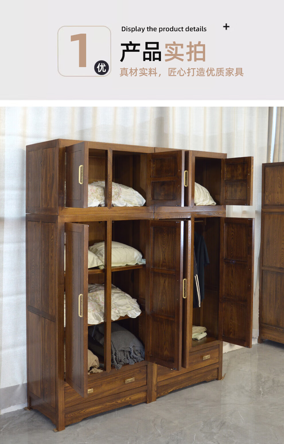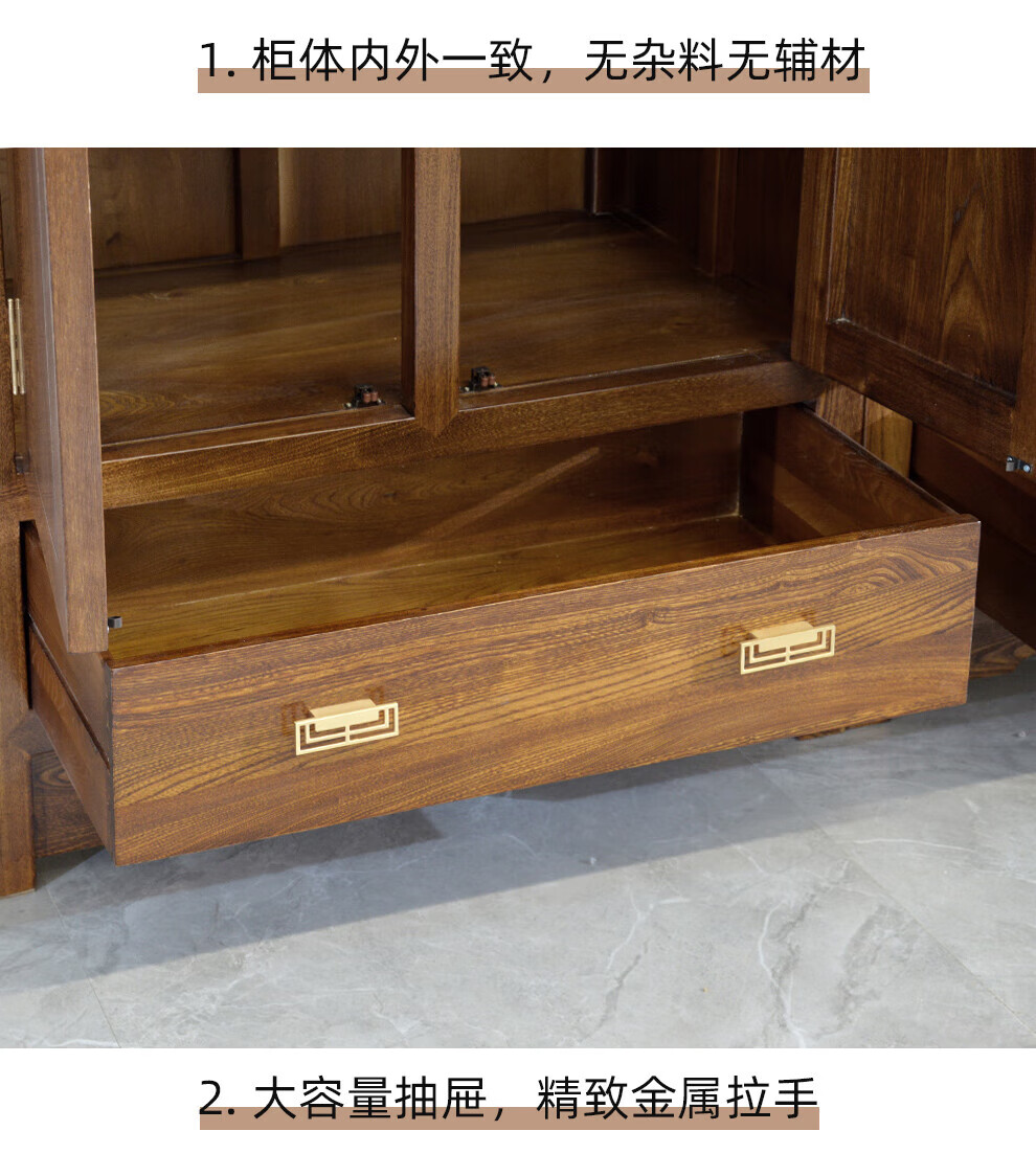 Master Yu old elm solid wood wardrobe flat door new Chinese style log bedroom wardrobe top box cabinet home combination storage cabinet