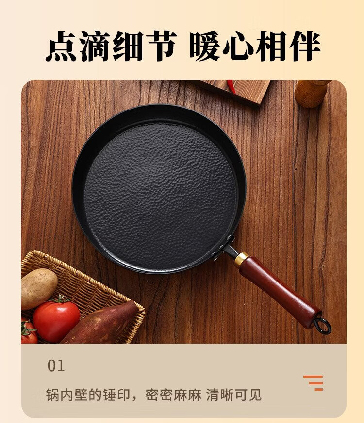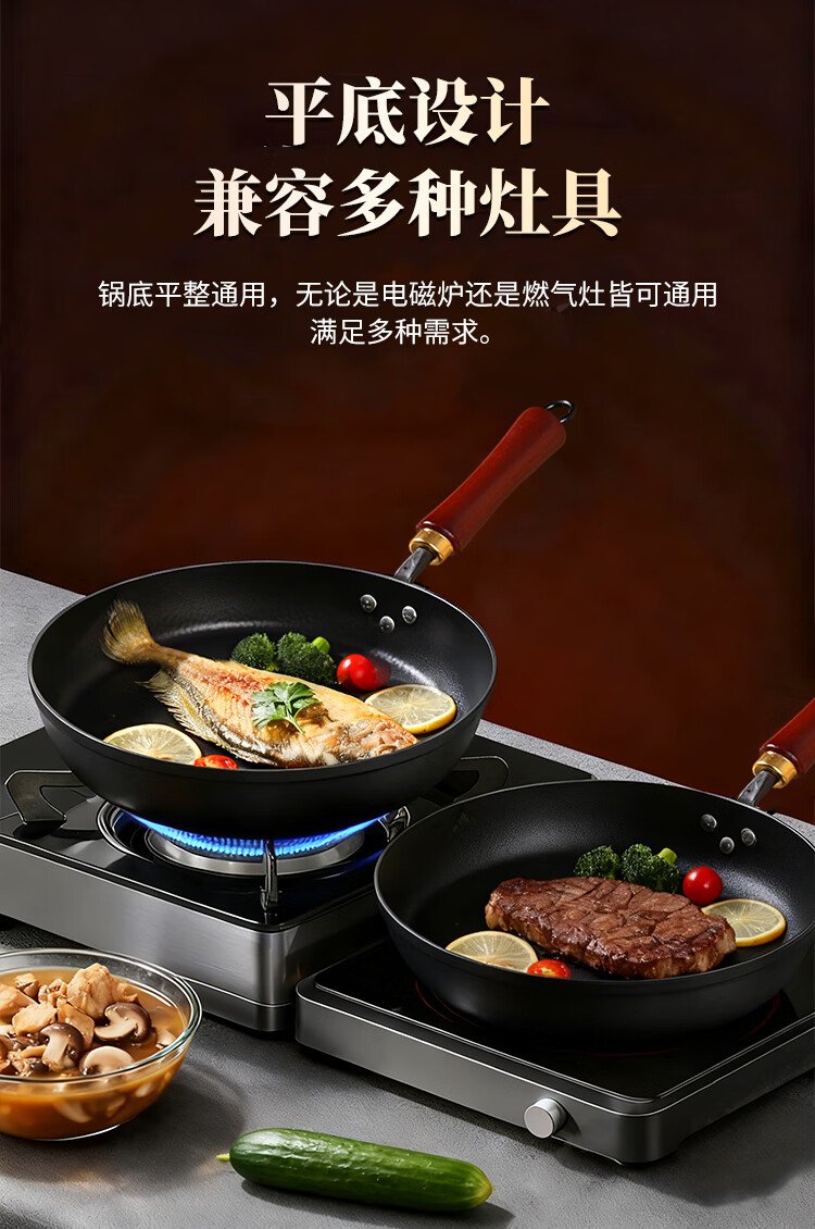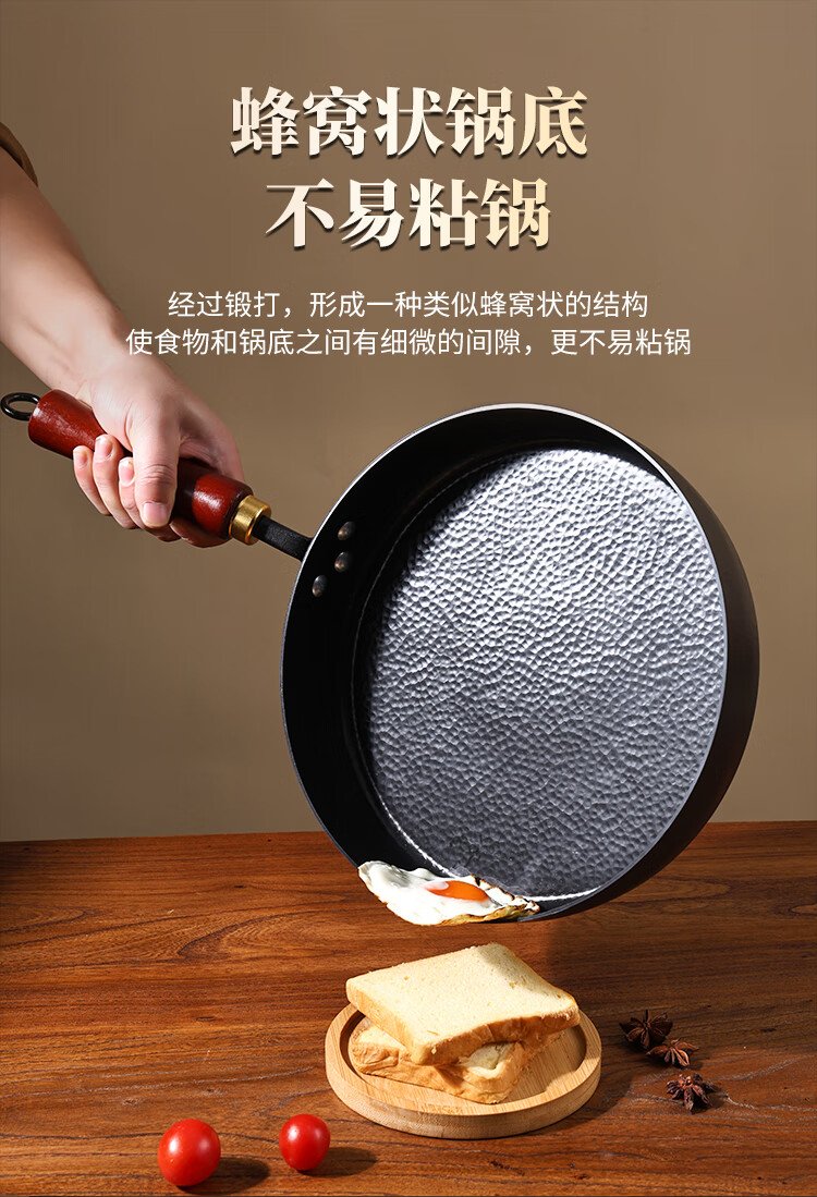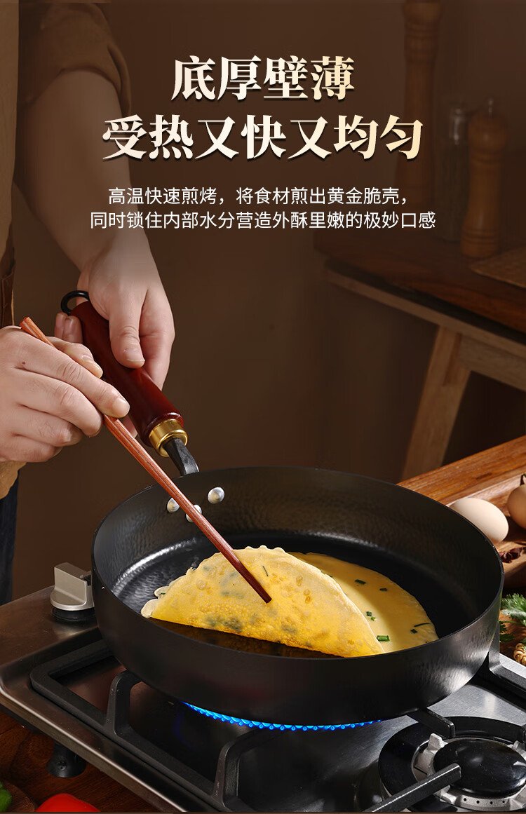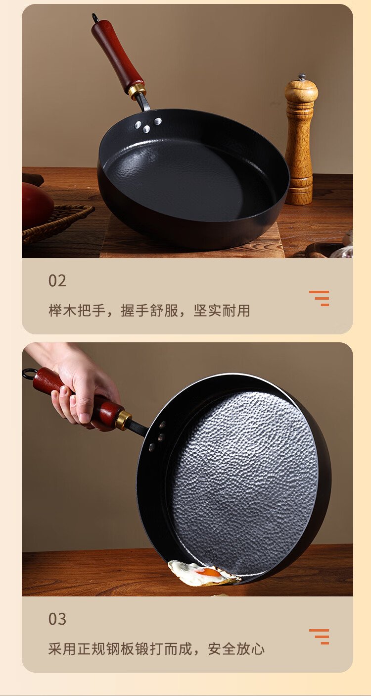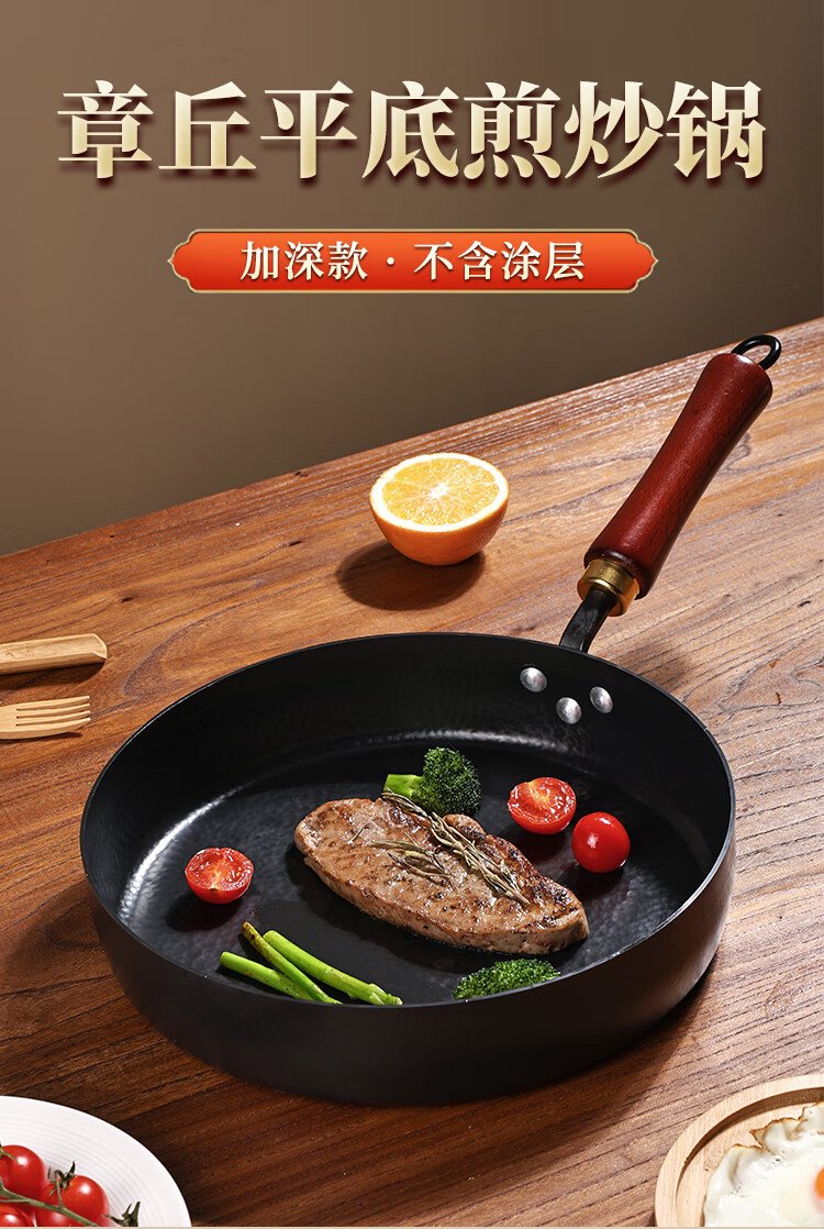 Blacksmith Yan Zhangqiu flat-bottomed frying pan iron pan uncoated cooking pot household fried egg barbecue steak pot old-fashioned gas stove 28cm