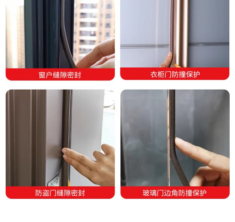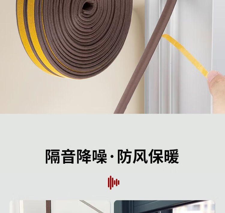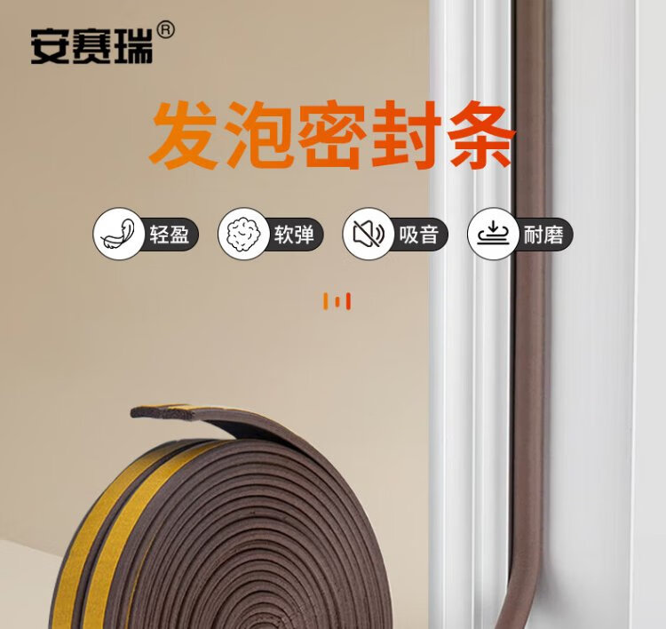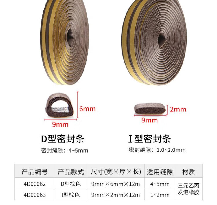 Ansery self-adhesive foam sealing strip, door and window door seam soundproof, windproof, dustproof, anti-collision, warm sealing strip, insect-proof door stopper, D-type brown, suitable for 4-5mm gaps 4D00062