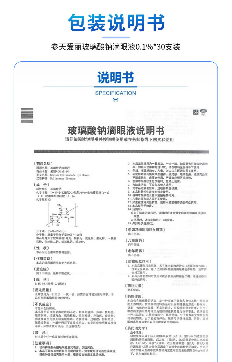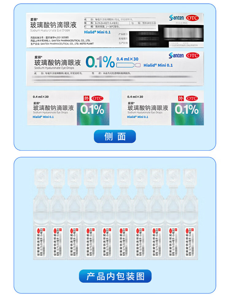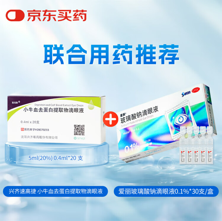 Xingqisu Gaojie Calf Blood Deproteinized Extract Eye Drops 0.4ml*20 pieces + Aili Sodium Hyaluronate Eye Drops 0.1%*30 pieces/box