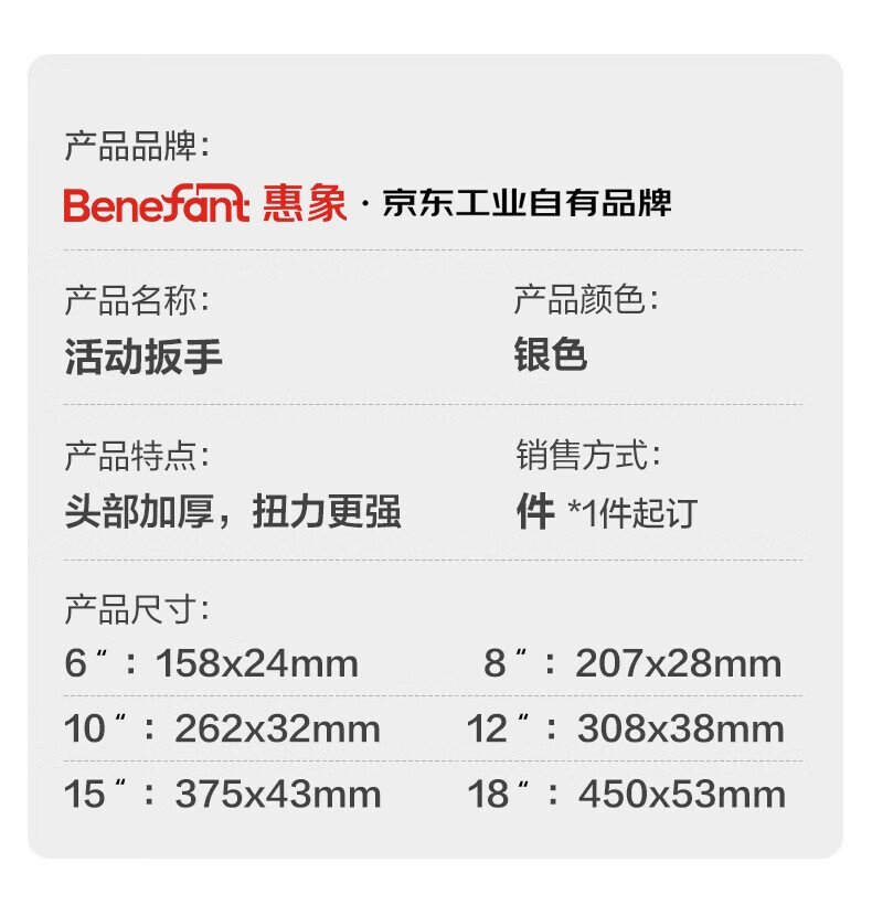 Huixiang Jingdong Industrial's own brand thickened handle large opening flexible light handle wrench 6 inches J010201