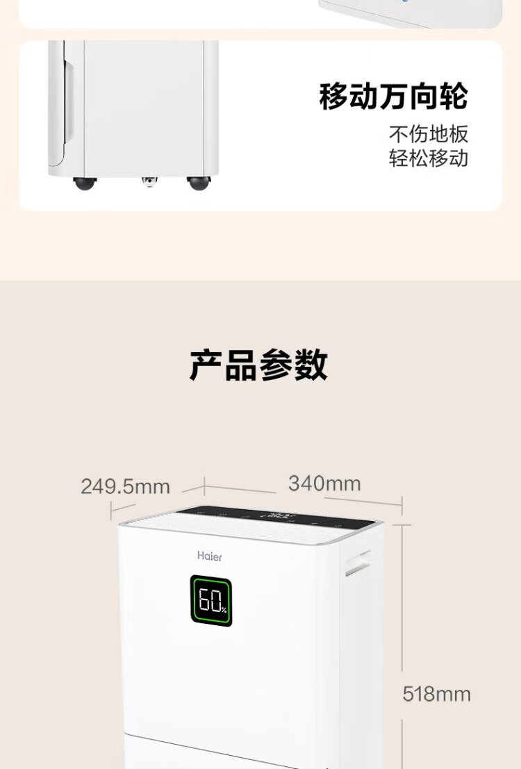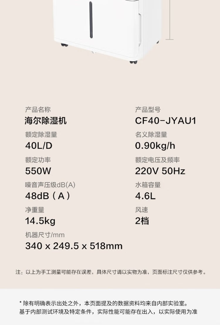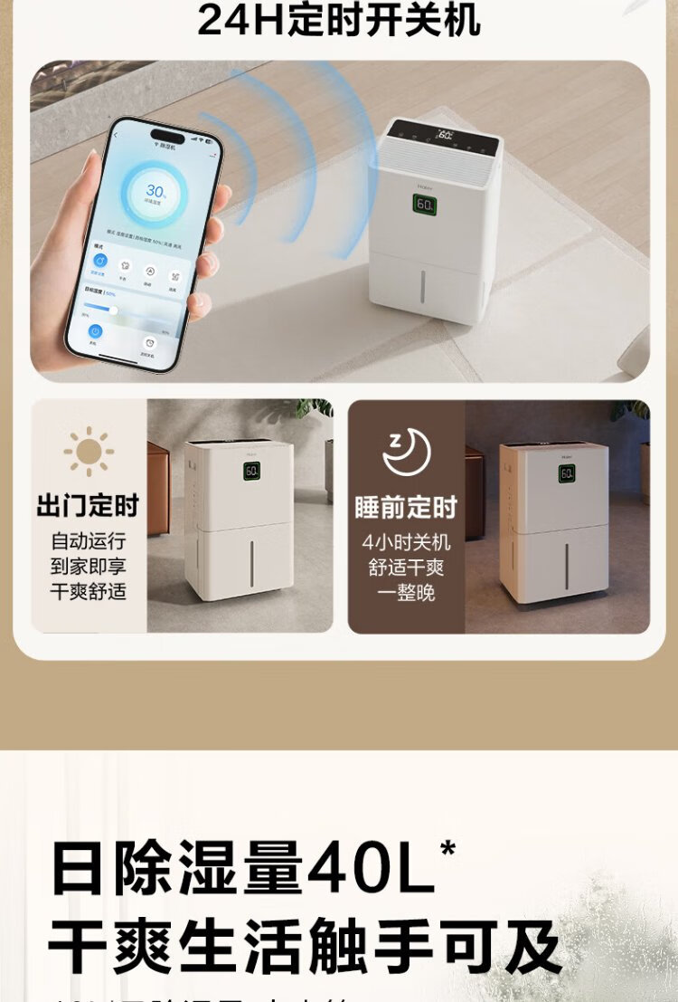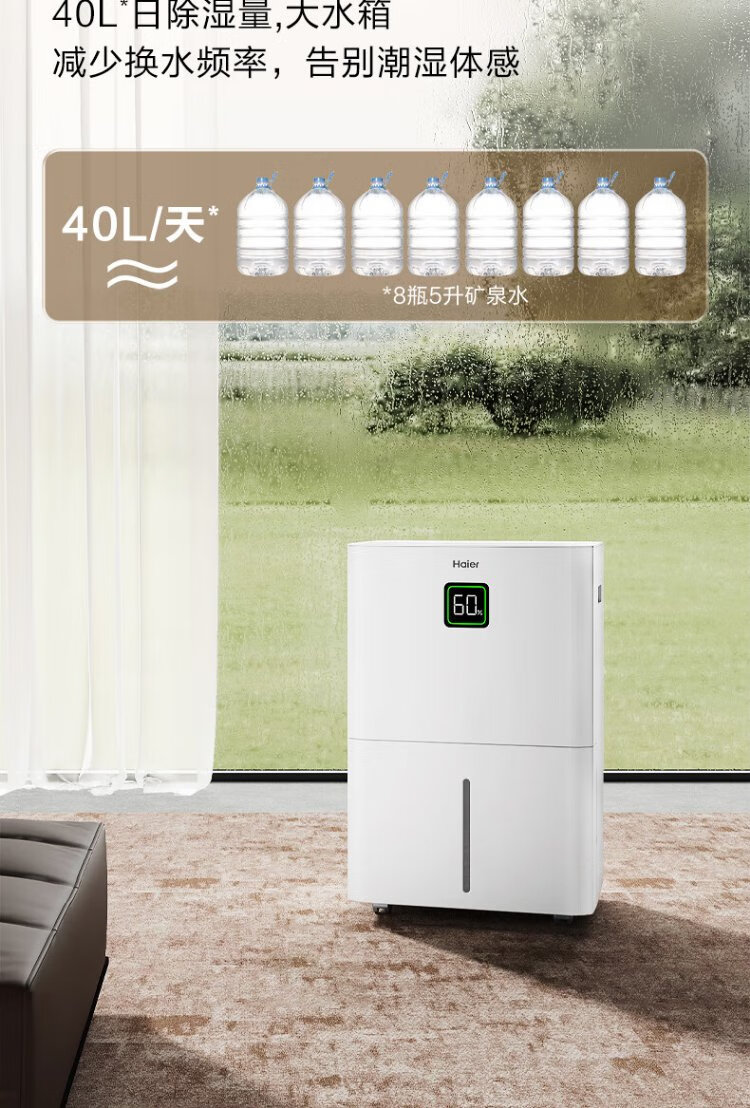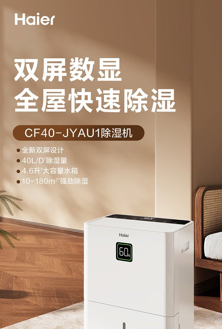 Haier dehumidifier, household basement with water pipe drainage, indoor bass, purifying dry clothes, compressor type, intelligent app control, high-power moisture absorber CF40-JYAU1