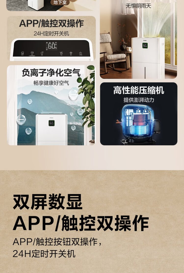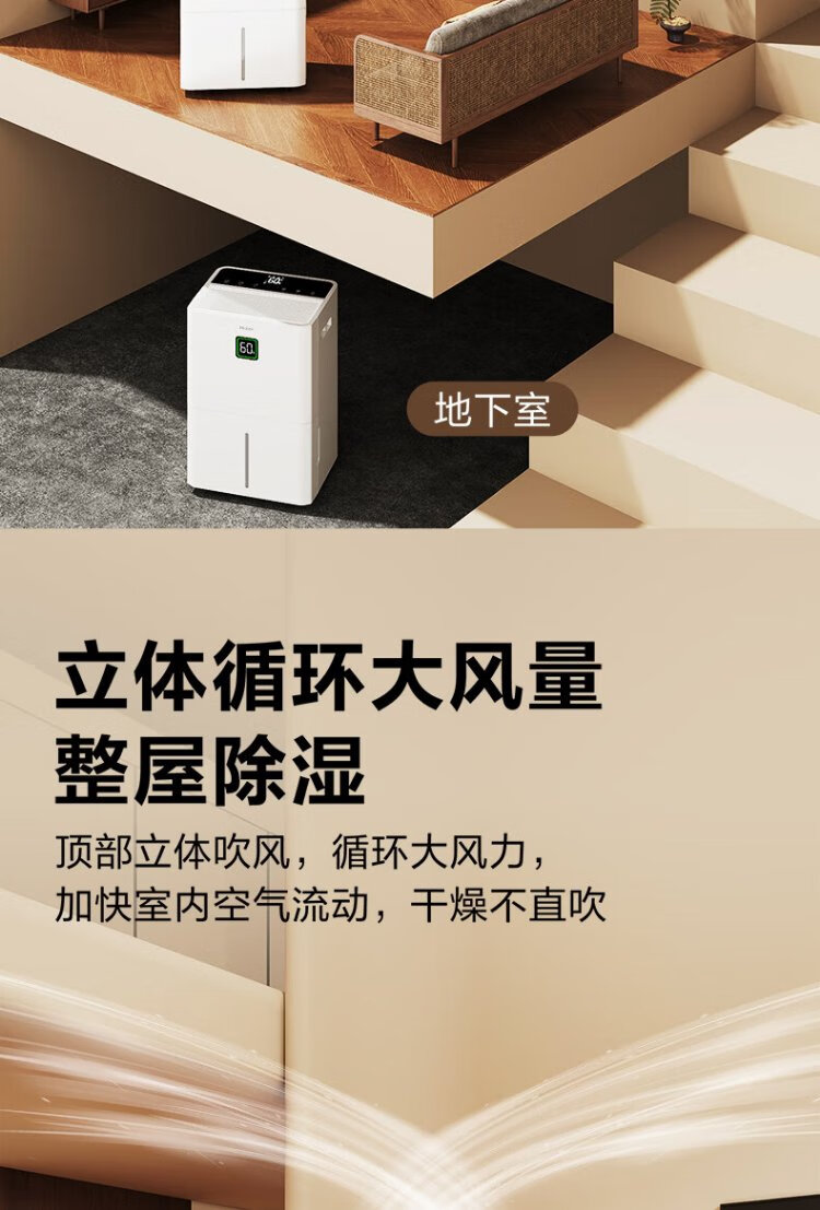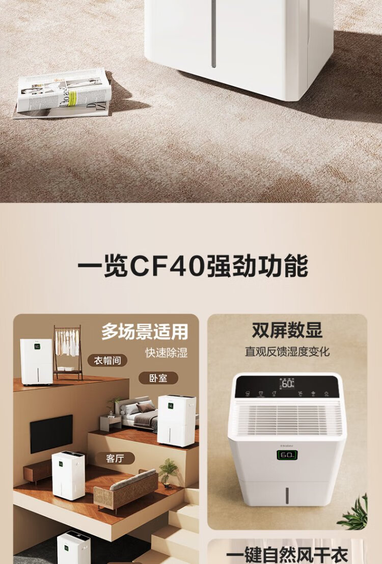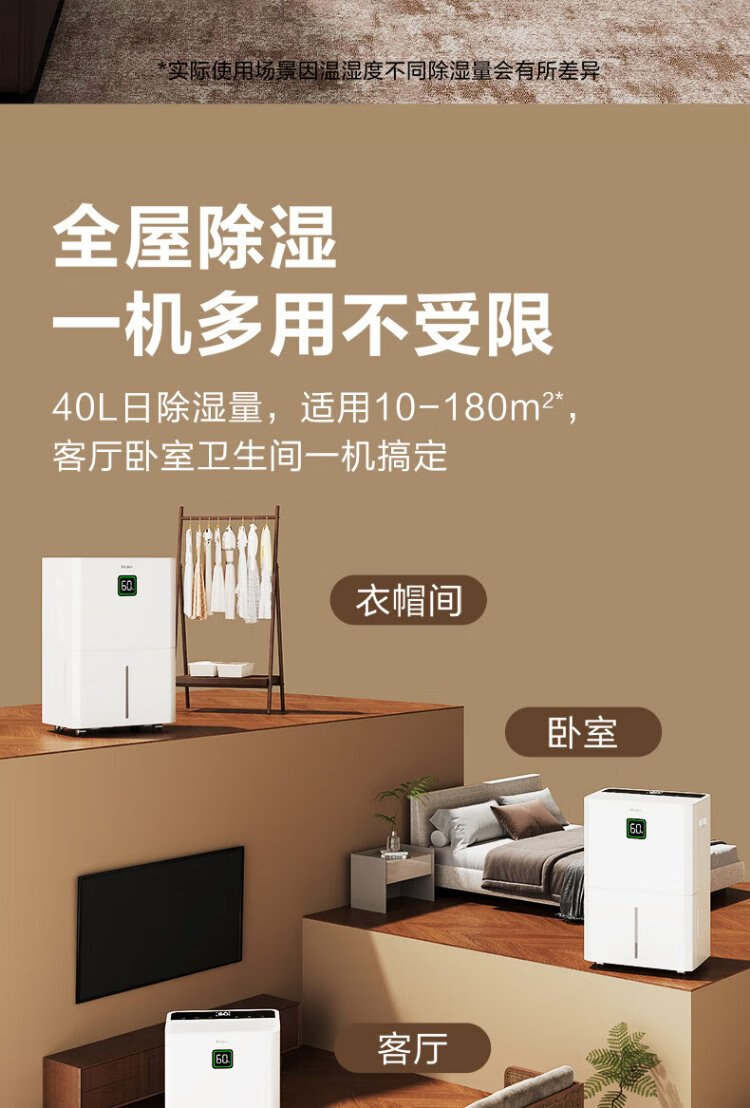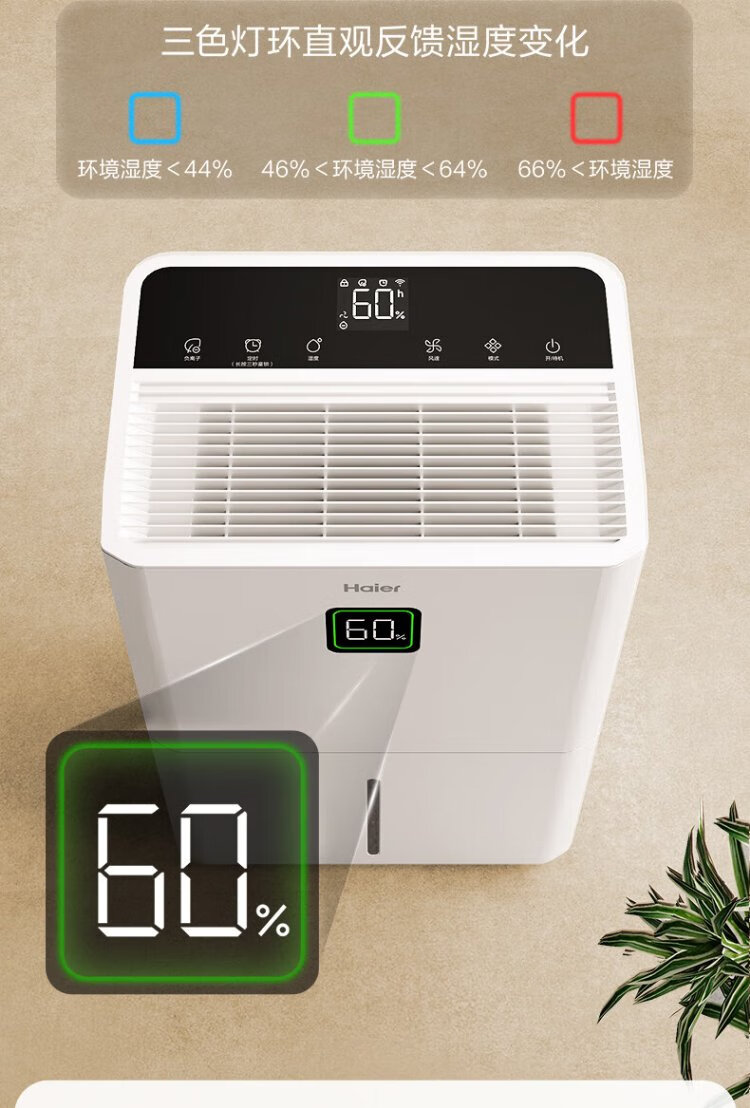 Haier dehumidifier, household basement with water pipe drainage, indoor bass, purifying dry clothes, compressor type, intelligent app control, high-power moisture absorber CF40-JYAU1