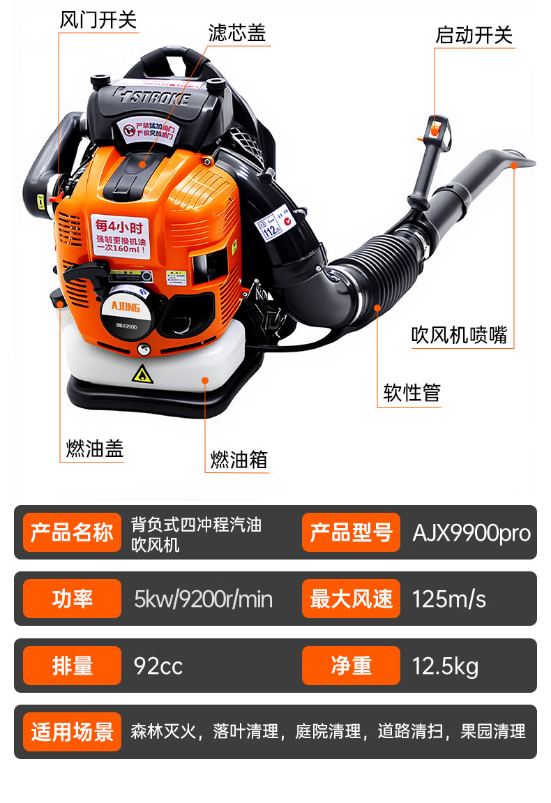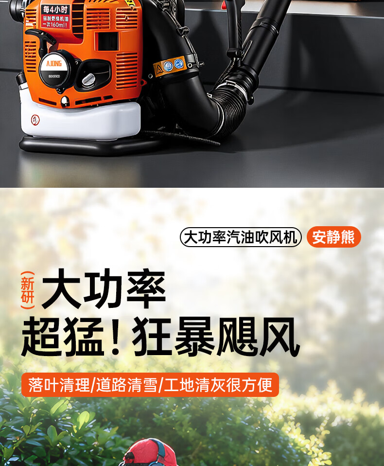 Quiet Bear Backpack Gasoline Hair Dryer High Power Blower Road Snow Blower High Wind Fire Extinguisher Industrial Soot Blower