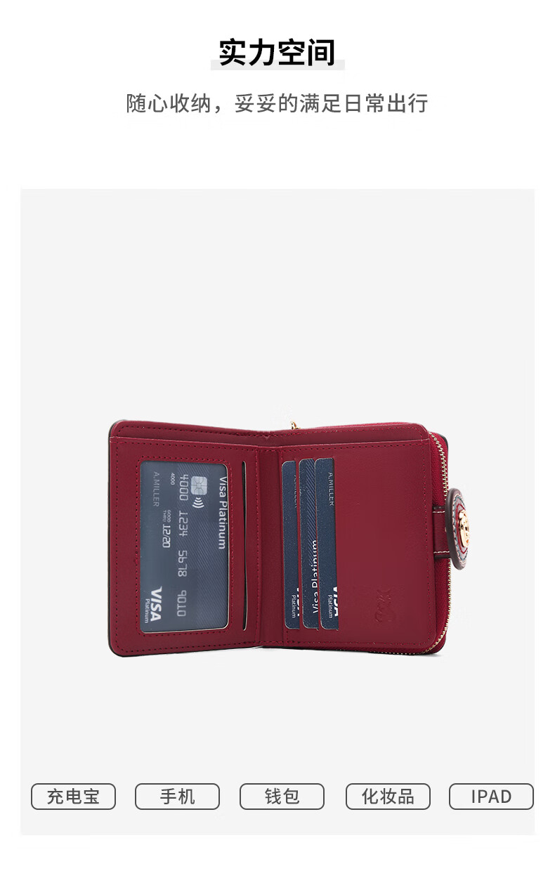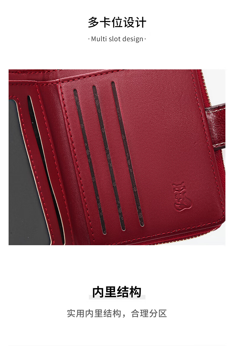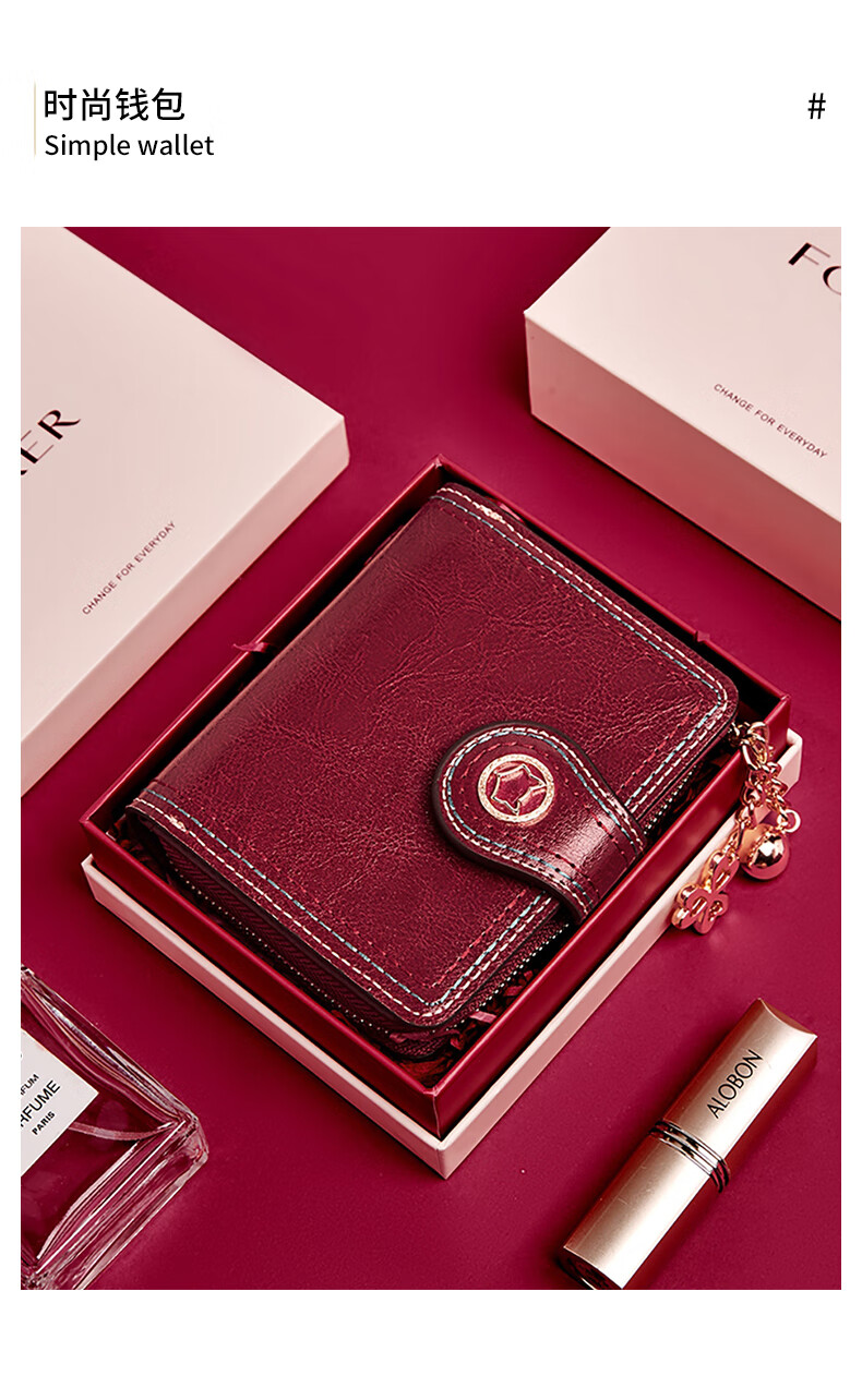 Golden Fox (FOXER) Women's Coin Purse Large Capacity Short Two-fold Card Holder Zipper Money Holder Clutch Bag Birthday Gift for Girlfriend