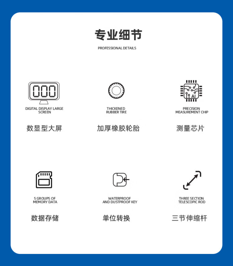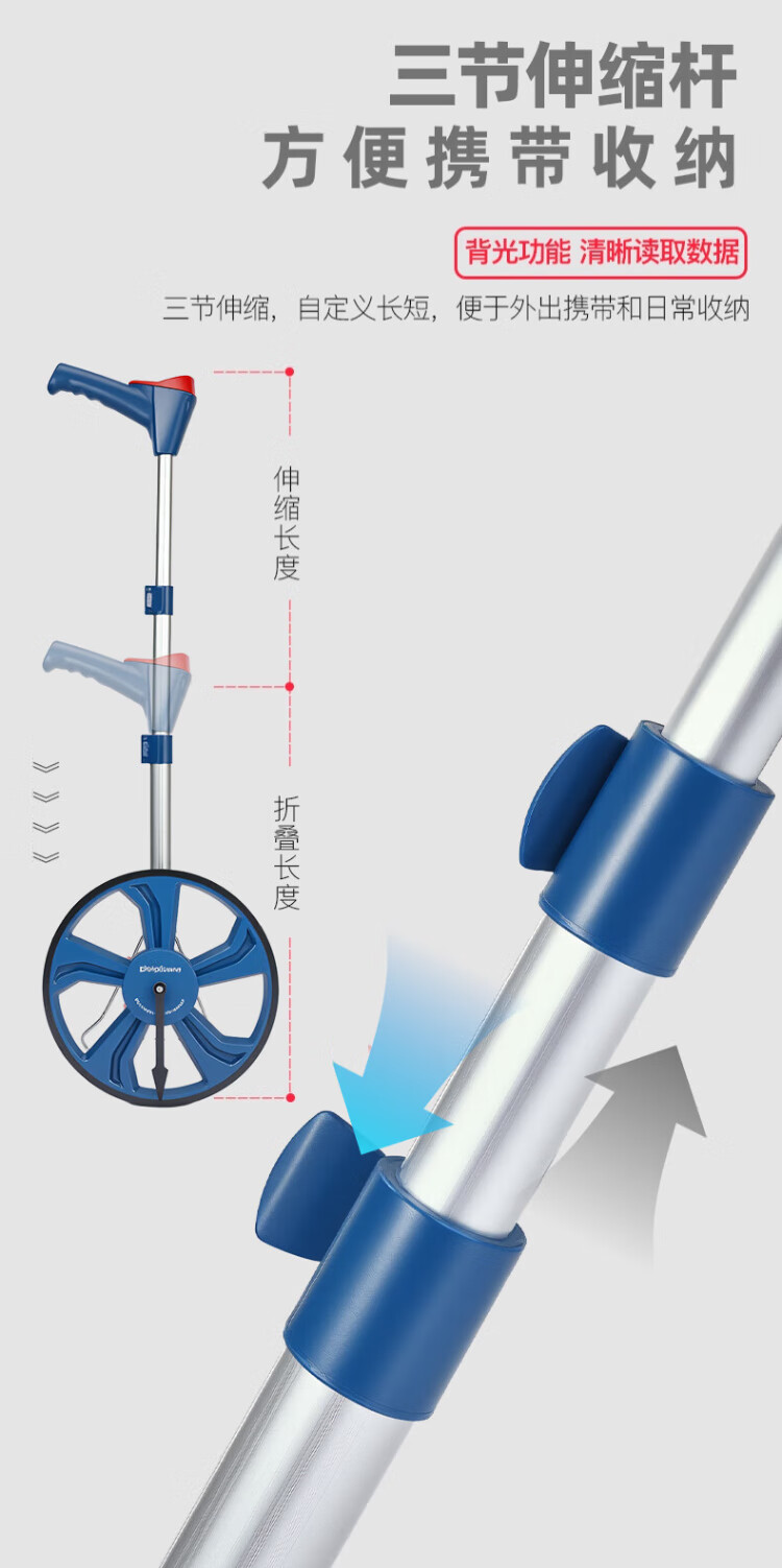 Dongcheng hand-push mechanical measuring caliper shrink handle small wheel outdoor roller digital display large wheel distance meter wheel diameter 318mm