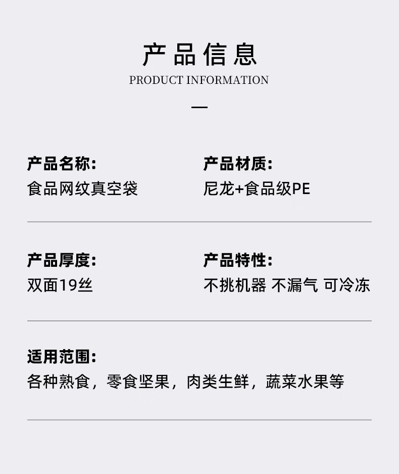 Elegant Lanpin anti-puncture mesh texture vacuum fresh-keeping packaging machine vacuum machine household commercial food packaging bag sealing plastic sealing machine household small cooked food vacuum bag 50 pieces 30*40