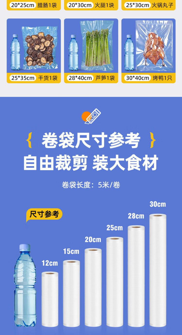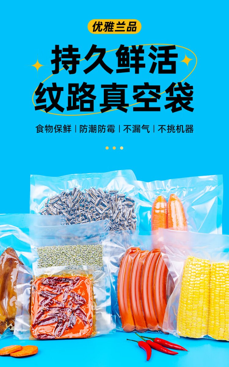 Elegant Lanpin Thickened Anti-Puncture No Picking Machine Mesh Texture Vacuum Food Deli Braised Bacon Packaging Sealing Machine Household Special Fresh Vacuum Packaging Bag 50 Pieces 20*25