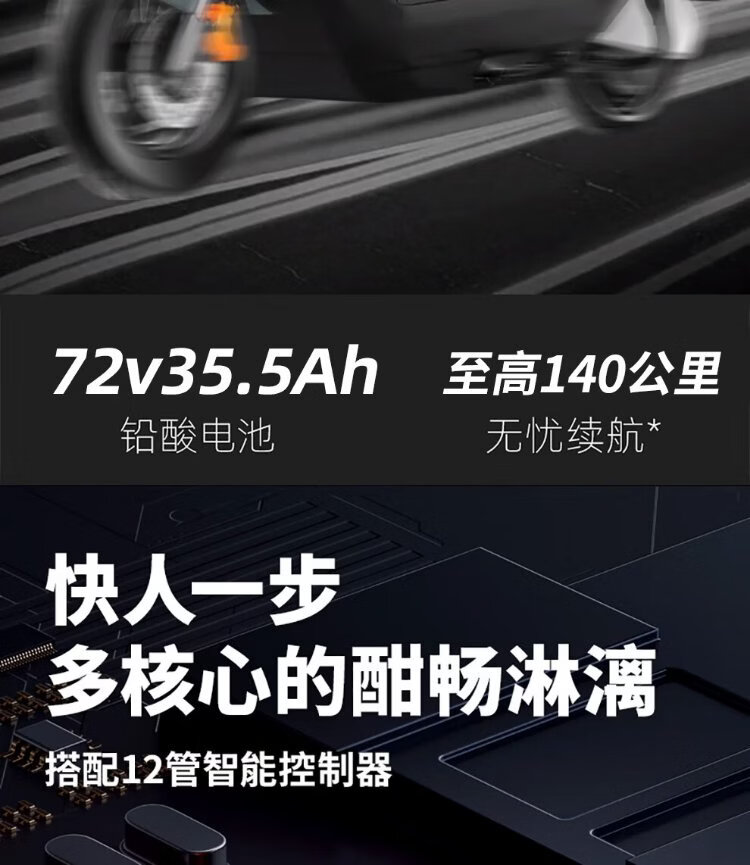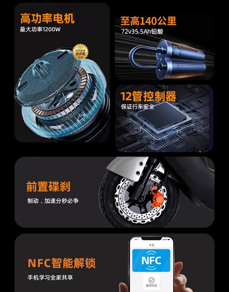 Luyuan Electric Motorcycle S16U Electric Battery Long Range Powerful National Good Car 117km-72V35.5A-6 Batteries-1200W Liquid Cooled Motor Green