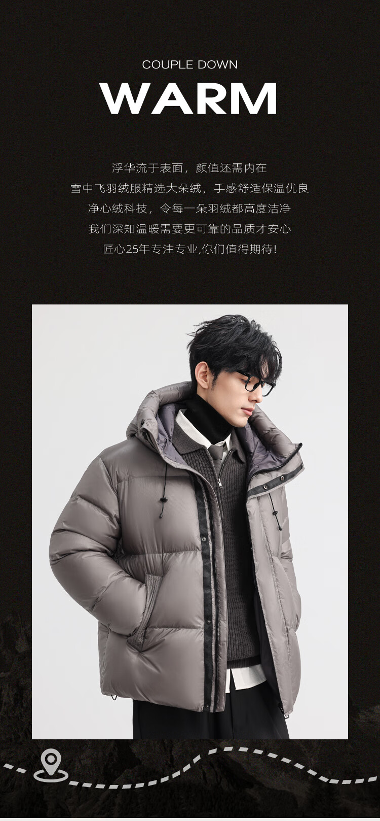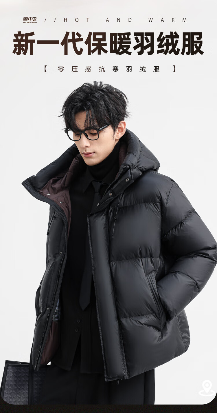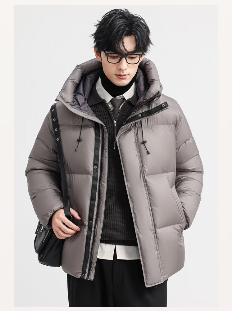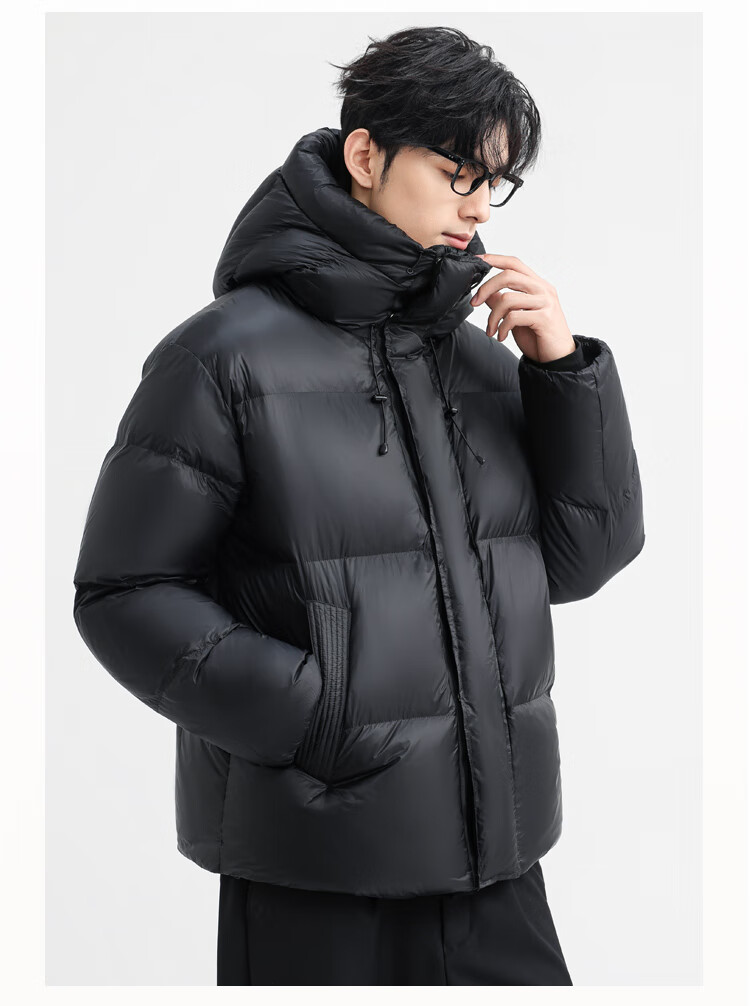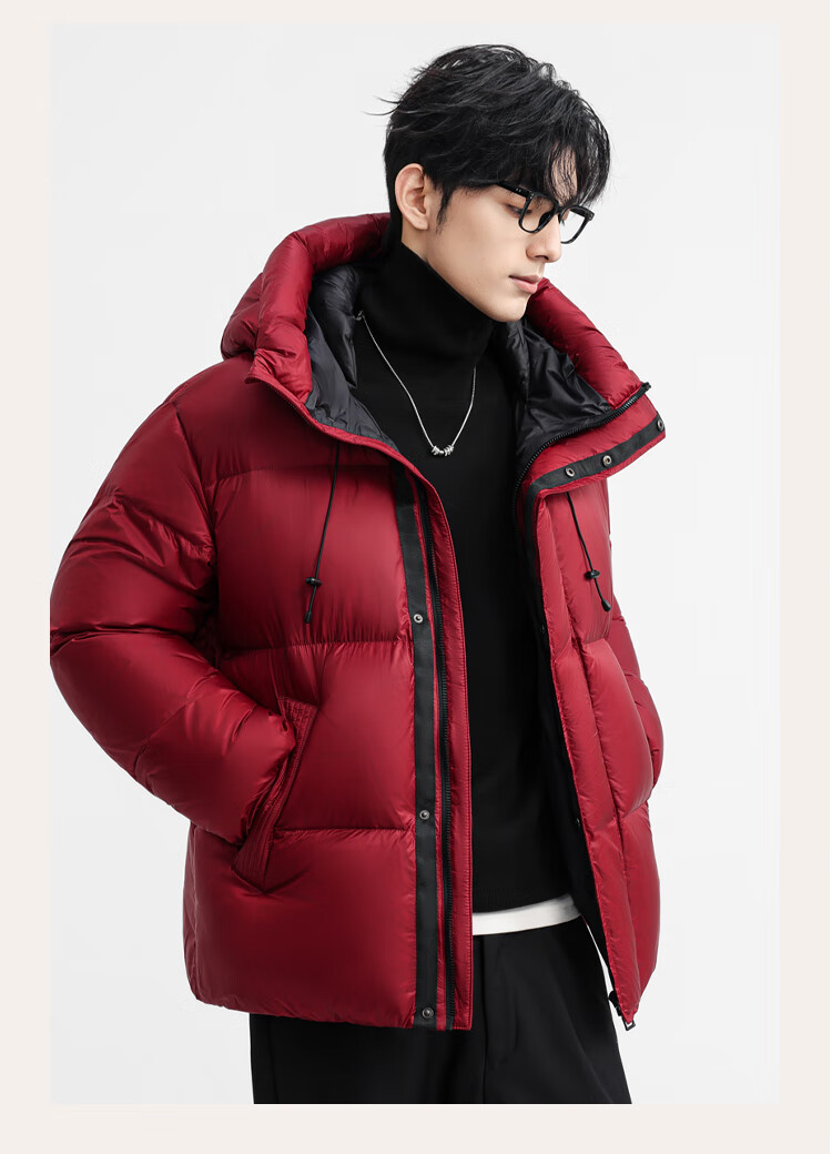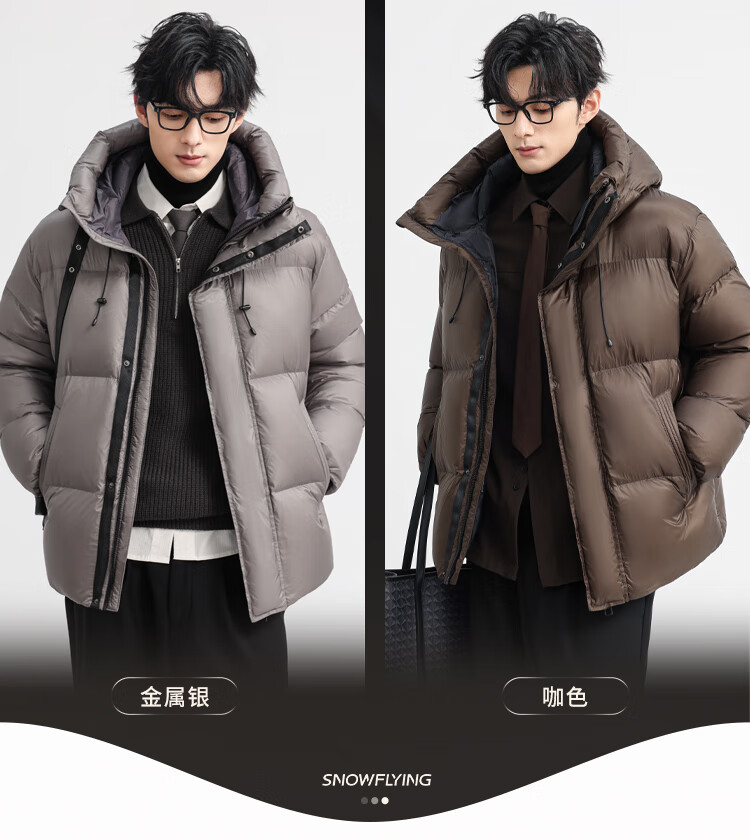 Flying in the Snow, Thick and Warm Down Jacket Men's Short Hooded Upgraded Fabric 90 Down Thick Warmth Deep Cold-Resistant Down