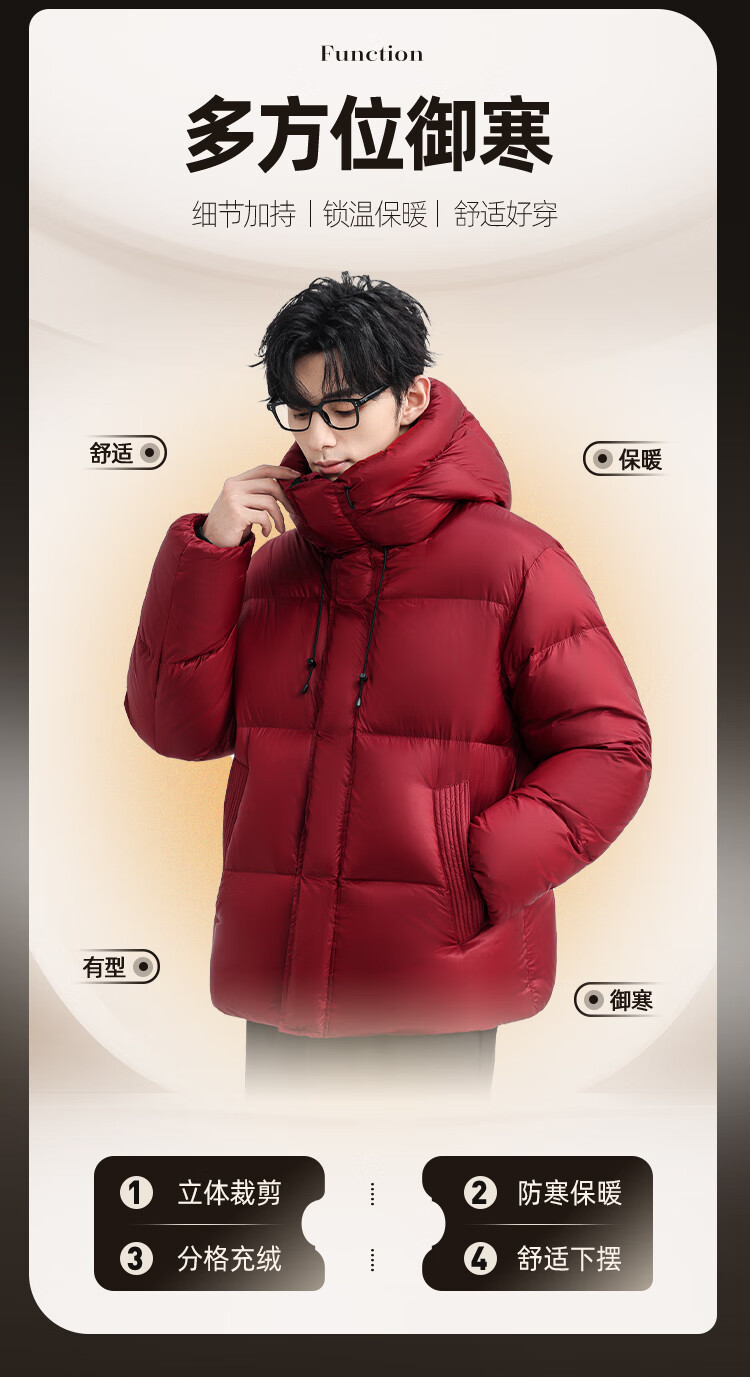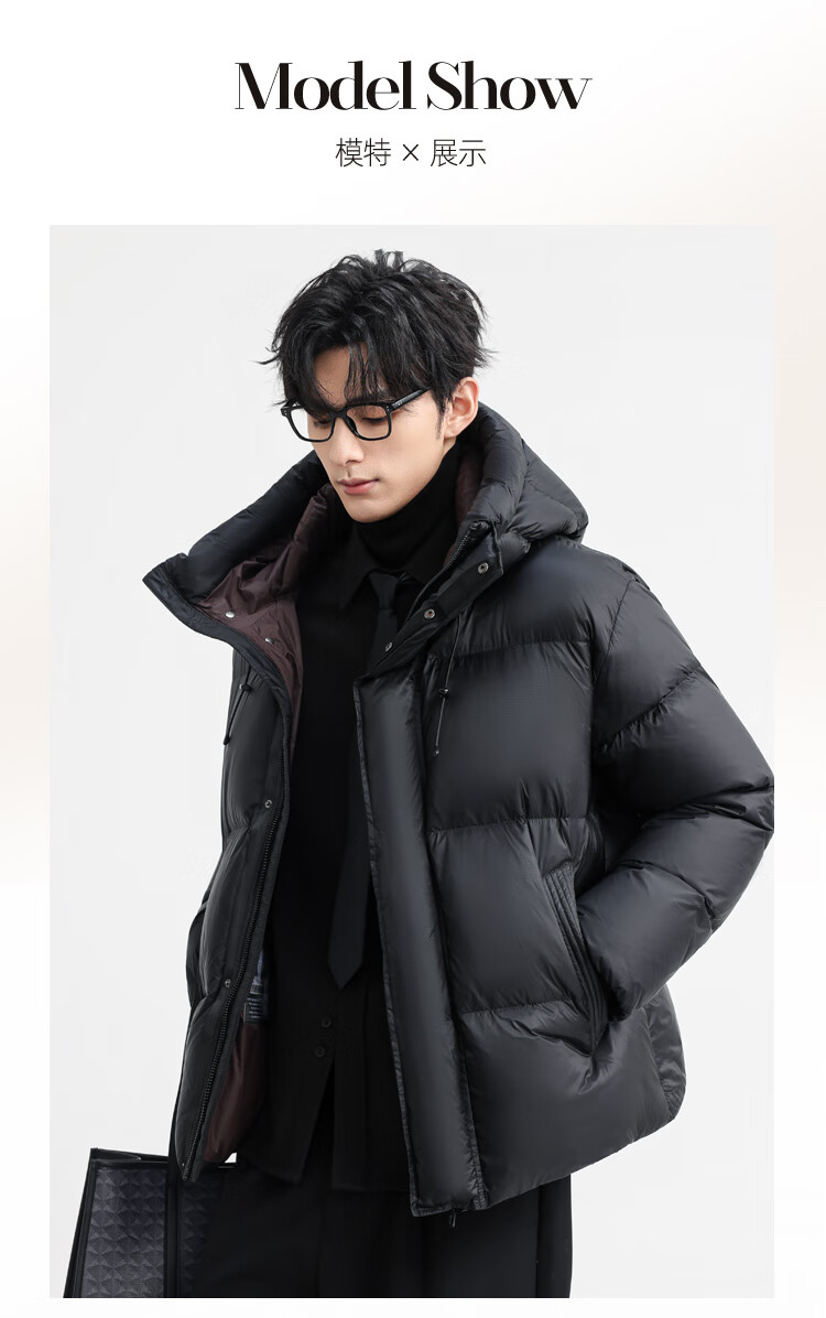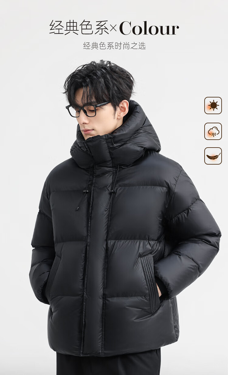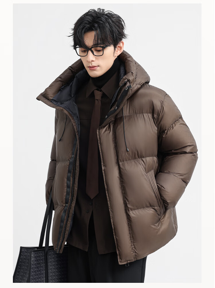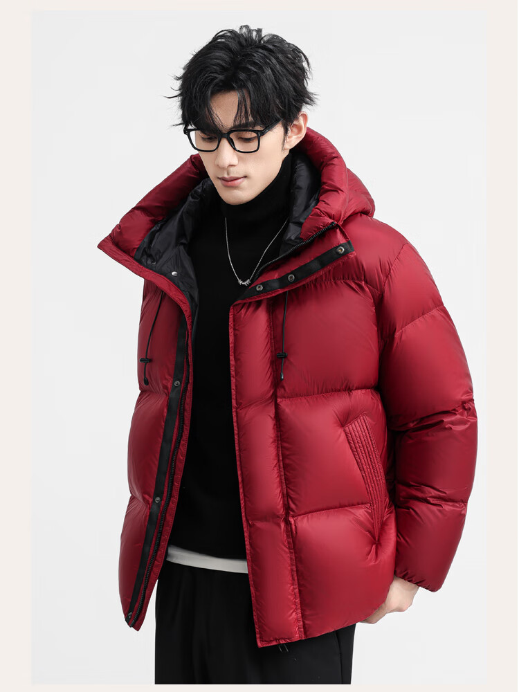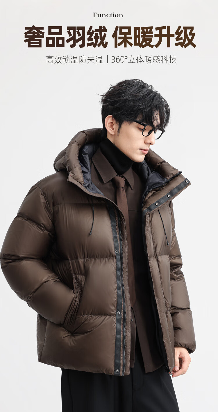 Flying in the Snow, Thick and Warm Down Jacket Men's Short Hooded Upgraded Fabric 90 Down Thick Warmth Deep Cold-Resistant Down