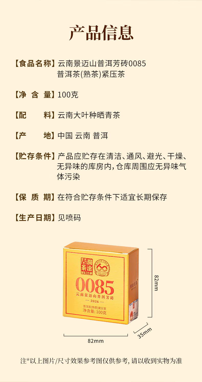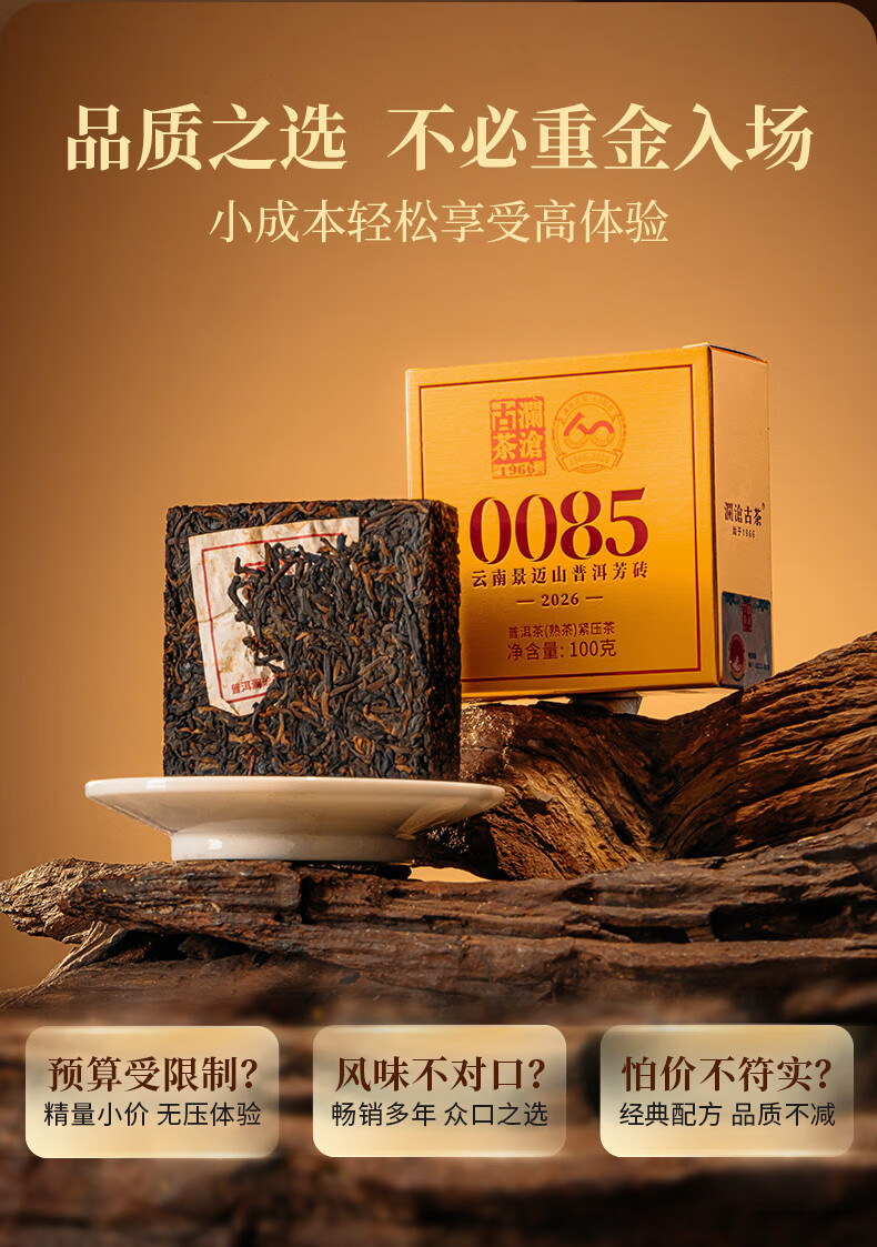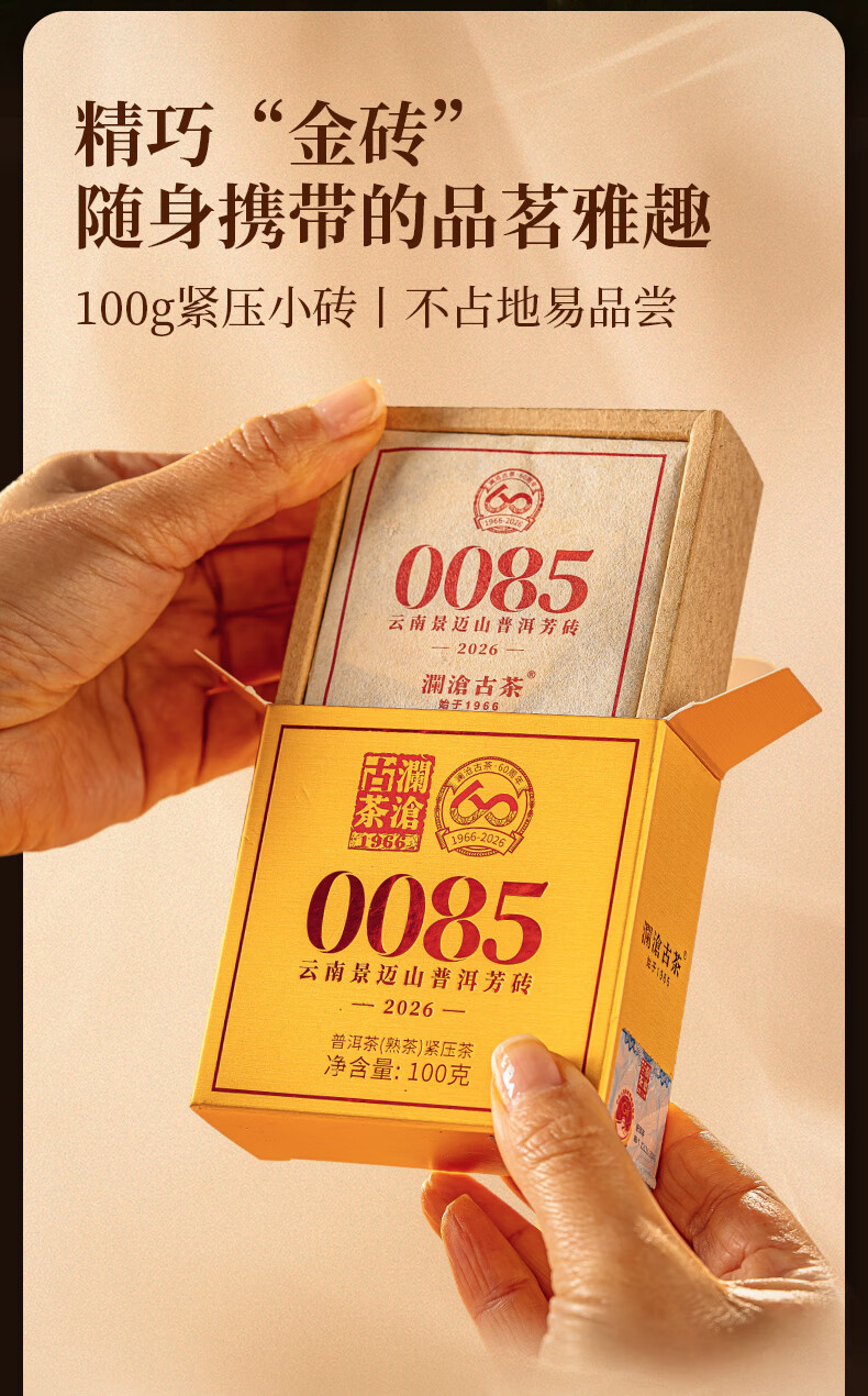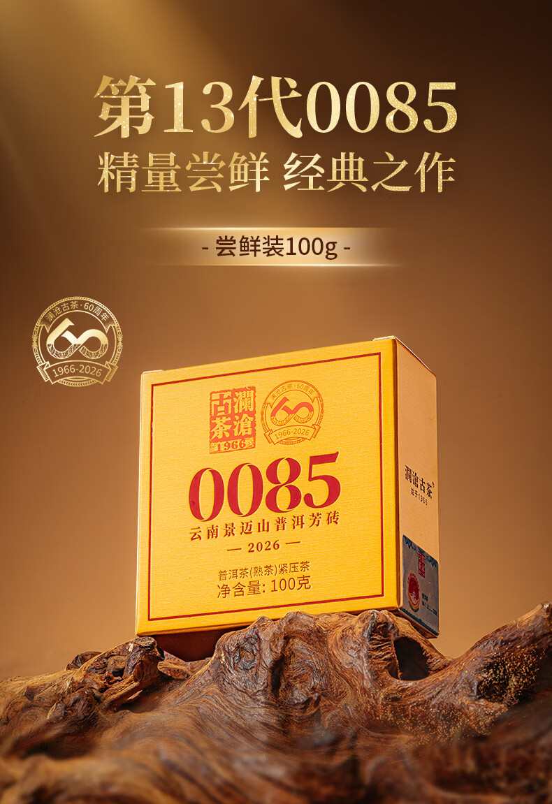 Lancang Ancient Tea Pu'er Tea Thirteenth Generation 0085 Jingmai Yunnan Pu'er Ripe Pu 100g 2026 Brick Tea Boxed
