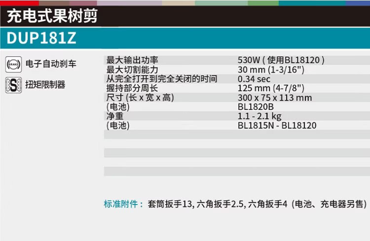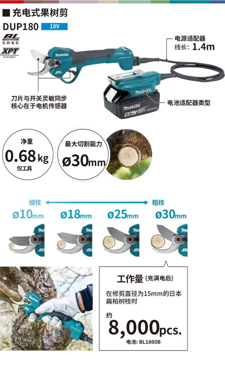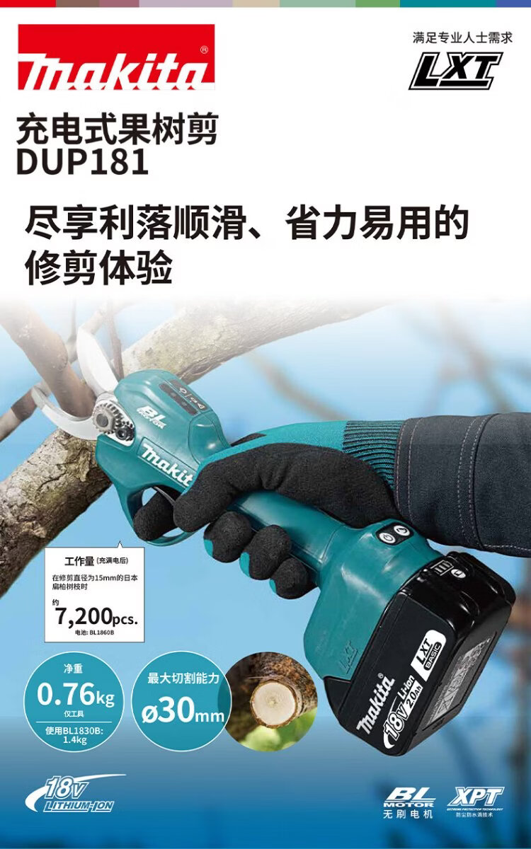 Makita (MAKITA) 18V rechargeable fruit tree scissors DUP181 fruit tree pruning shears 2.0AH thin and light battery, one charge and one charge