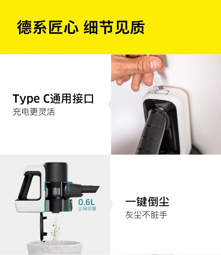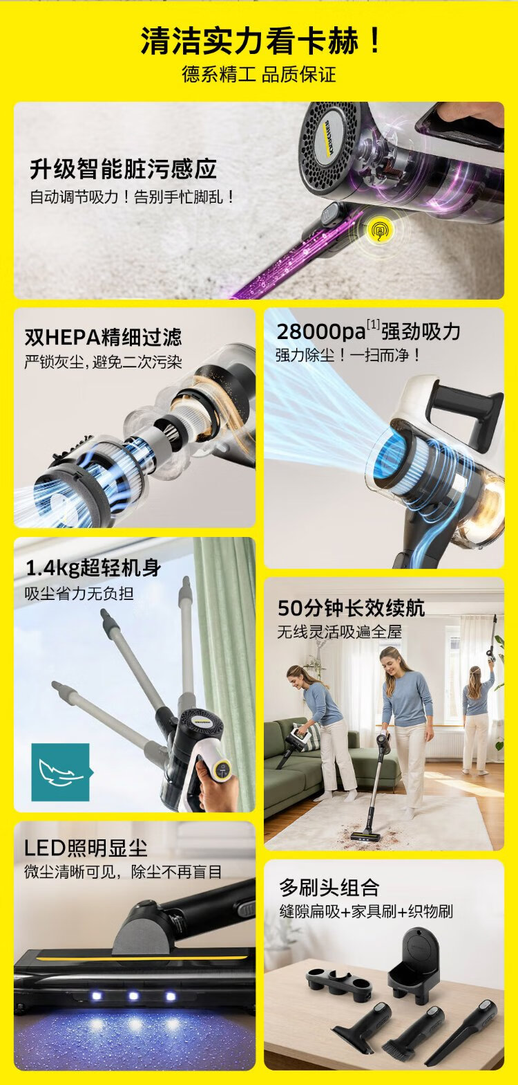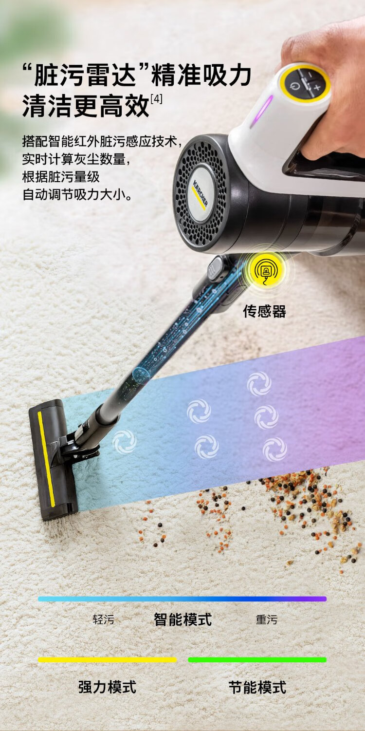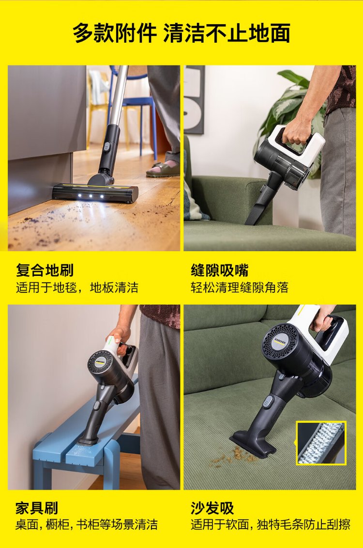 KARCHER, Germany, upgraded smart induction wireless handheld home and car dual-purpose vacuum cleaner, vertical high-suction mite removal, carpet pet hair, long battery life 180, lying flat KVA 3