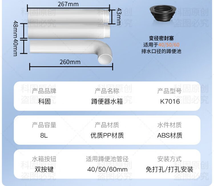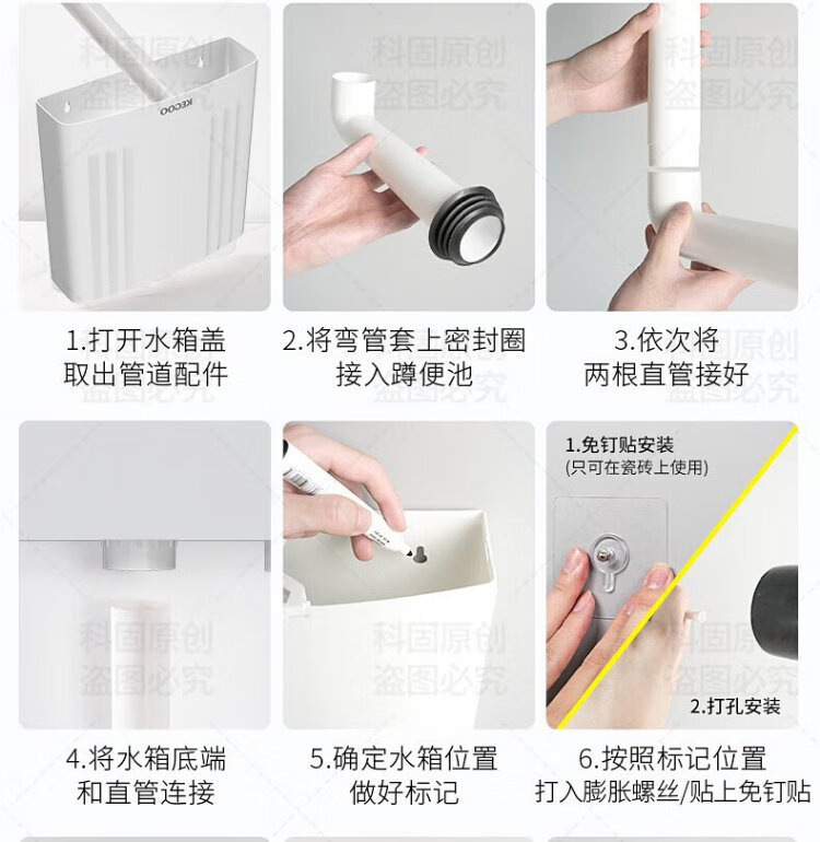 Kegoo (KEGOO) punch-free squat toilet flush tank flush toilet bathroom squat pit squat toilet accessories universal full set K7016