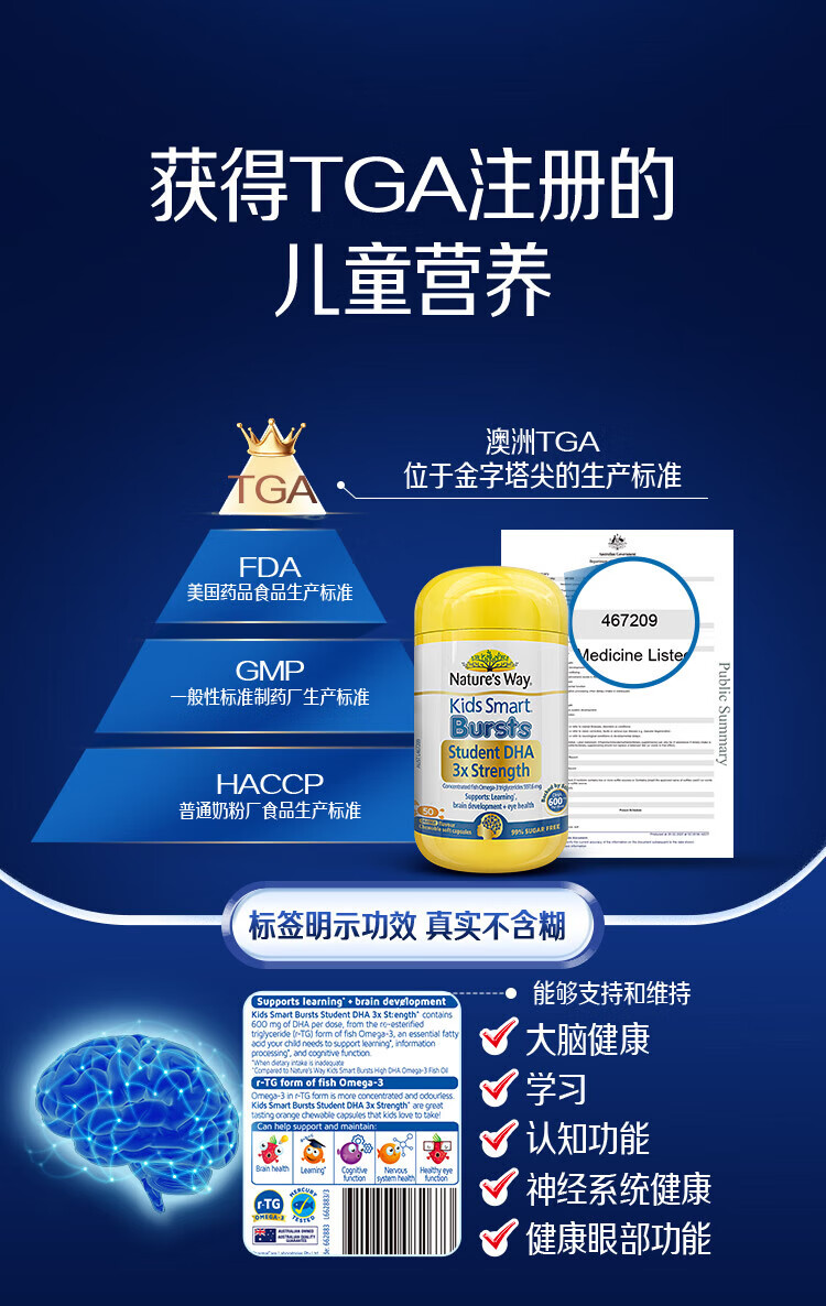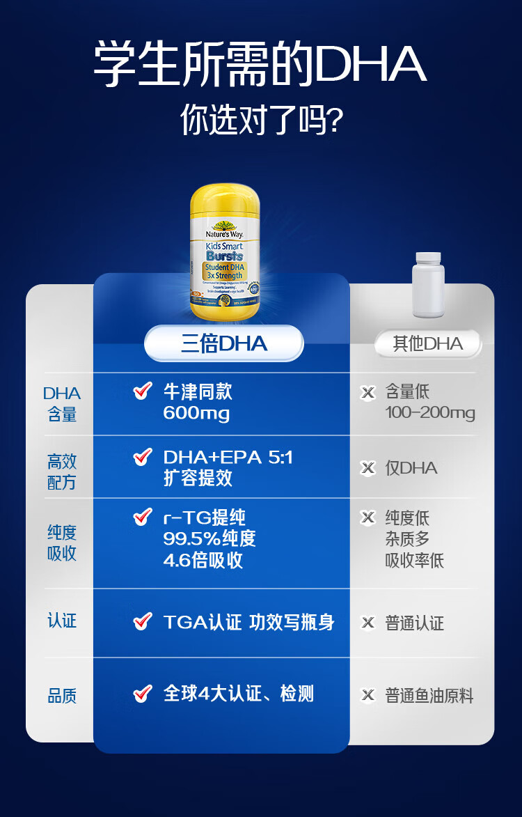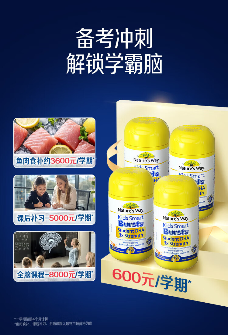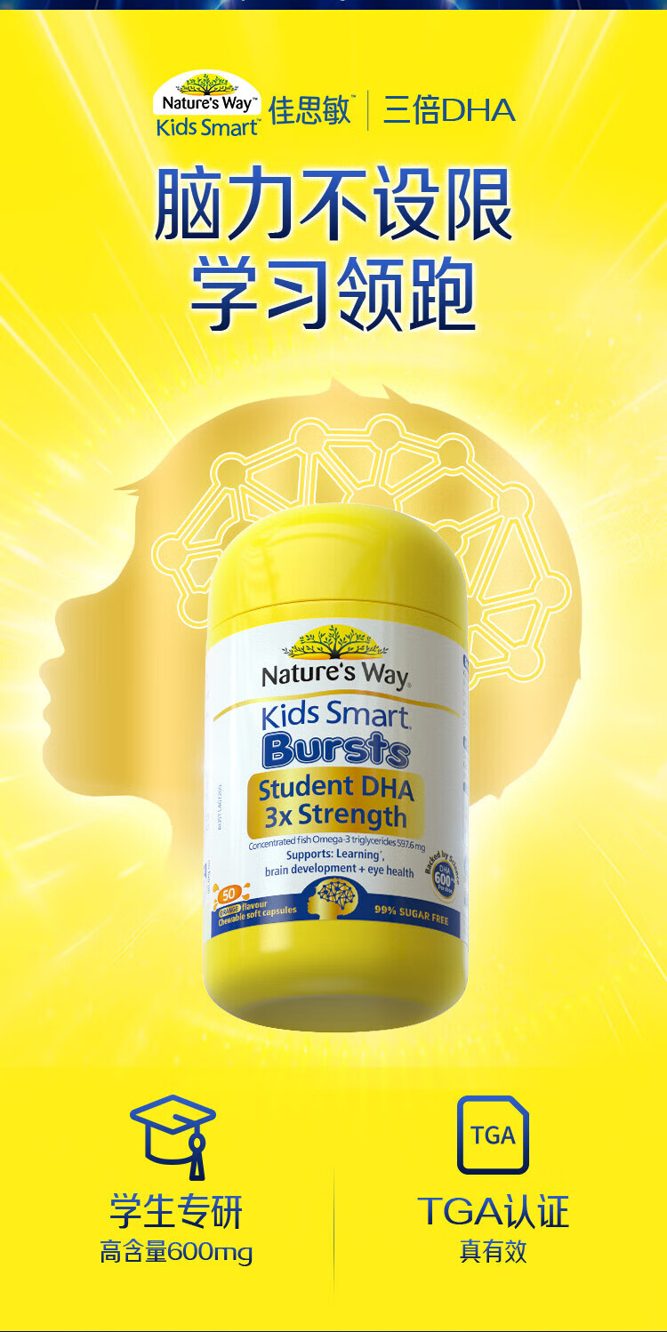 Nature's Way Student Triple DHA Children's Fish Oil Exam Preparation Teenagers 6-18 Years Old Brain Supplement Enhances Memory 50 Tablets 5 Bottles