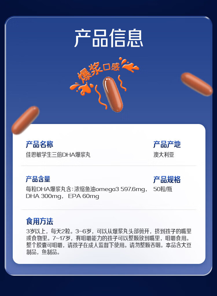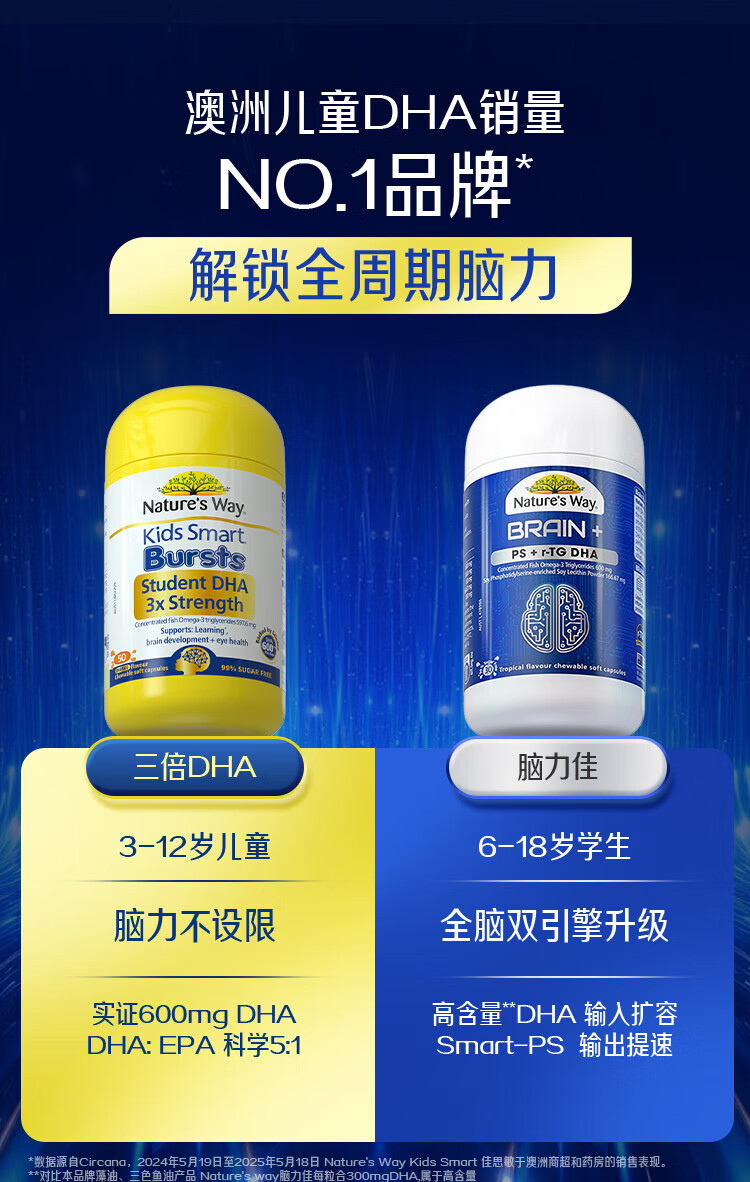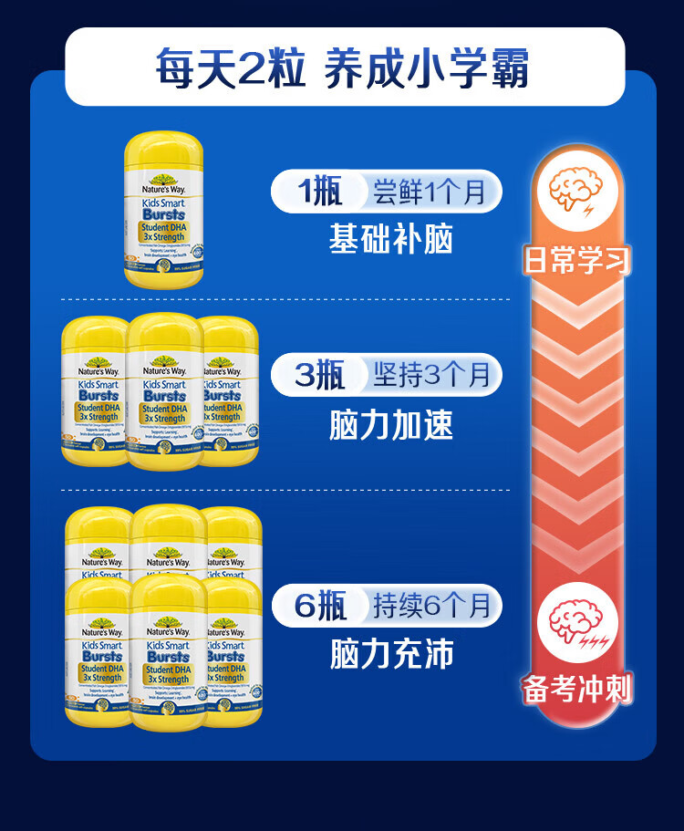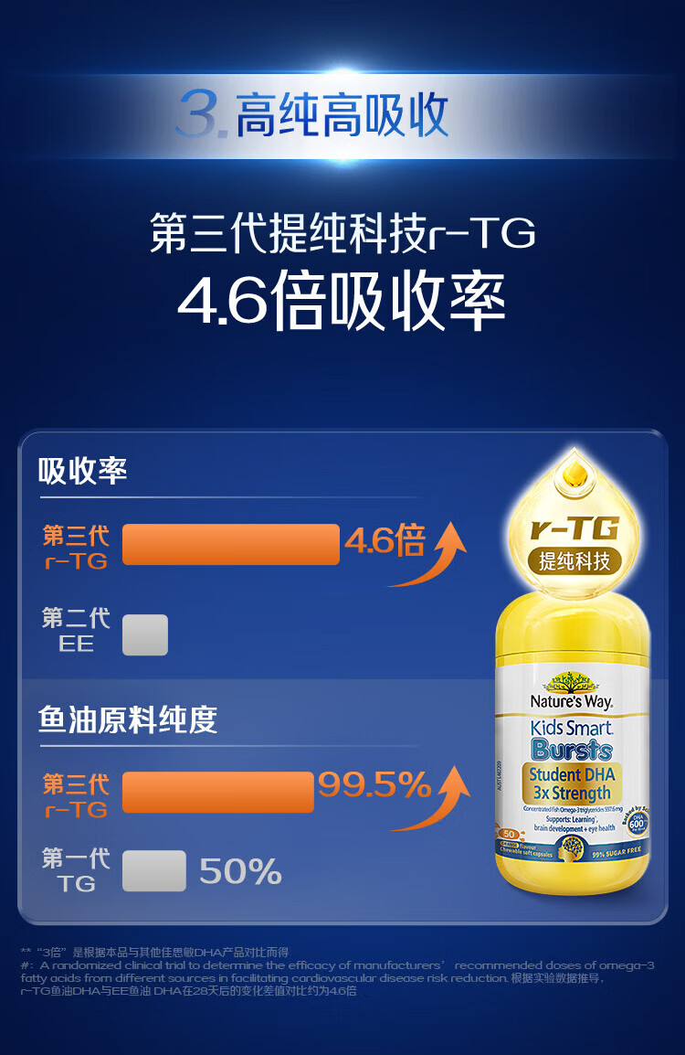 Nature's Way Student Triple DHA Children's Fish Oil Exam Preparation Teenagers 6-18 Years Old Brain Supplement Enhances Memory 50 Tablets 5 Bottles