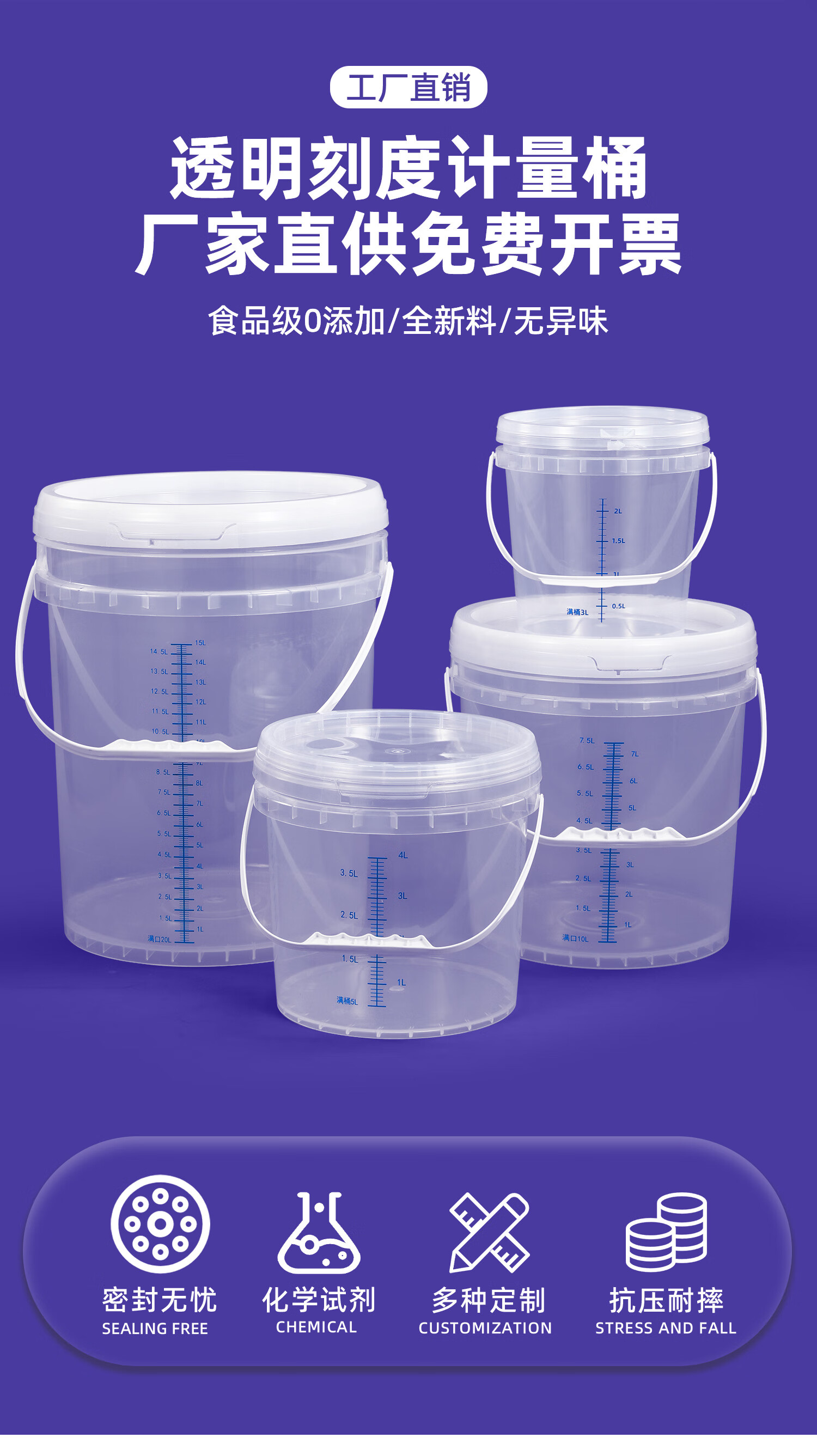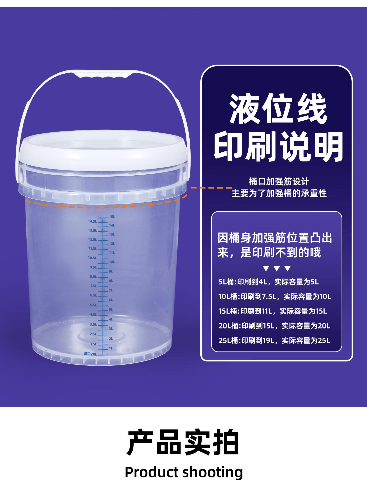 Metasequoia 10L transparent thickened plastic bucket with scale line, food grade sealed scale bucket, round bucket, sauerkraut bucket, sauce bucket with lid, large bucket, empty bucket