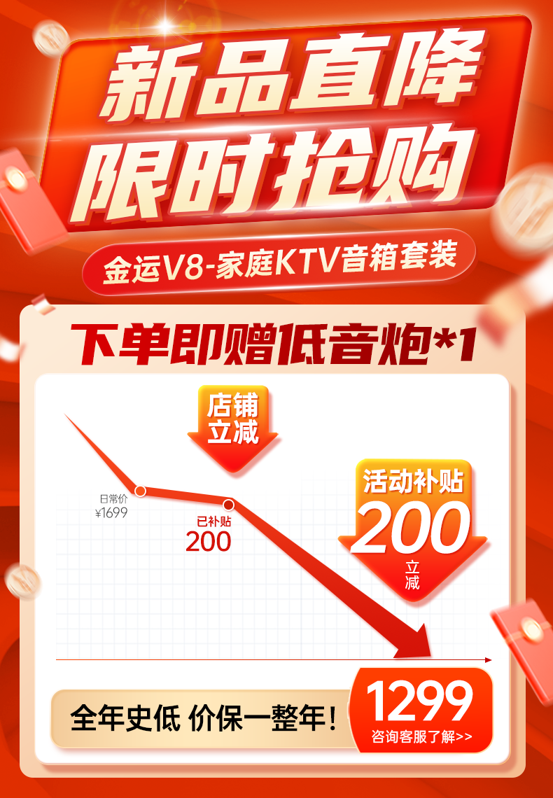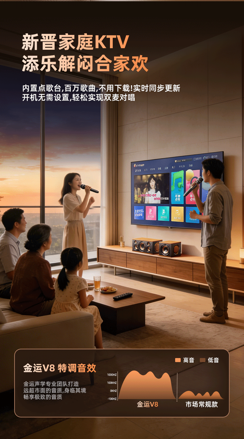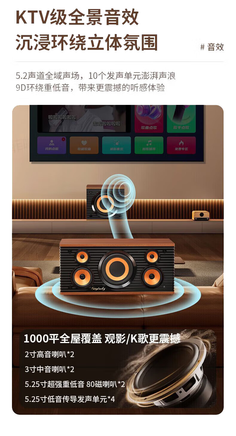 KINYO buy one get one free home KTV singing complete equipment K song microphone speaker all-in-one intelligent karaoke machine wireless microphone connected to TV karaoke Bluetooth audio V8
