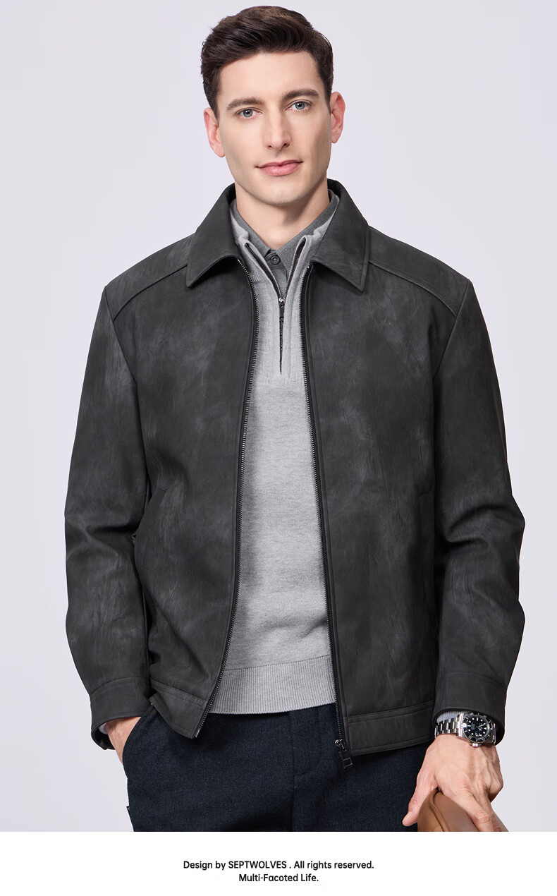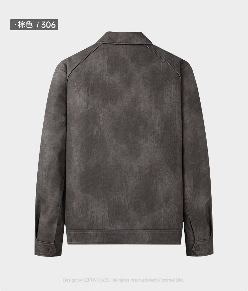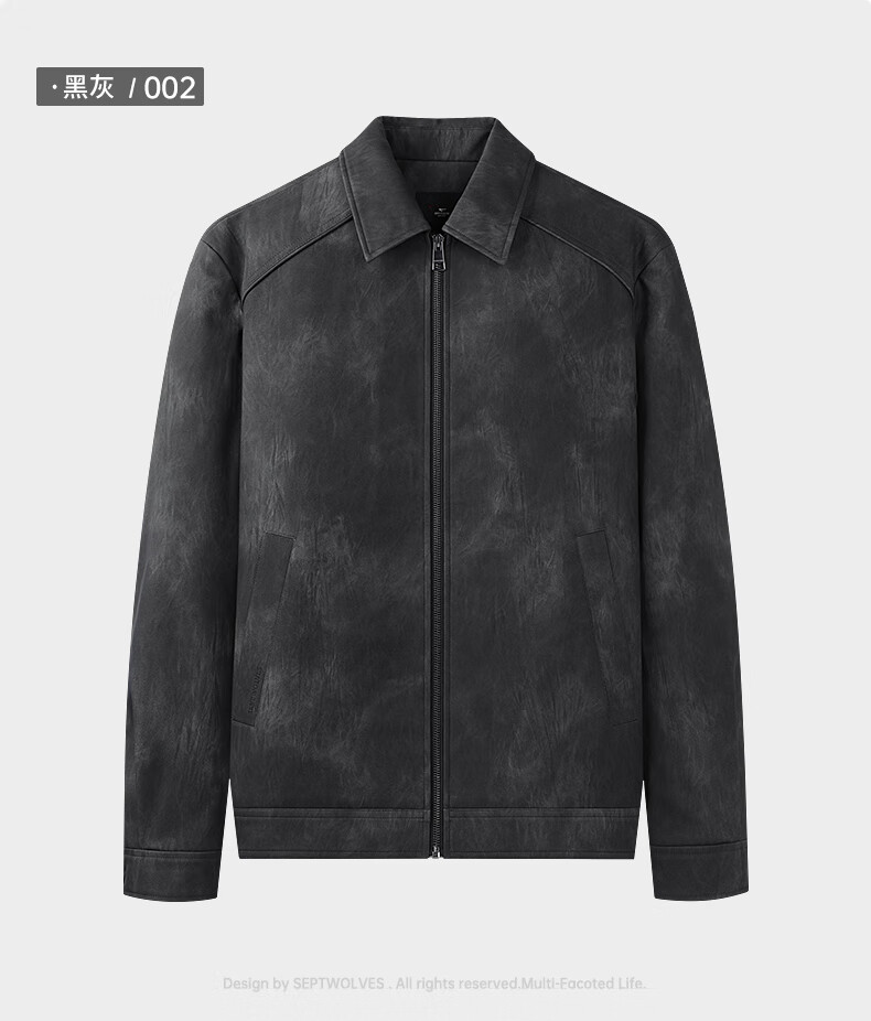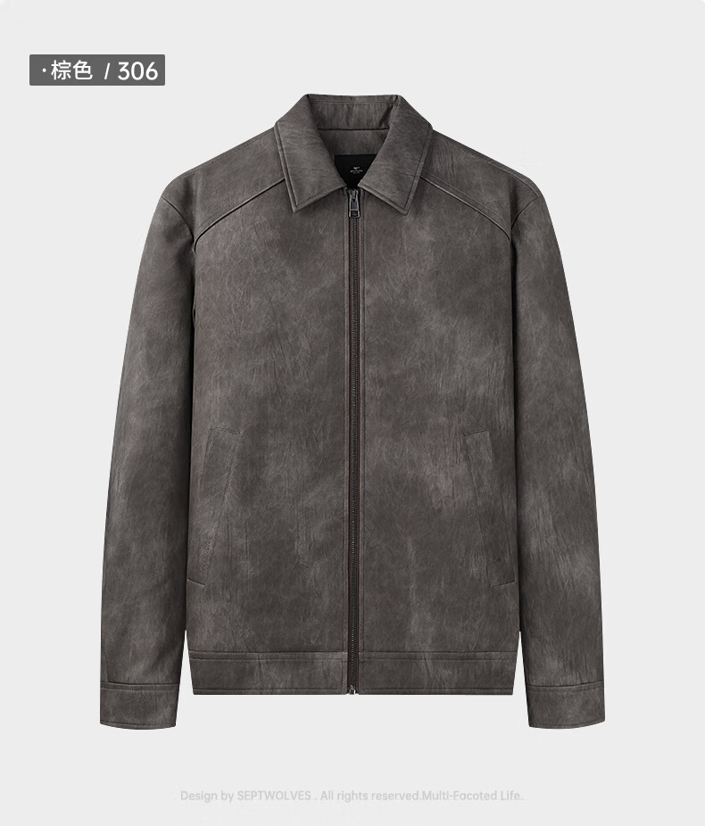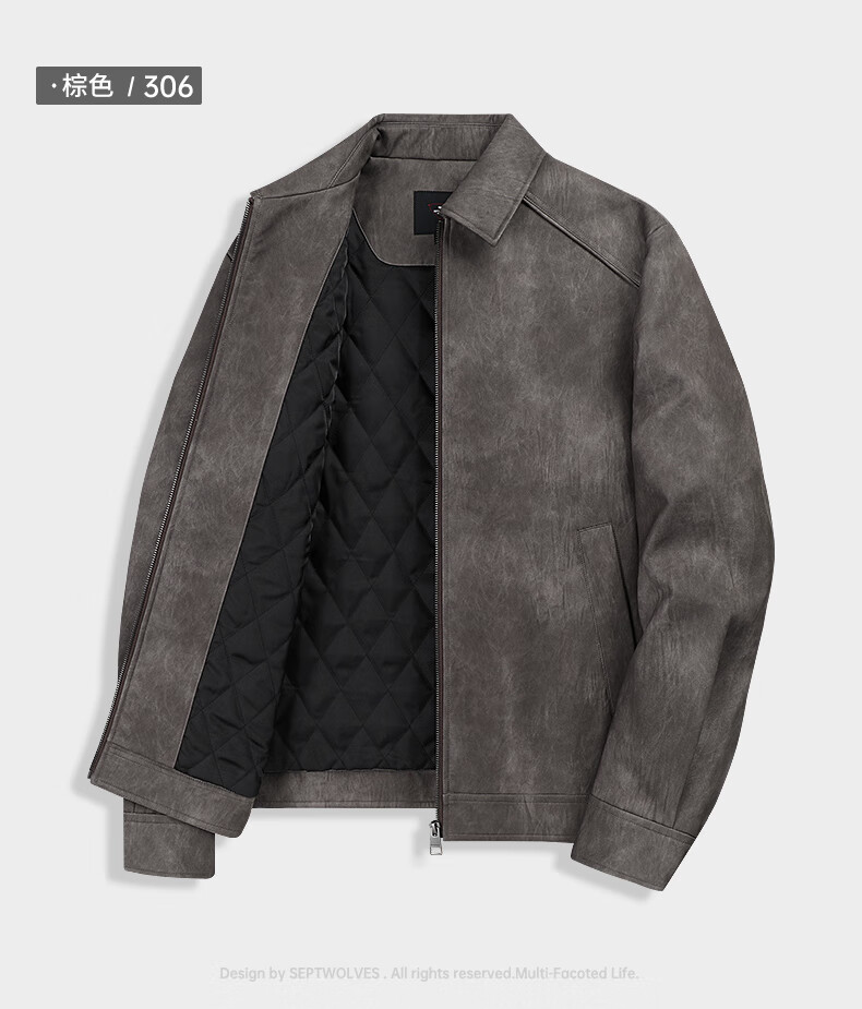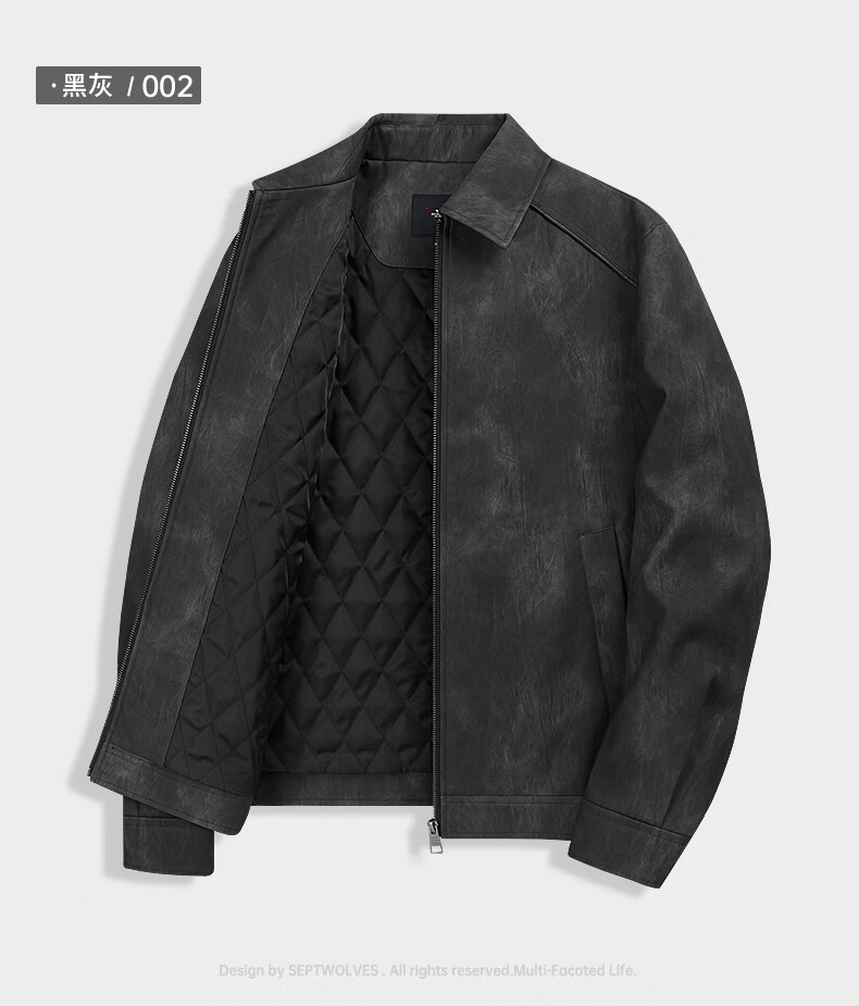 Septwolves jacket men's jacket PU leather lapel autumn and winter quilted thickened windproof warm skin-friendly and comfortable men's clothing