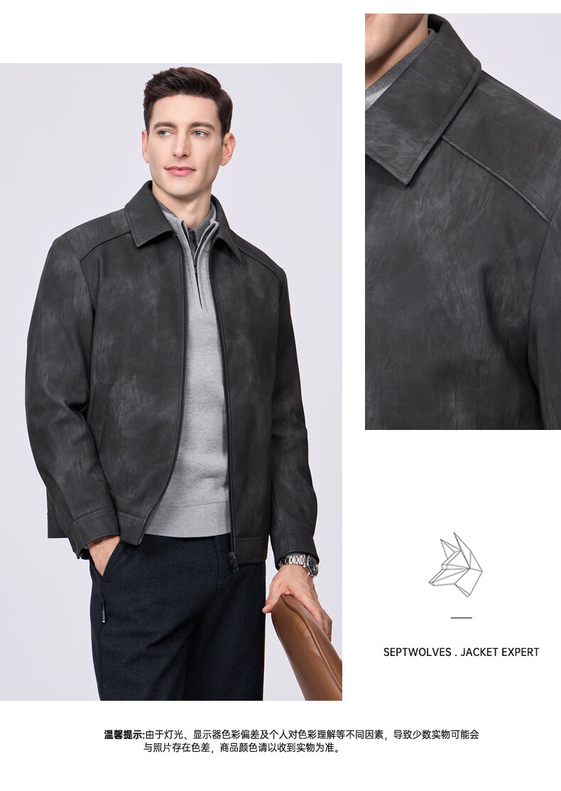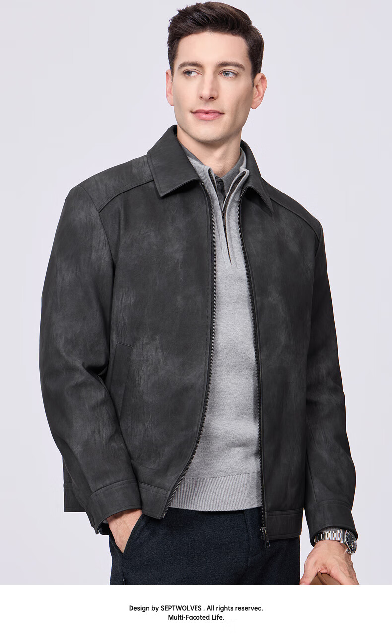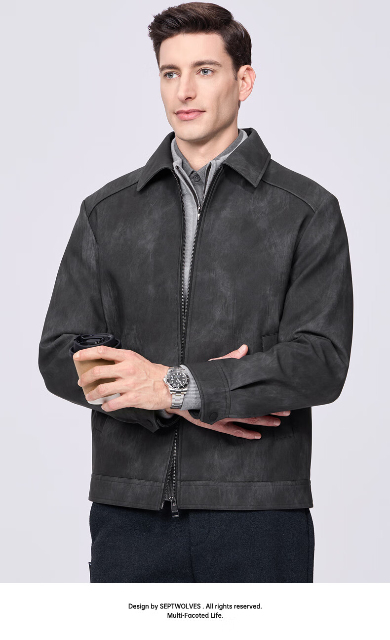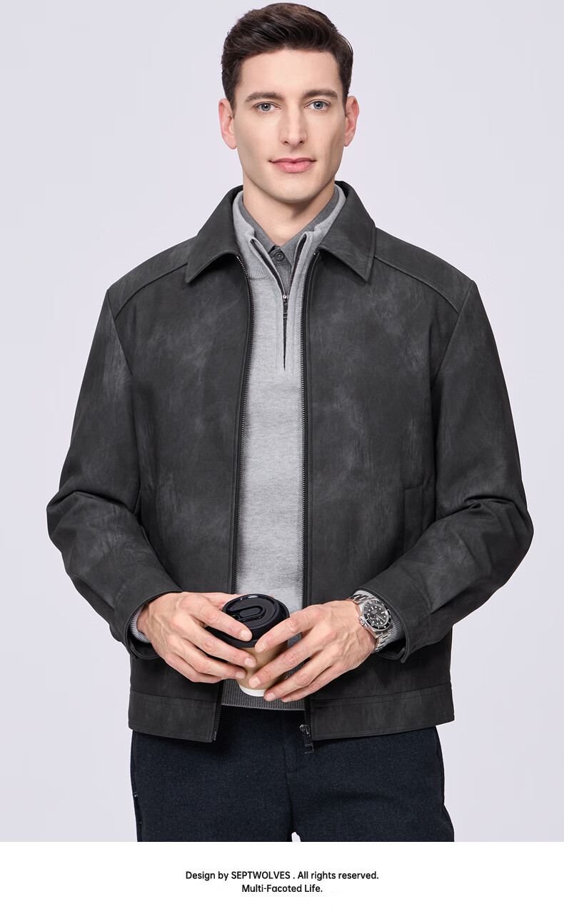 Septwolves jacket men's jacket PU leather lapel autumn and winter quilted thickened windproof warm skin-friendly and comfortable men's clothing