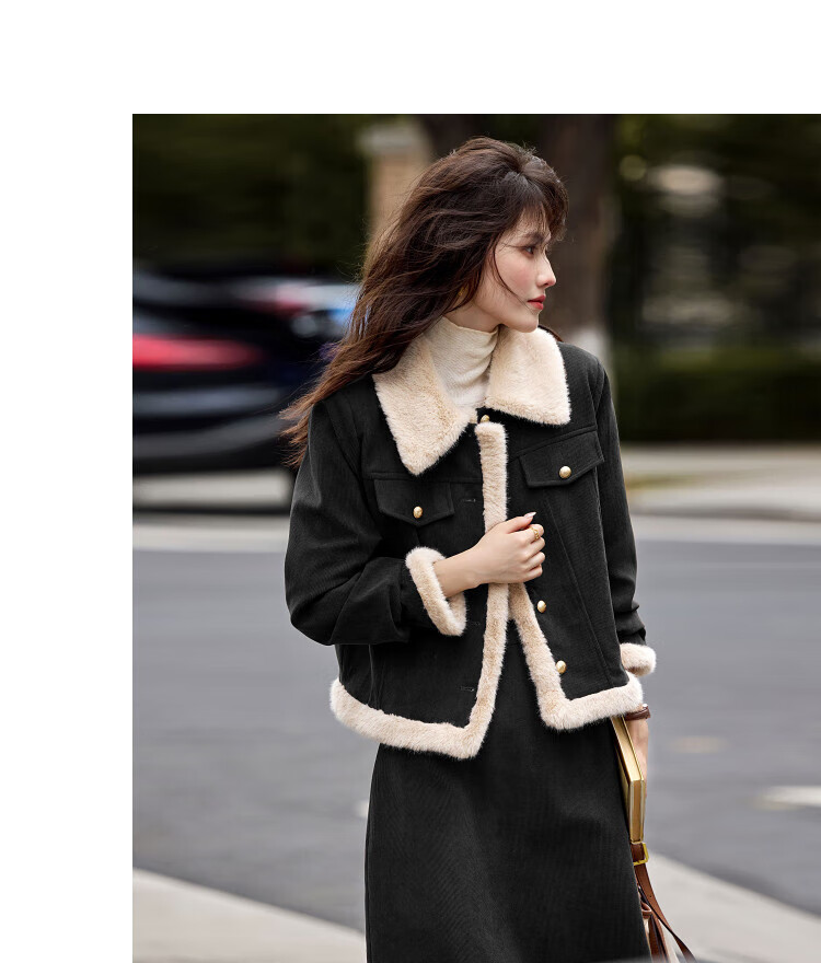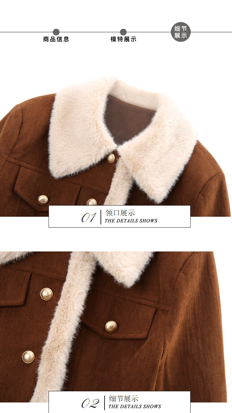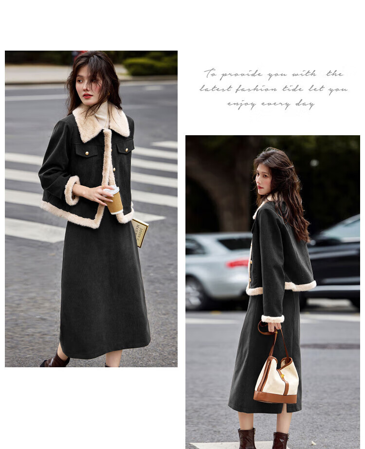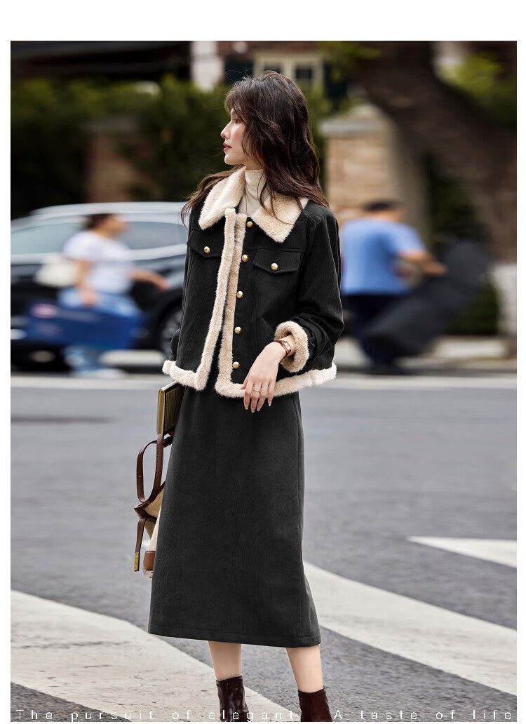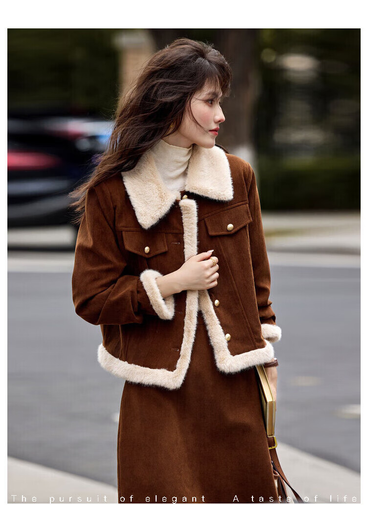 Awakening Paradise Winter Retro Modern Style Spliced Button Lapel Jacket Skirt Commuting Two-piece Suit Women Brown M