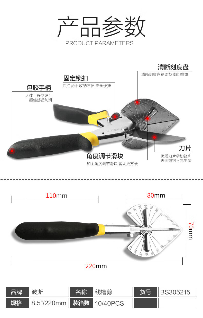 Persian (BOSI) wire trough scissors angle scissors electrician wire trough scissors woodworking angle buckle scissors 8.5 inches BS305215