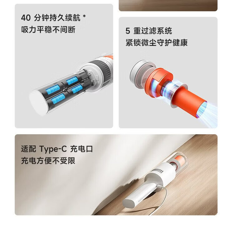 Mijia Xiaomi Lightweight Vacuum Cleaner Big New Product in December Wireless Handheld Car Household Vacuum Cleaner Large Suction Power and Long Battery Life Portable and Detachable Cat Hair Sucking Ultra-light Host