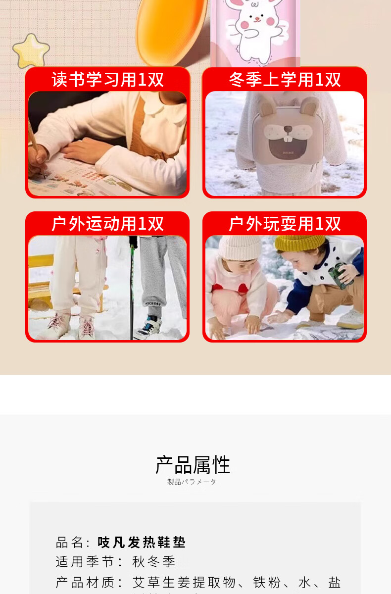 Zhifan Japanese children's heating insoles 12-hour heating self-heating foot warmers winter men and women constant temperature baby new style