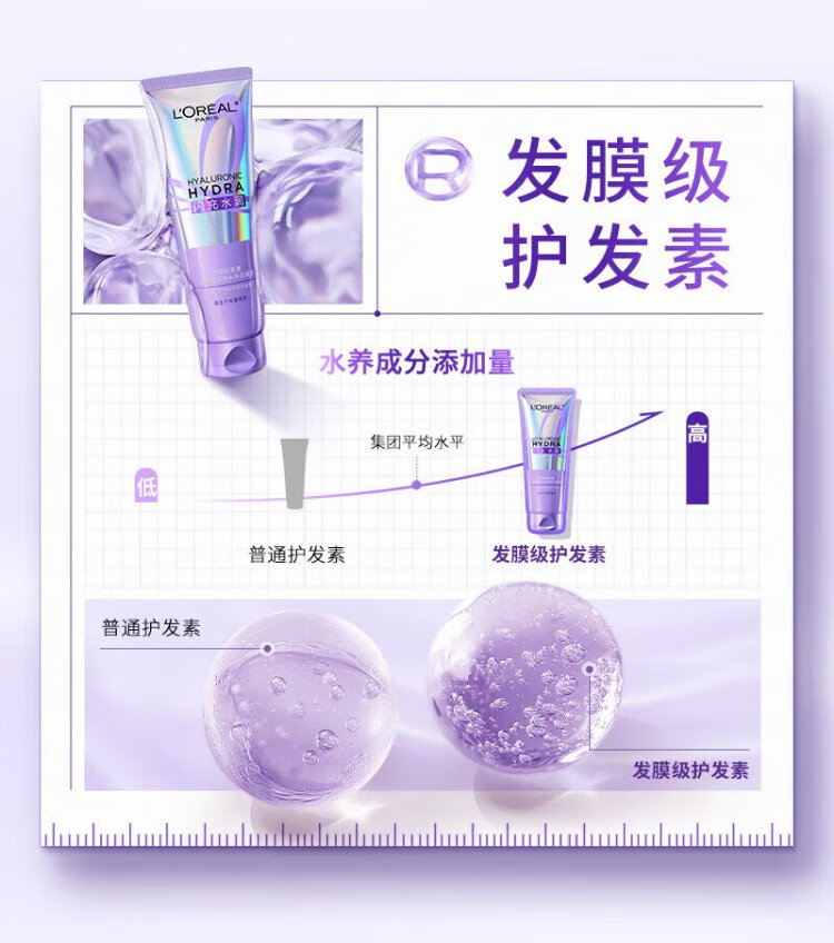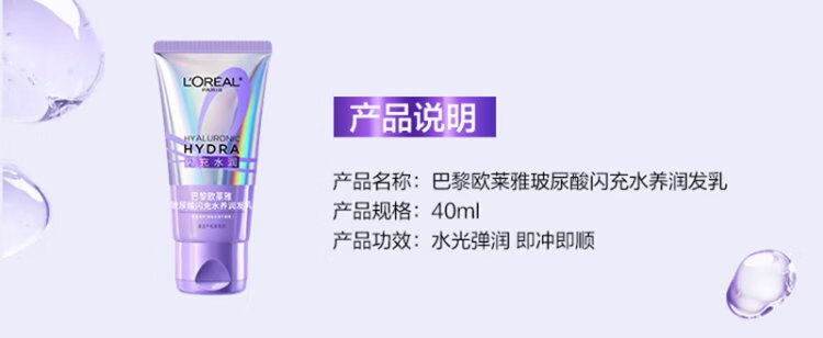 L'Oreal Hyaluronic Acid Flash-Filled Hydrating Conditioner Hair Mask Grade Nourishing, Smoothing and Repairing 40ml*3 On Clearance
