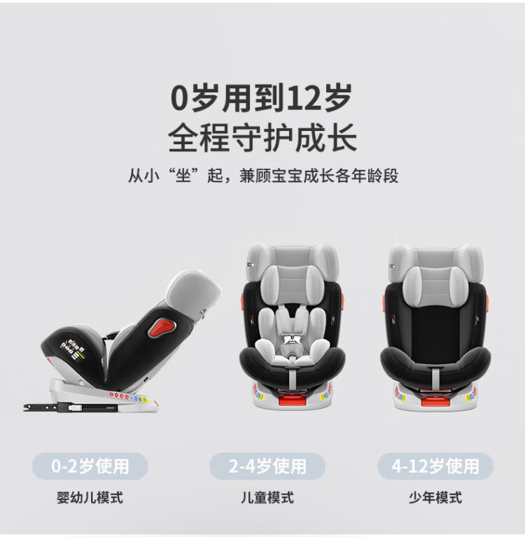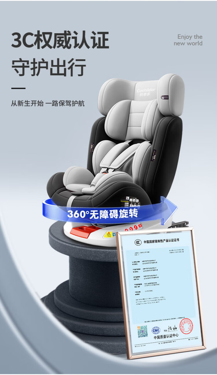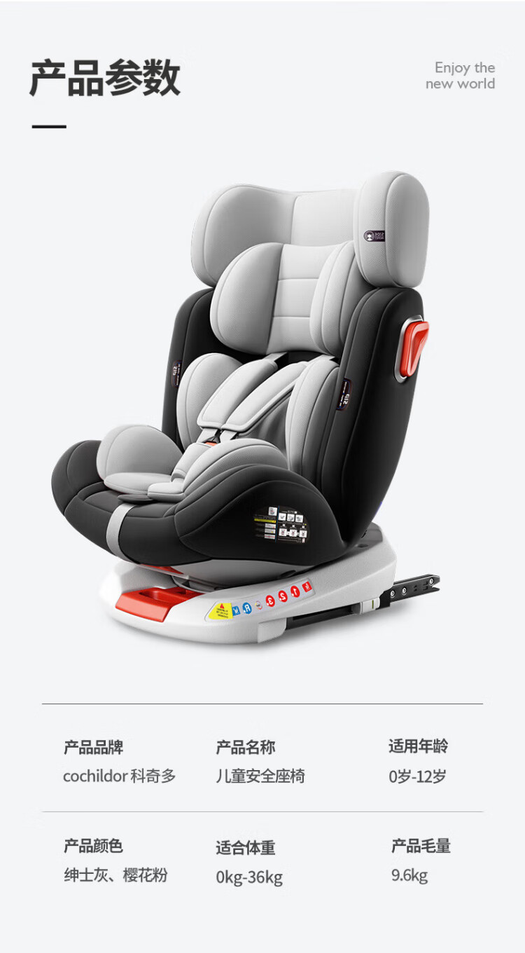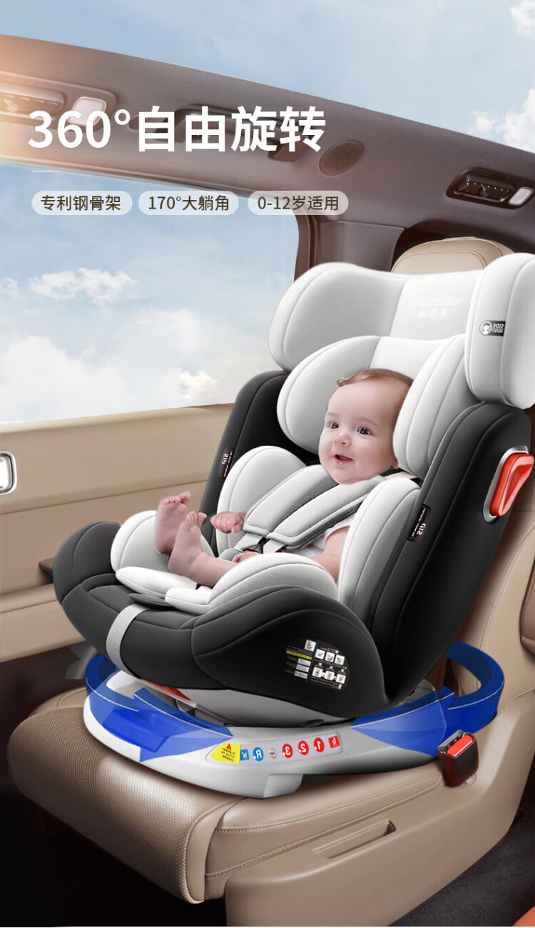 Cochildor Cochildor child safety seat 0-4-12 years old is suitable for babies to sit and recline in cars with 360-degree rotation