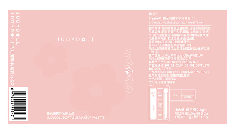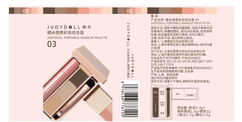 Judydoll Palm Box Mini Palette Eyeshadow Palette Makeup Comprehensive Palette New Year's Gift Commuting 03 Big Land Small Lip Glaze Edition