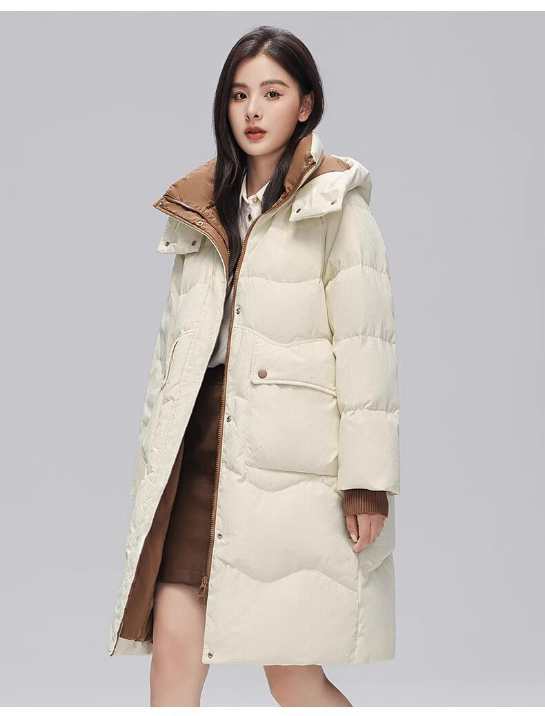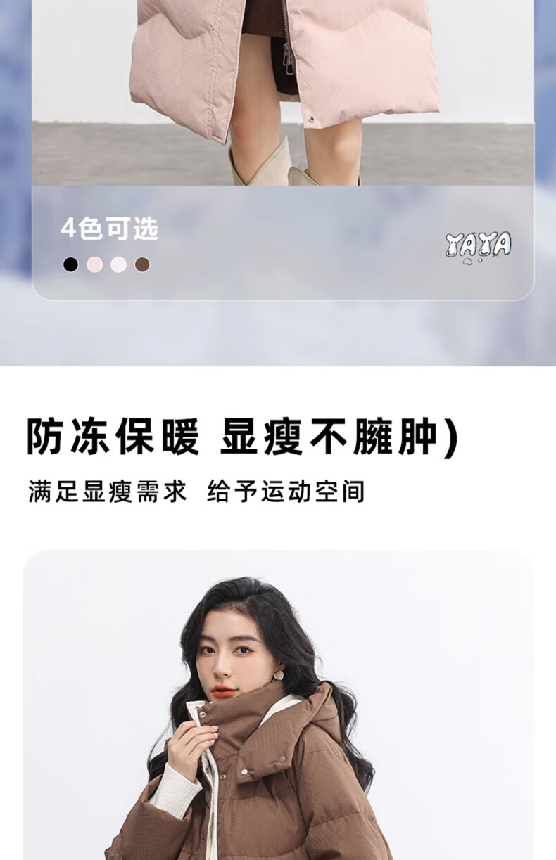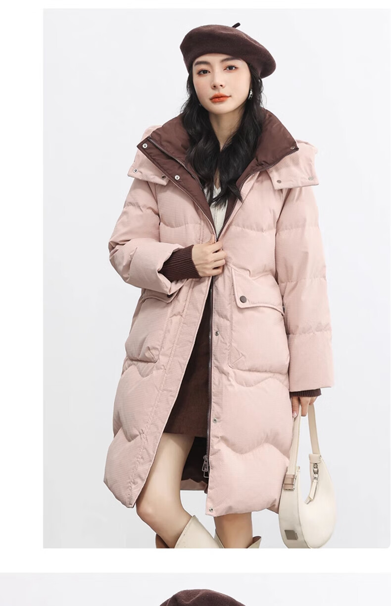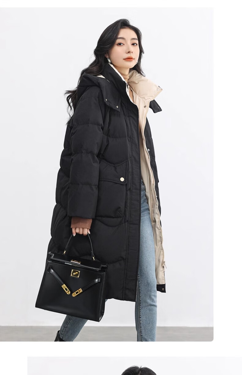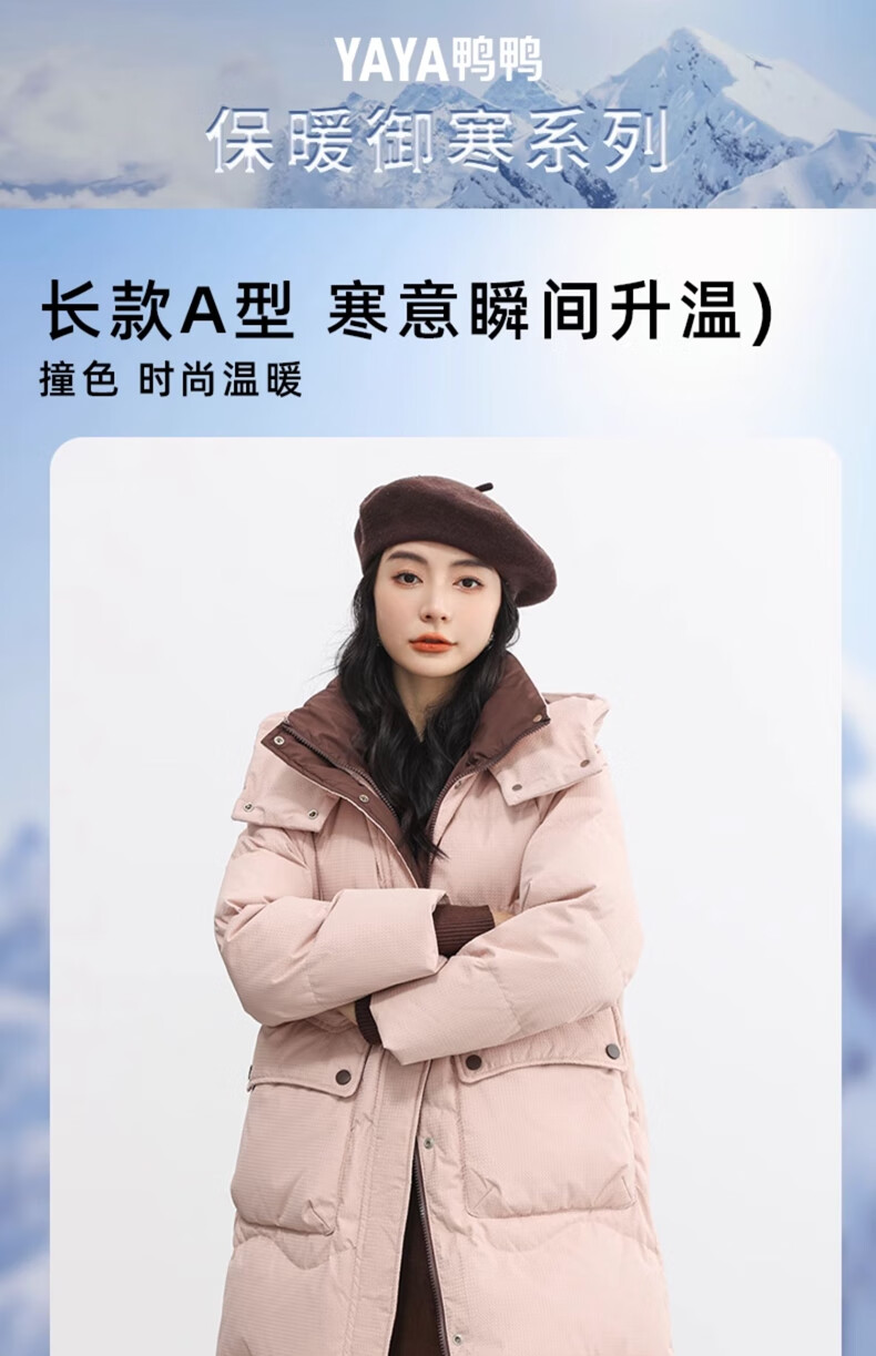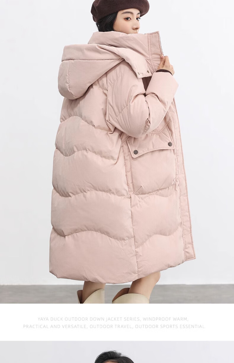 YAYA Down Jacket Women's Medium Long 2025 Winter New Fashion Casual Thickened Hooded Korean Version Contrast Color Versatile Jacket