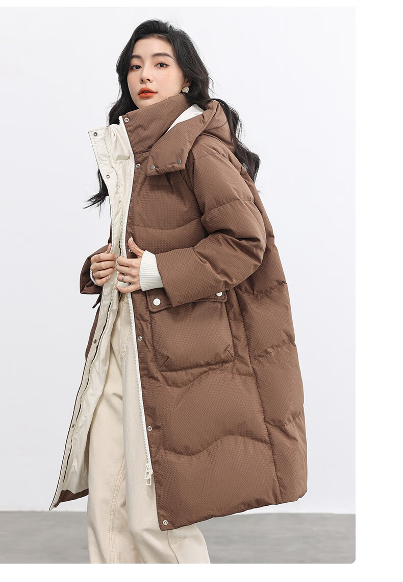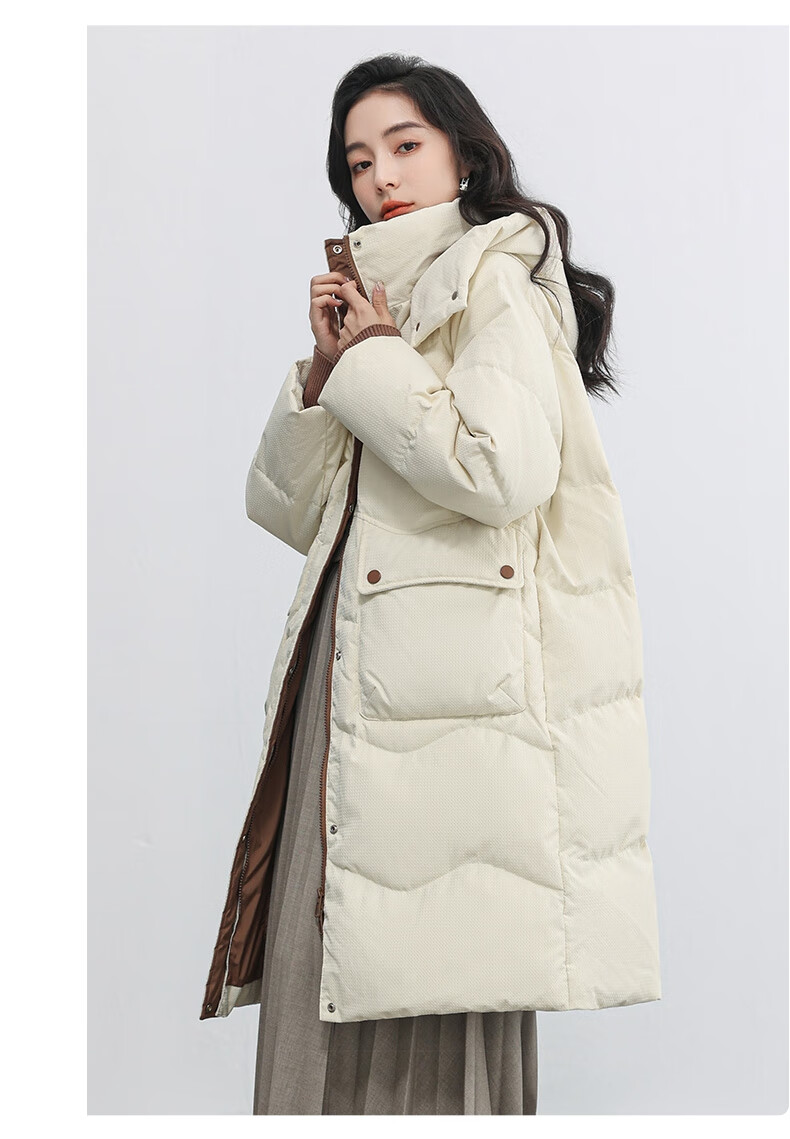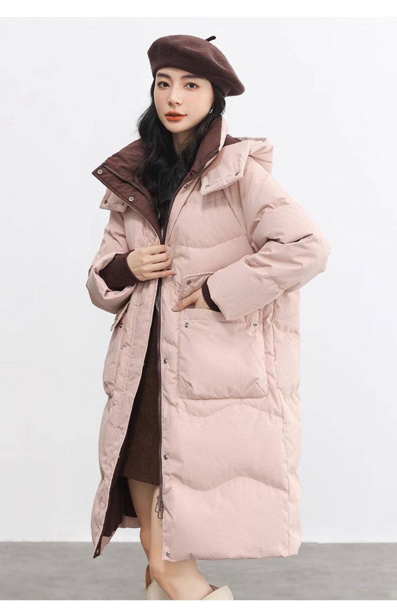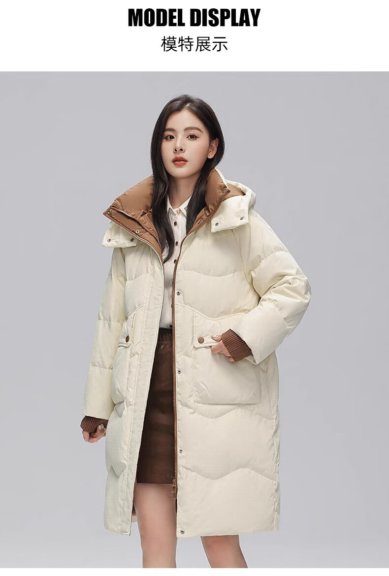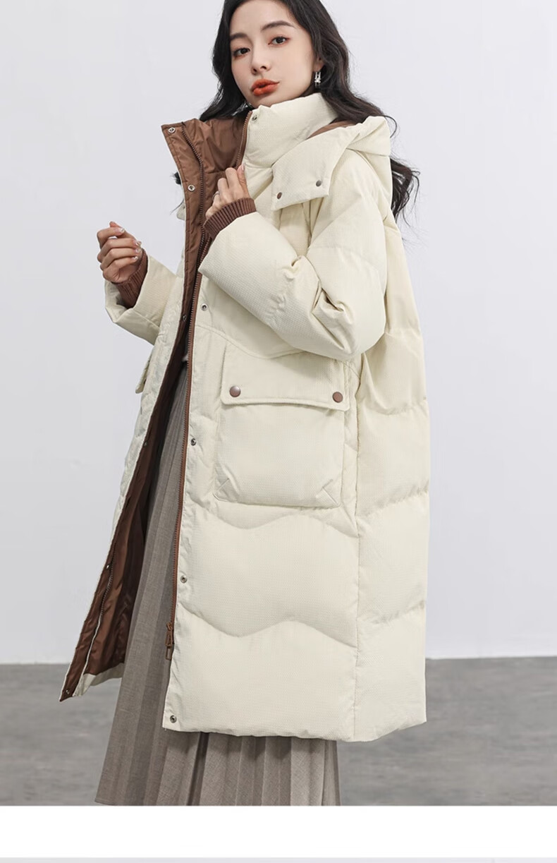 YAYA Down Jacket Women's Medium Long 2025 Winter New Fashion Casual Thickened Hooded Korean Version Contrast Color Versatile Jacket
