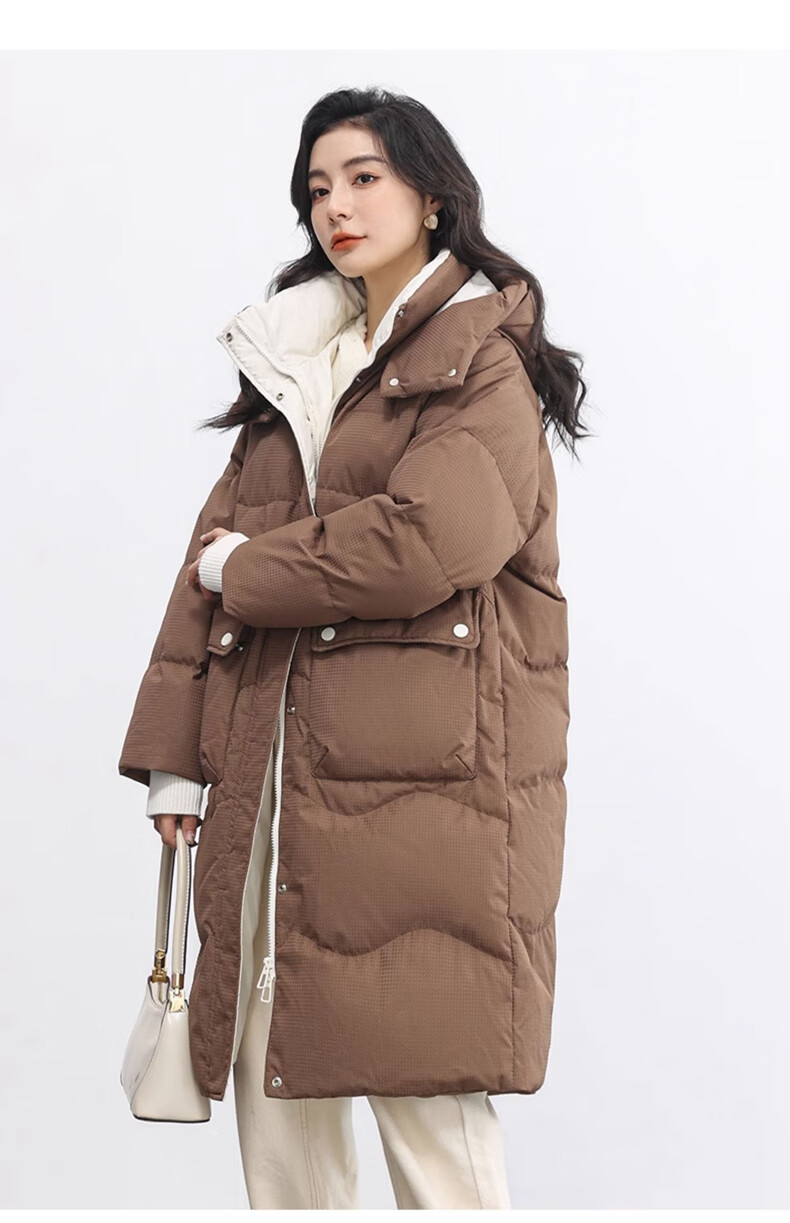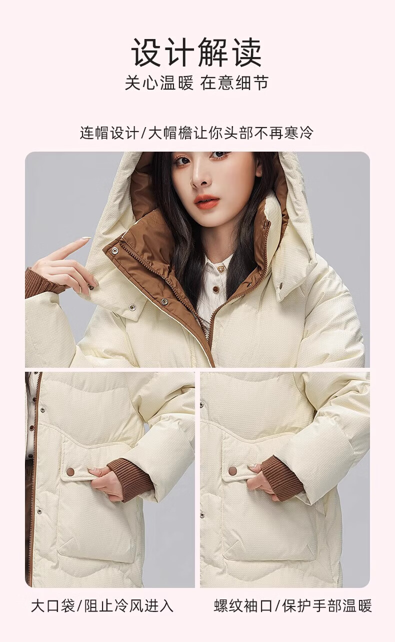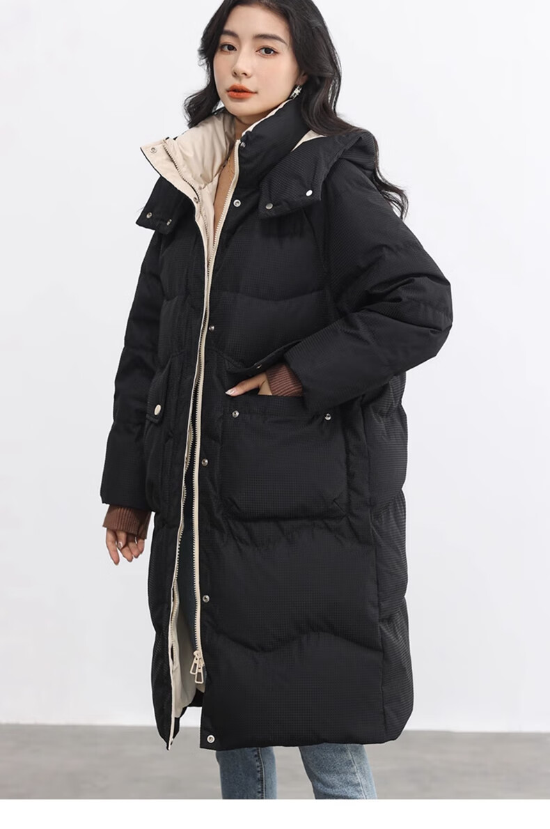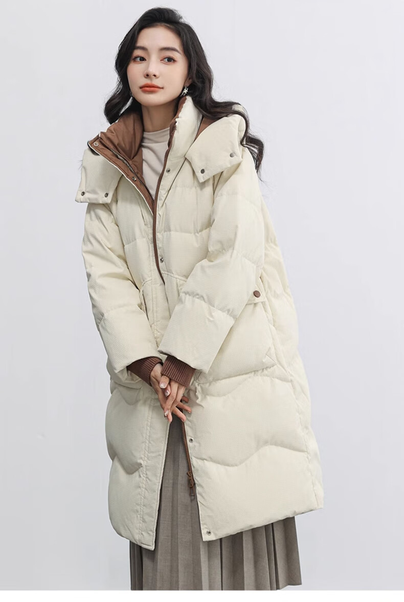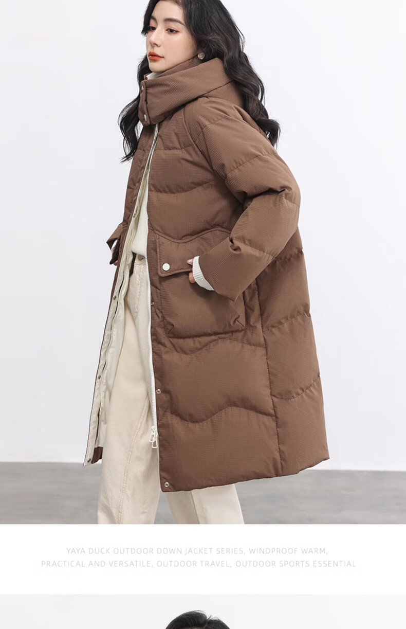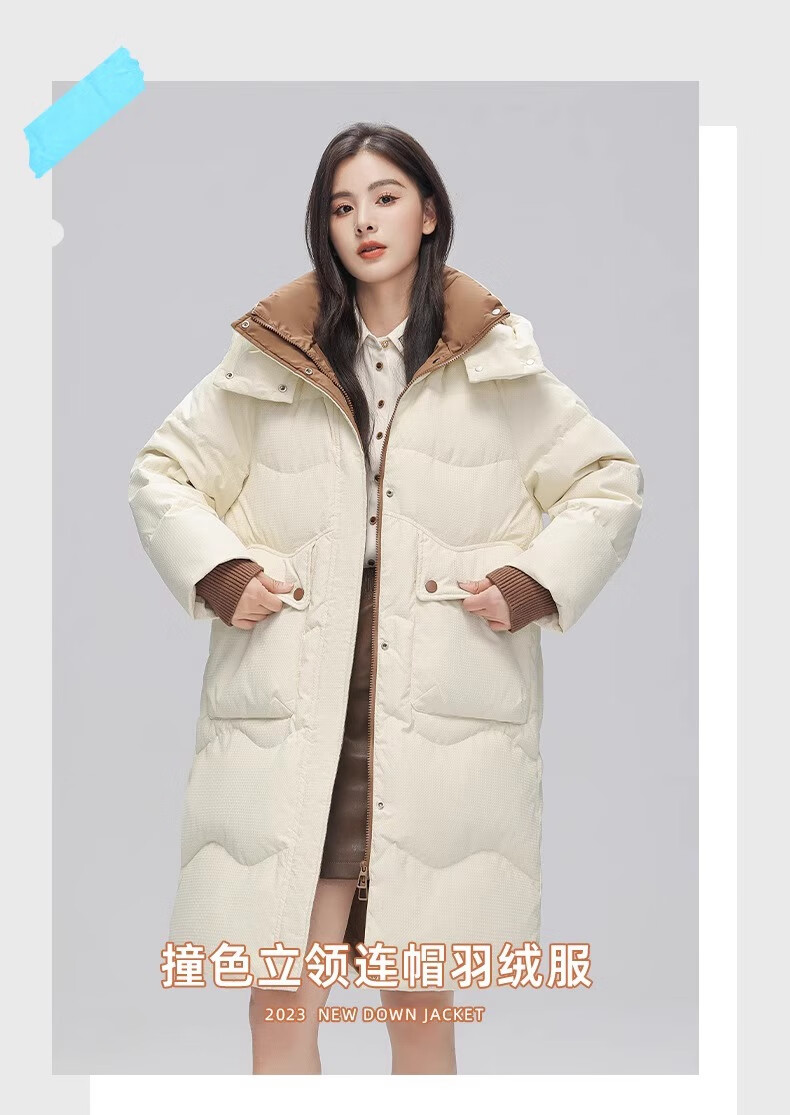 YAYA Down Jacket Women's Medium Long 2025 Winter New Fashion Casual Thickened Hooded Korean Version Contrast Color Versatile Jacket
