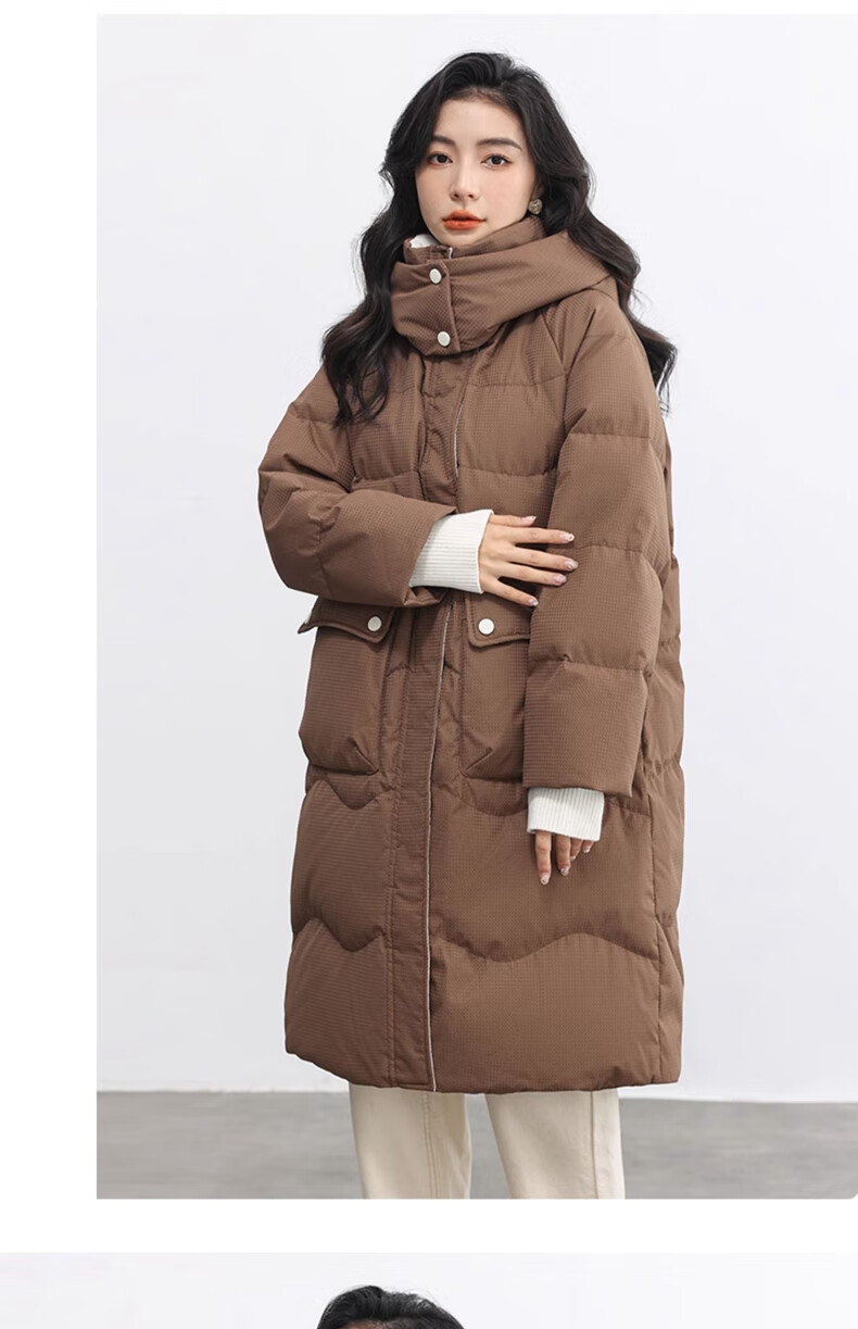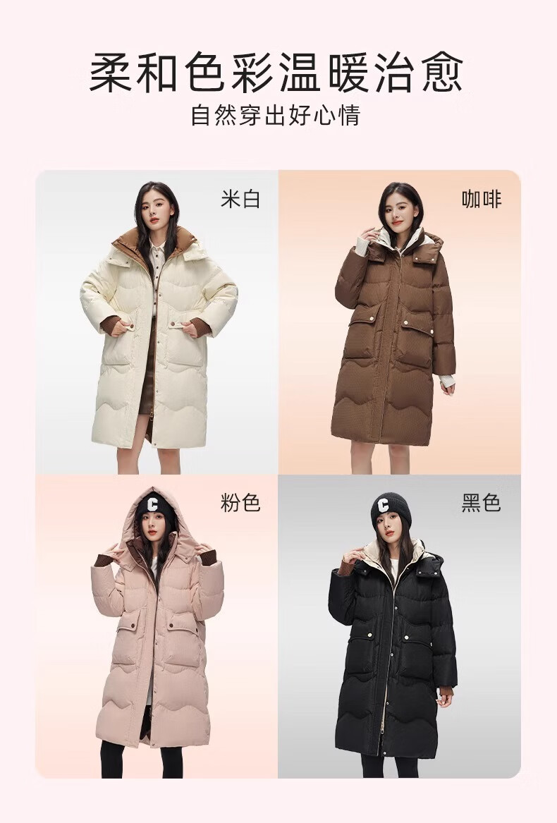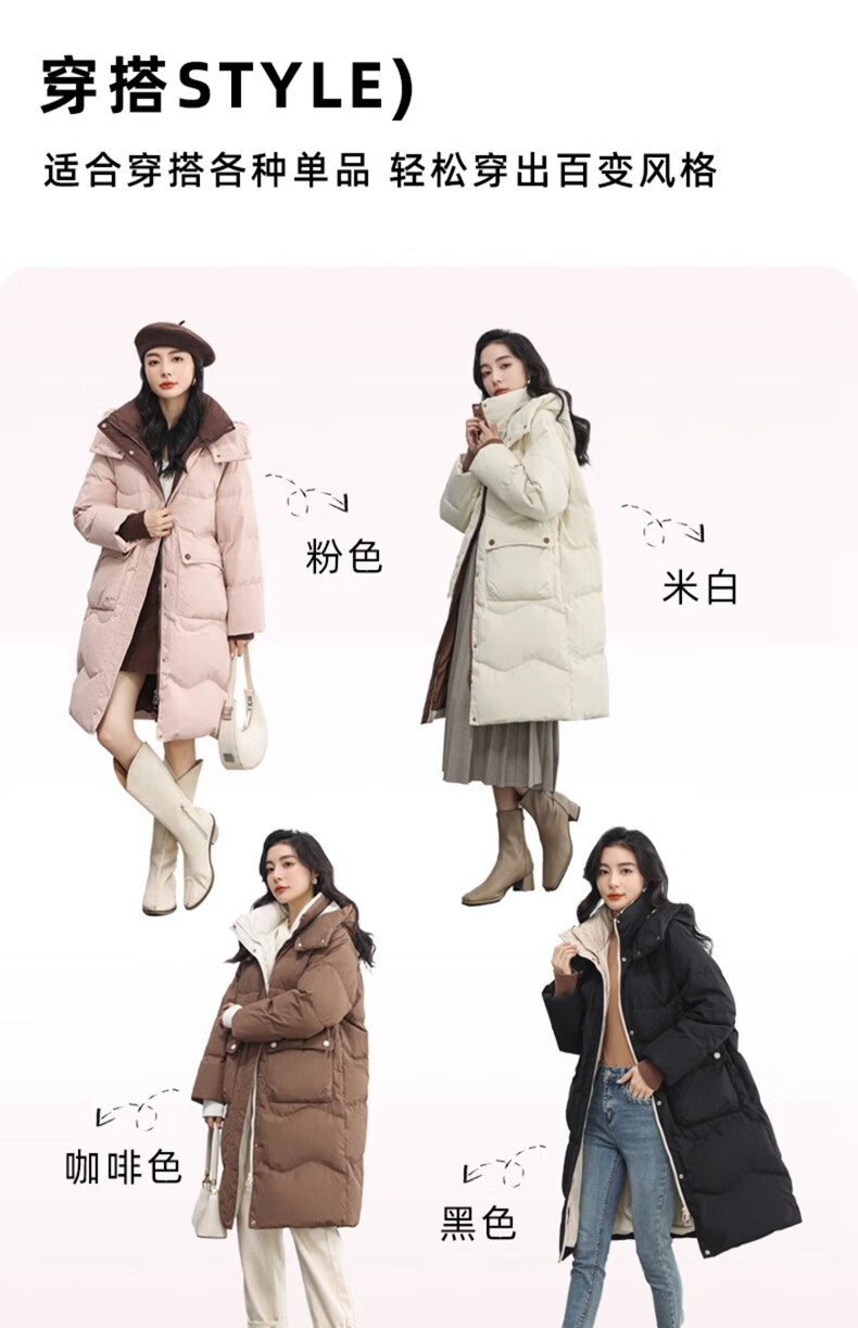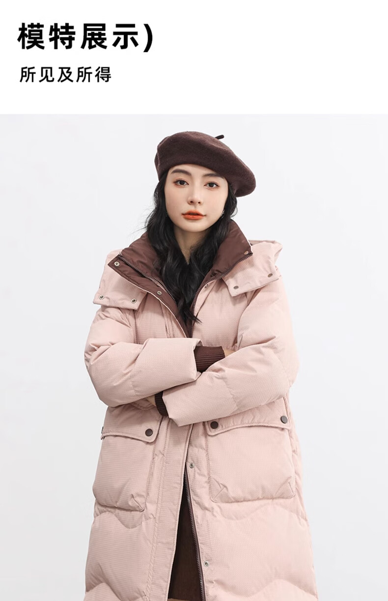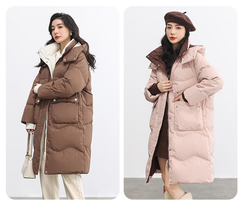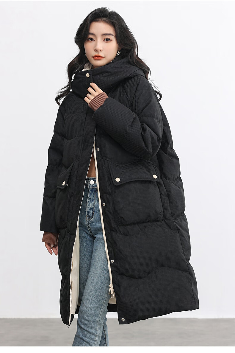 YAYA Down Jacket Women's Medium Long 2025 Winter New Fashion Casual Thickened Hooded Korean Version Contrast Color Versatile Jacket