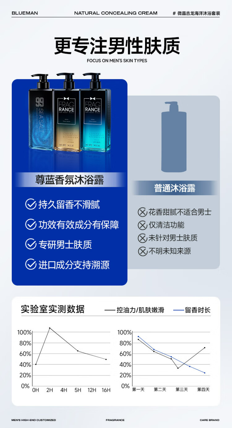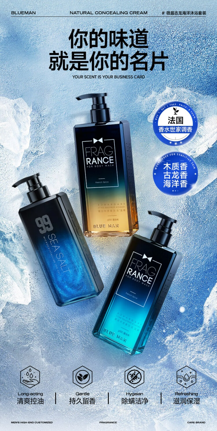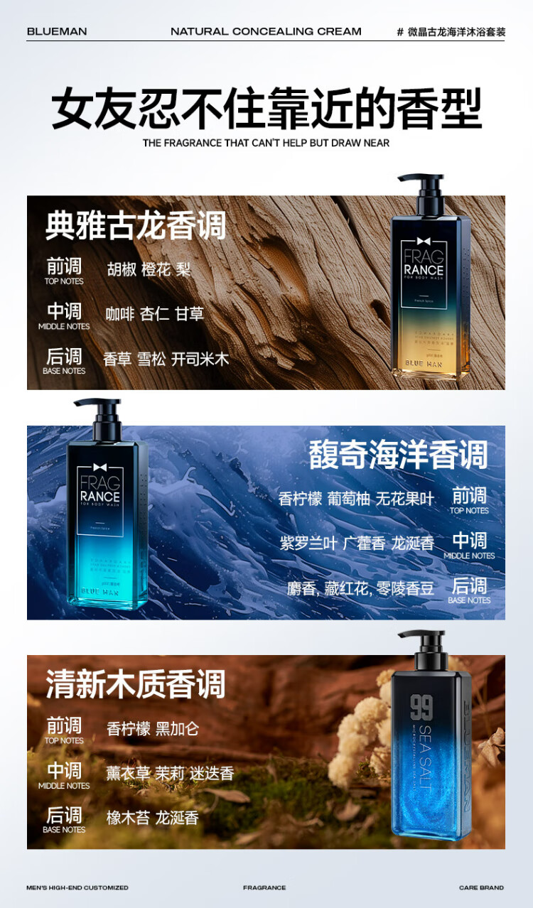 Zunlan Cologne Fragrance Shower Gel Men's Autumn and Winter Moisturizing Oil Control Anti-Dry Itch Fragrance Body Long-lasting Fragrance Shower Gel Cologne Set 900ml Shower Gel + Shampoo