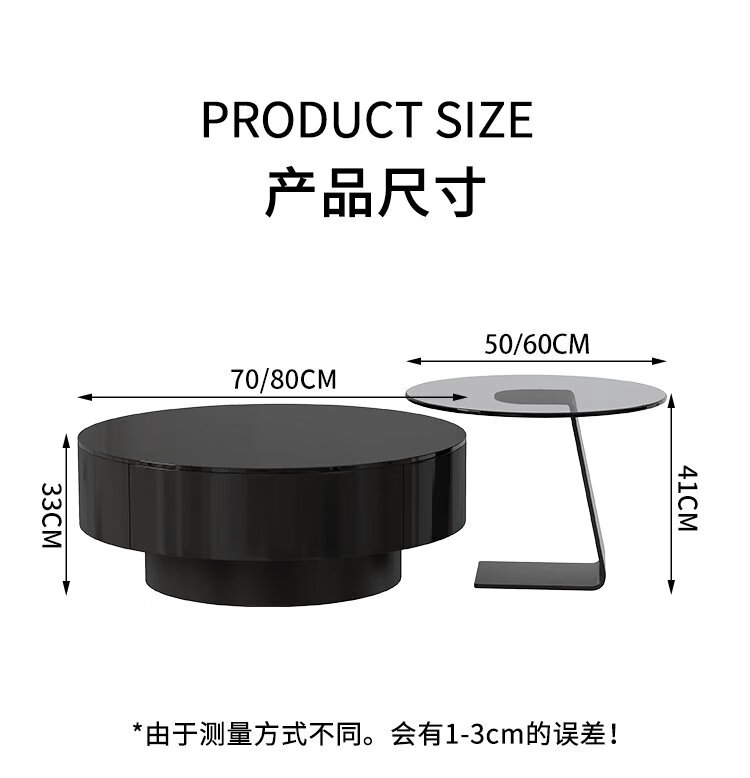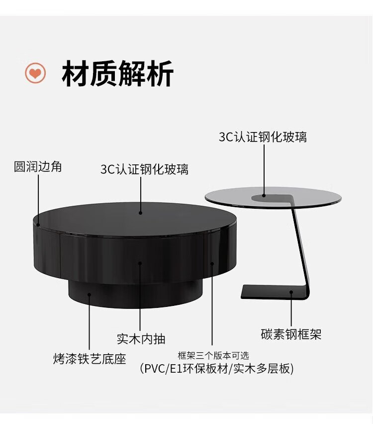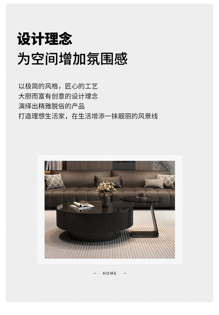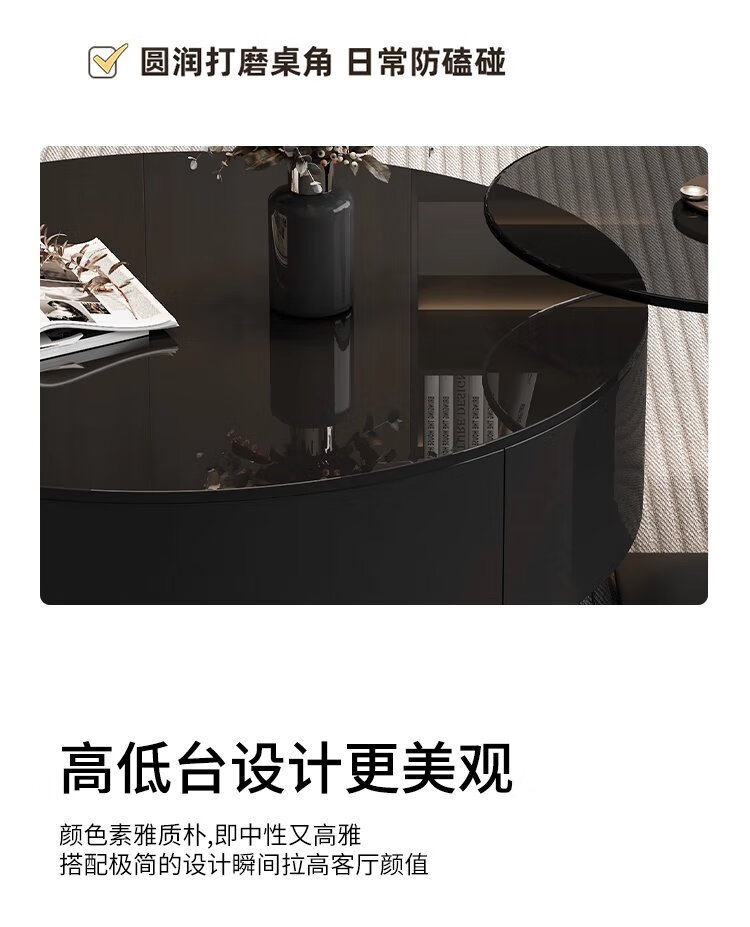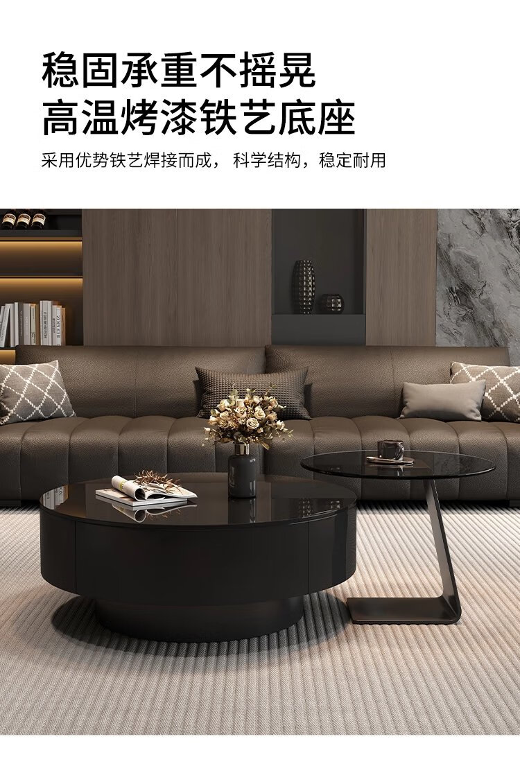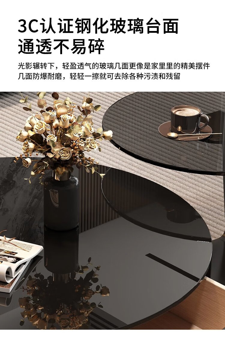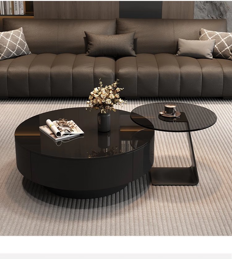 Chengyi 2025 new black glass coffee table Italian minimalist slate living room home light luxury high-end simple round combination