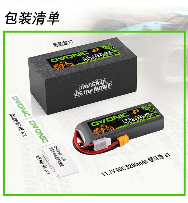 OVONIC European brand 5200mAh 90C 3S 11.1V XT60 plug four-wheel drive off-road drift high rate competition car battery 1 10 mainstream models Meijiaxin